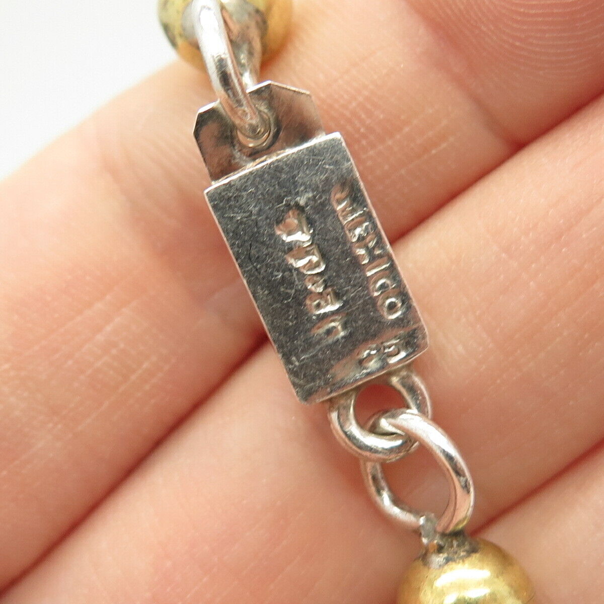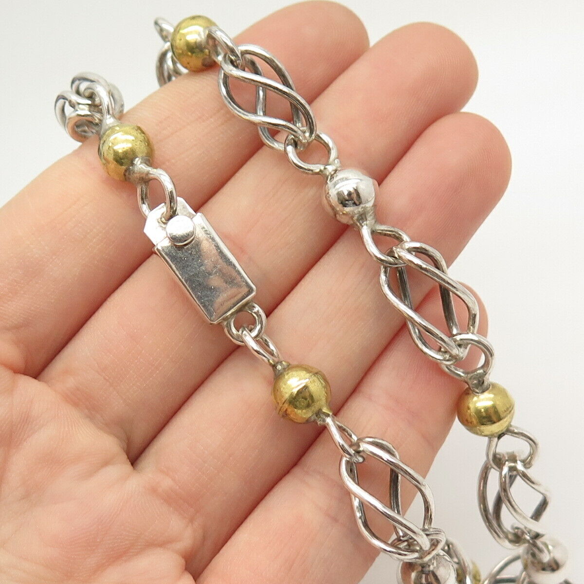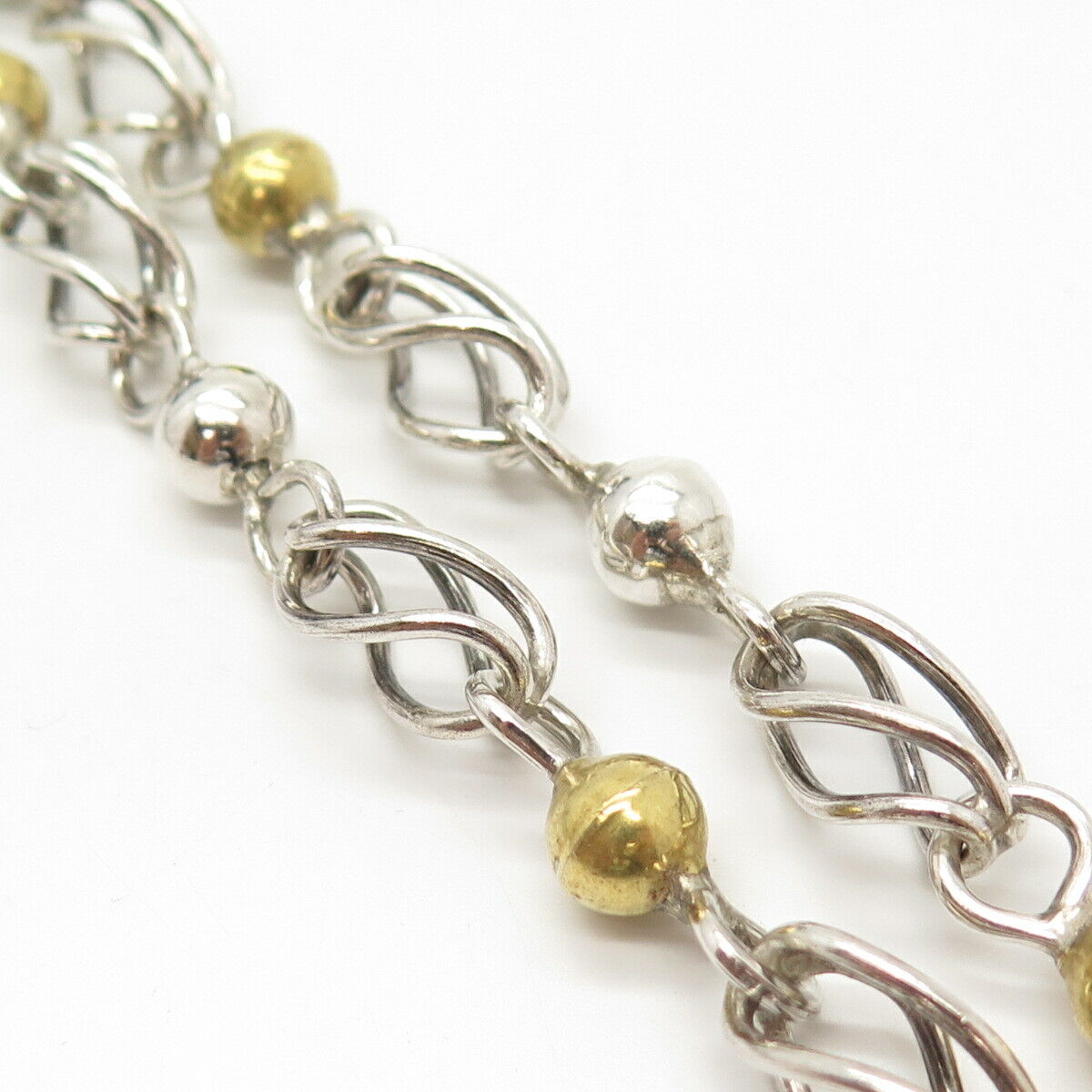925 Sterling Silver 2-Tone Vintage Mexico Fancy Bead Chain Necklace 16"