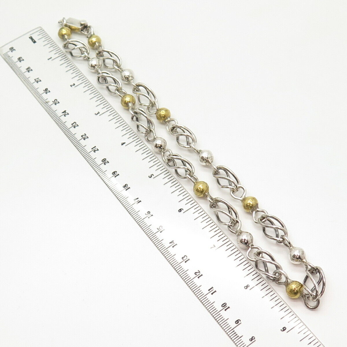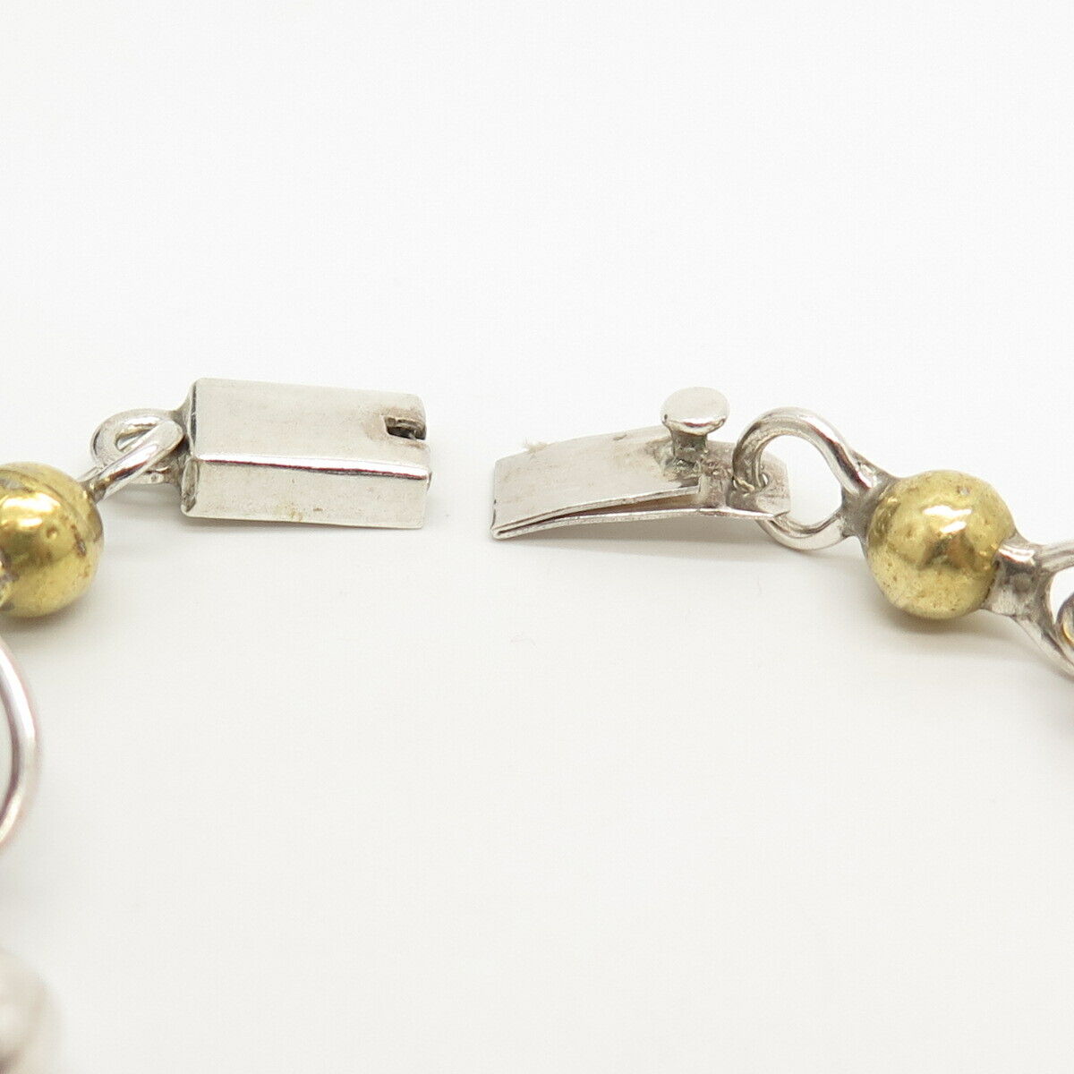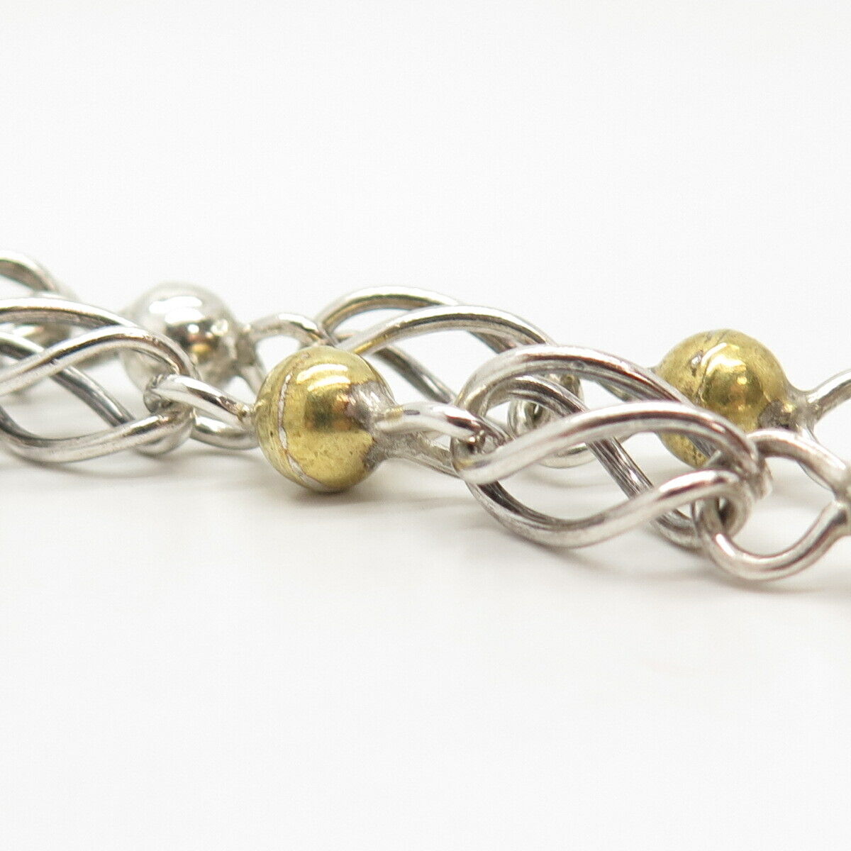 925 Sterling Silver 2-Tone Vintage Mexico Fancy Bead Chain Necklace 16"