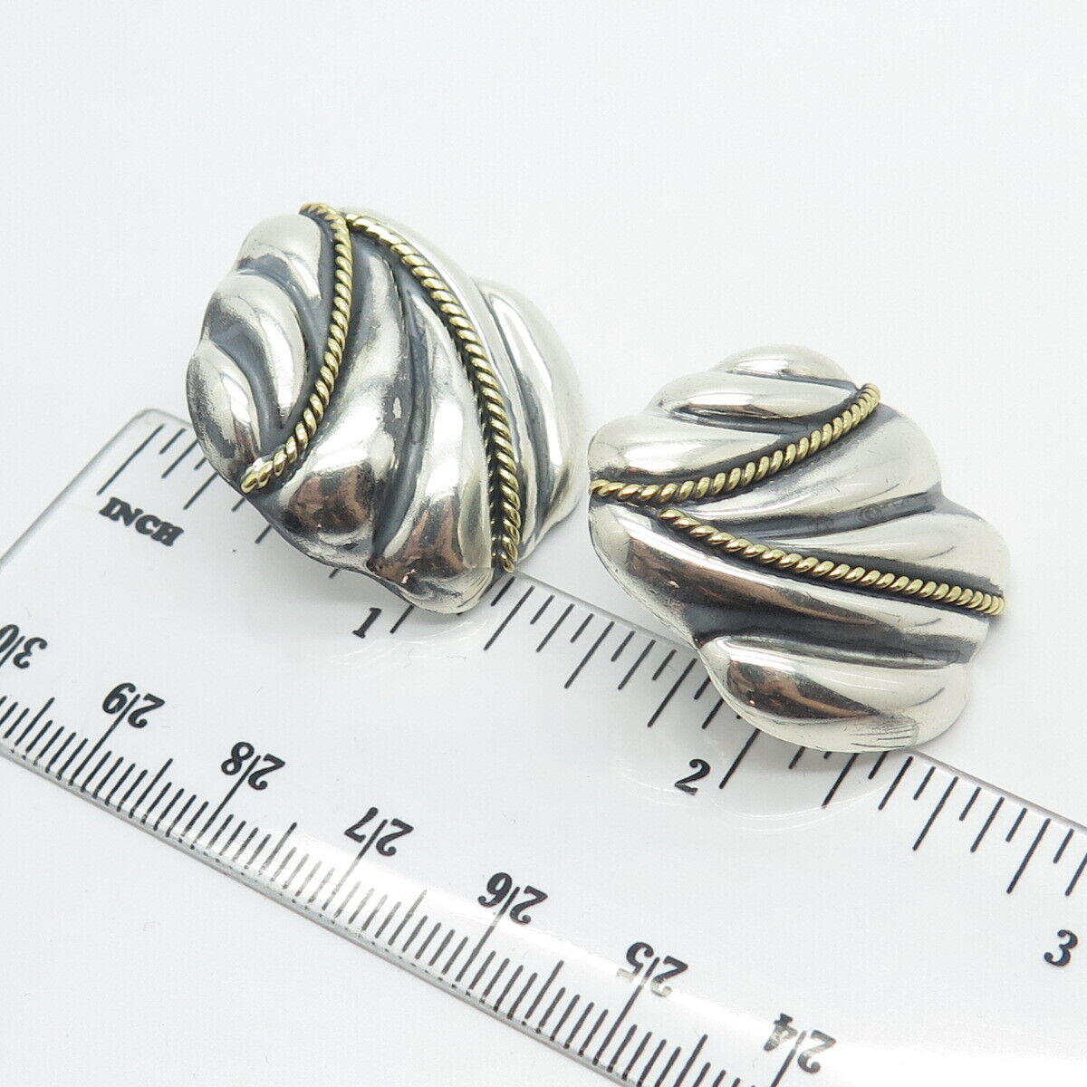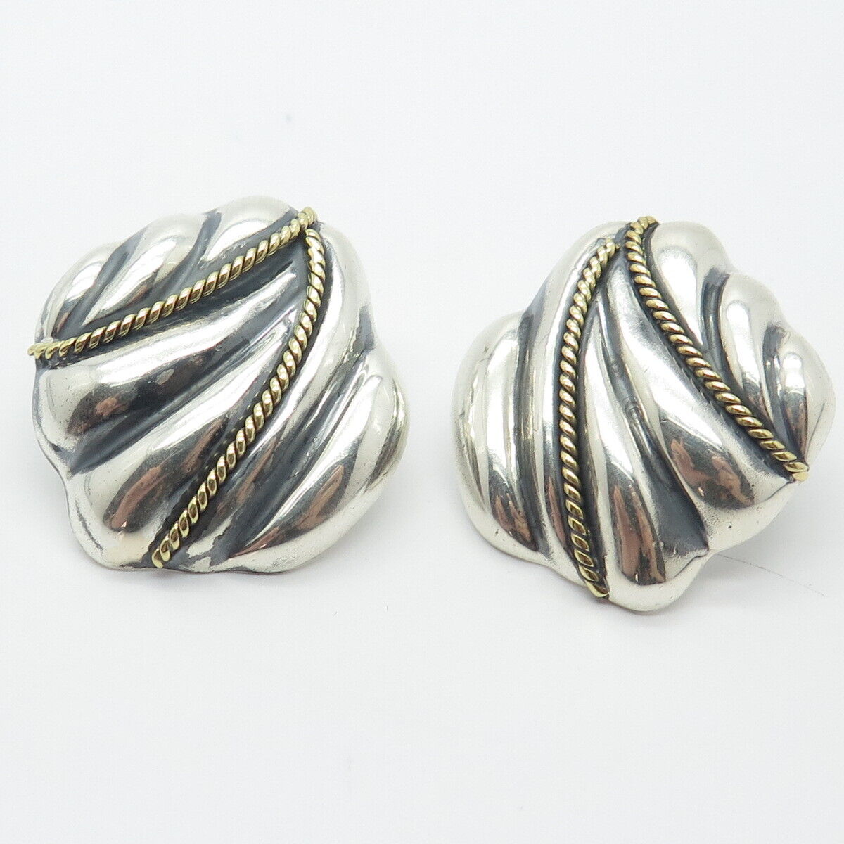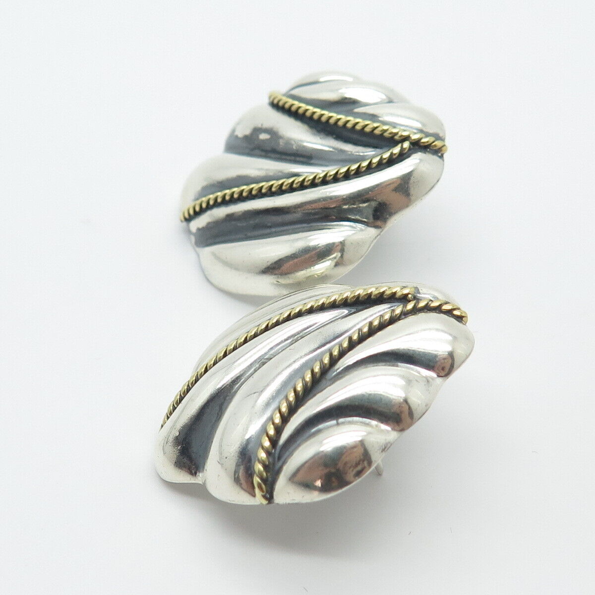 925 Sterling Silver 2-Tone Vintage Mexico Laton Ribbed Earrings