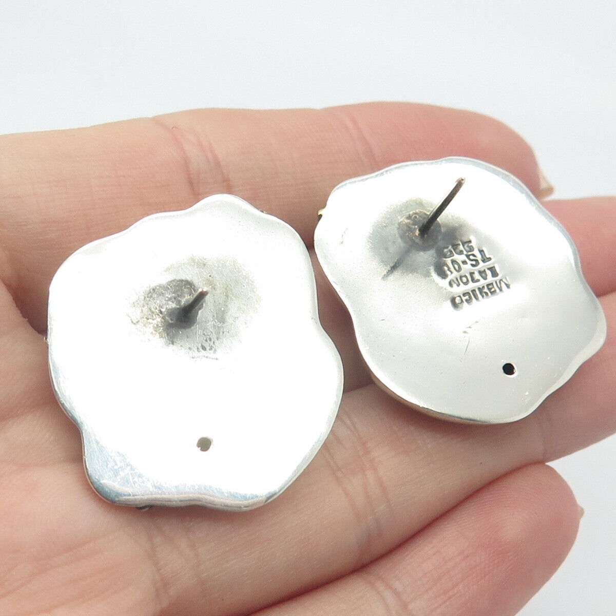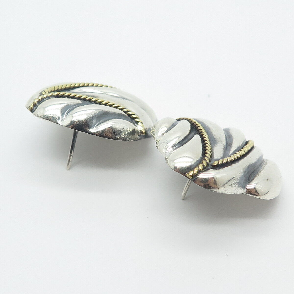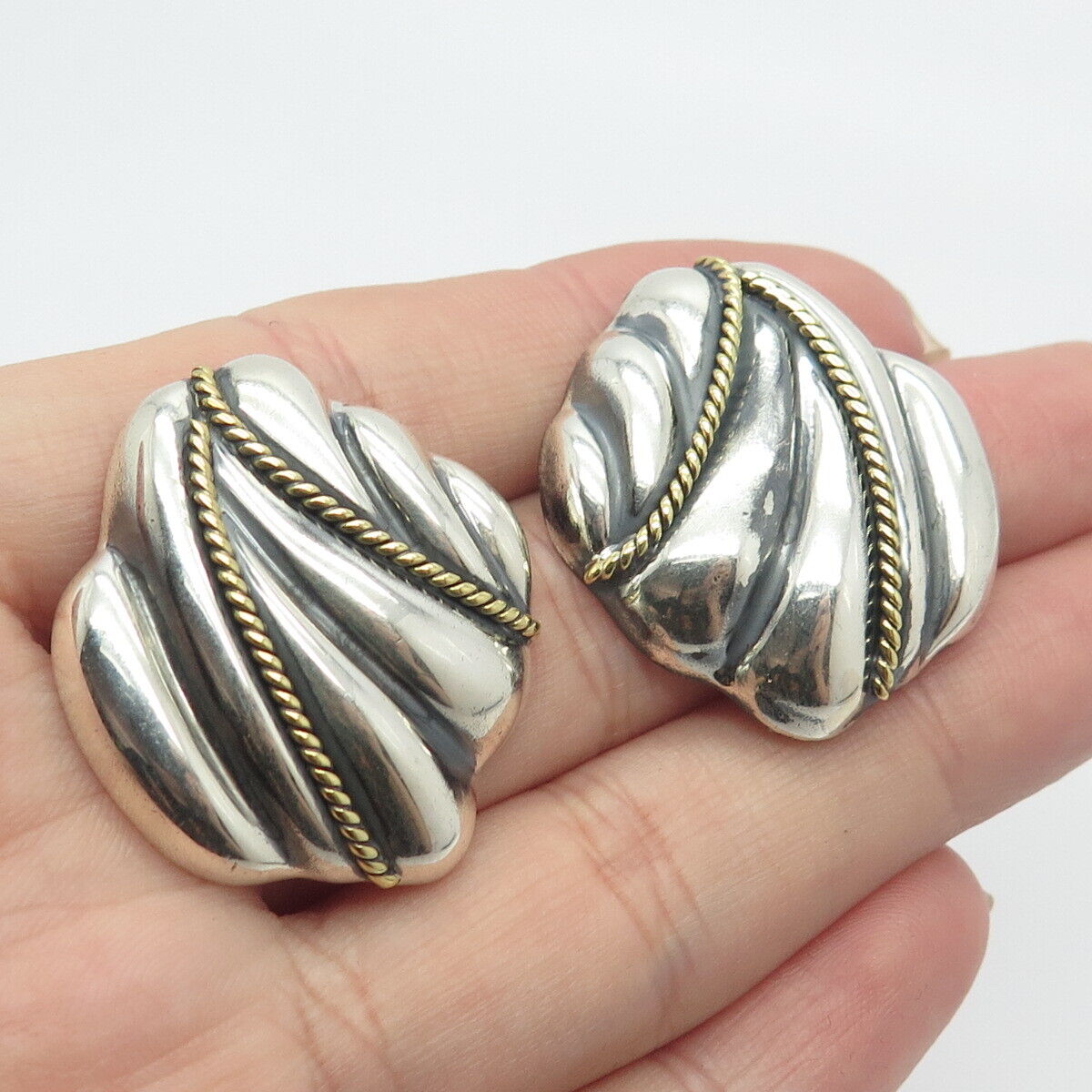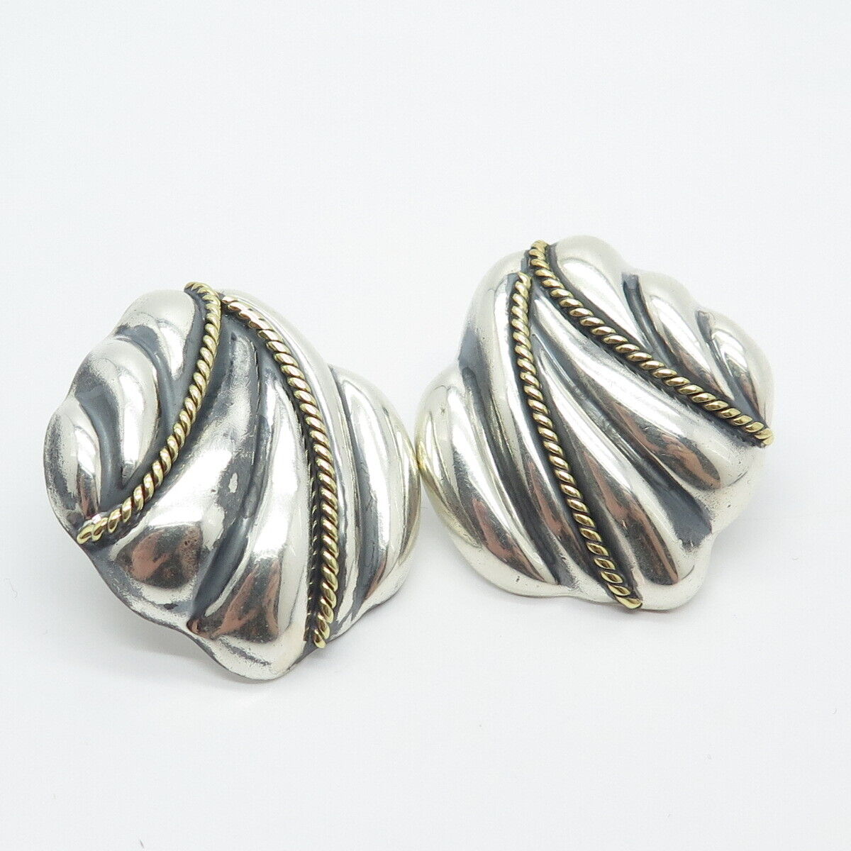 925 Sterling Silver 2-Tone Vintage Mexico Laton Ribbed Earrings