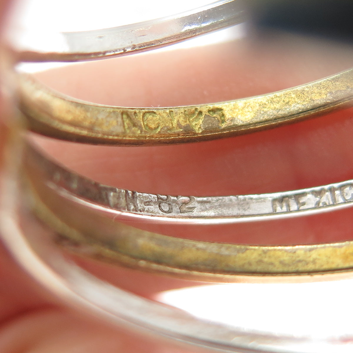 925 Sterling Silver 2-Tone Vintage Mexico Modernist Multi-Row Hoop Earrings