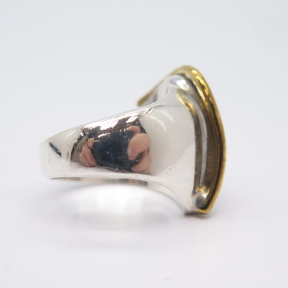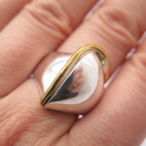925 Sterling Silver 2-Tone Vintage Mexico Modernist Ring Size 7