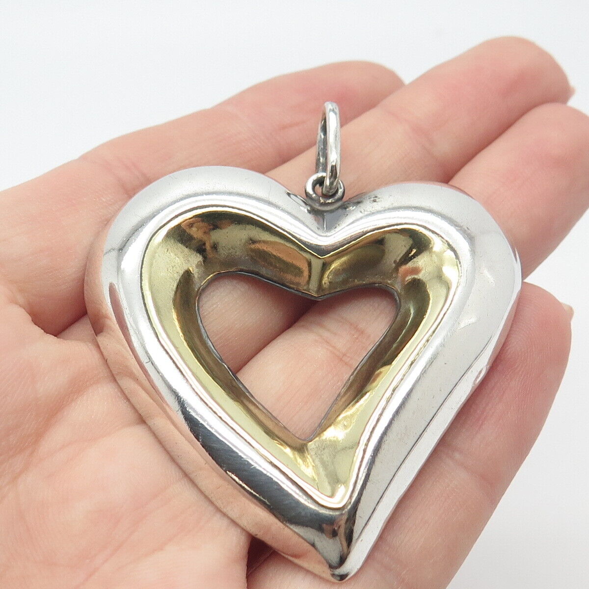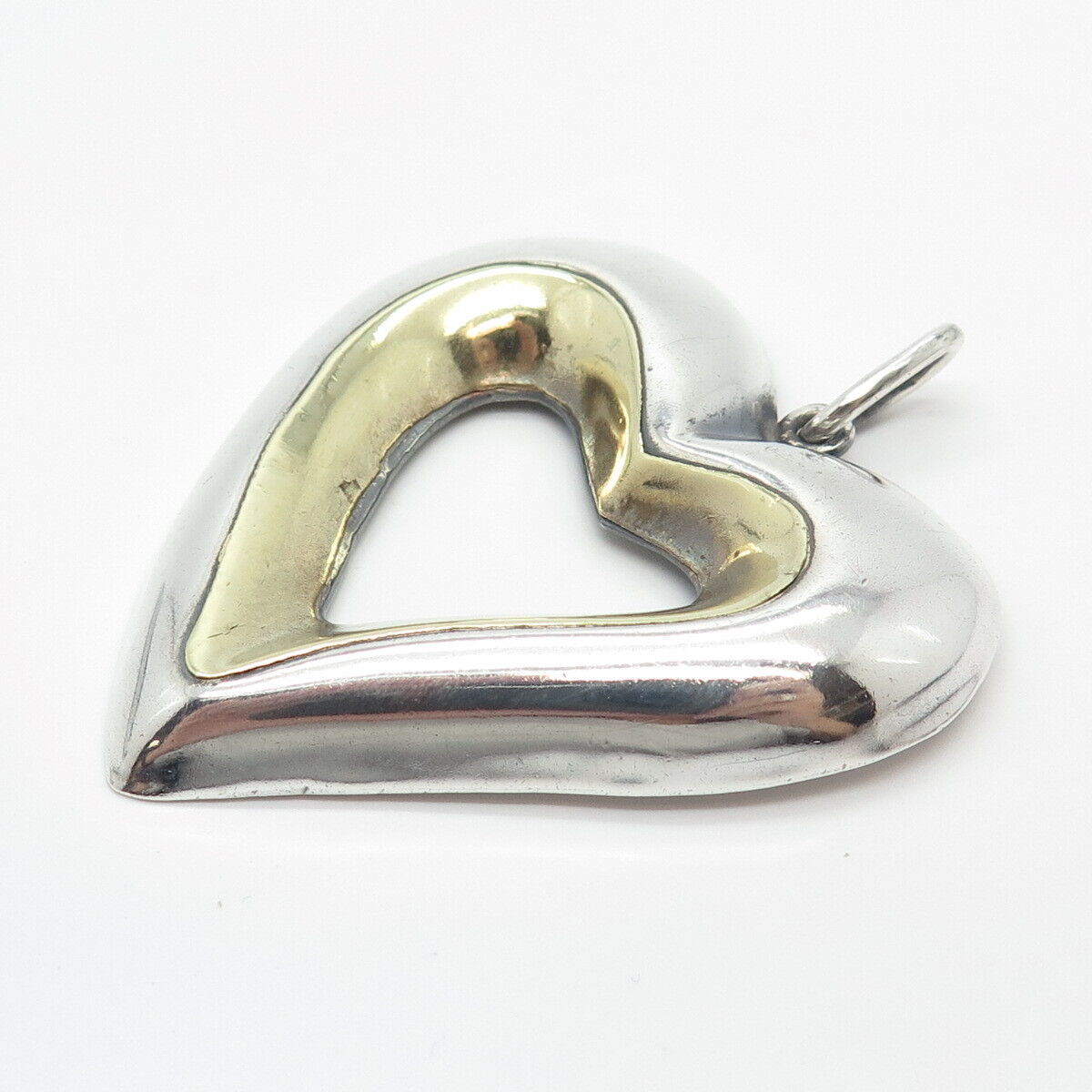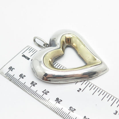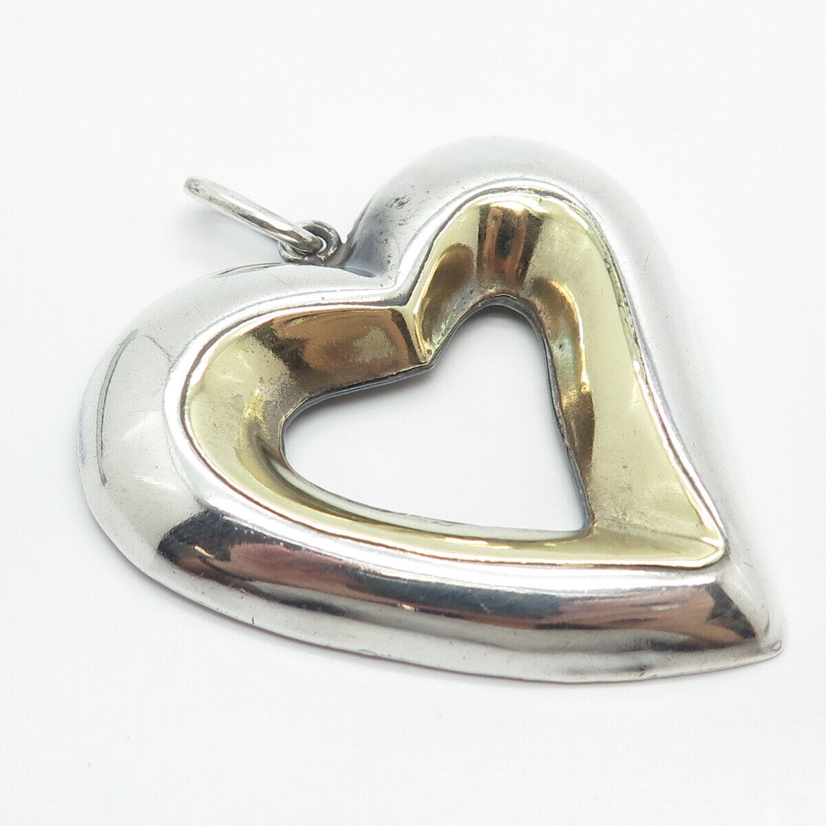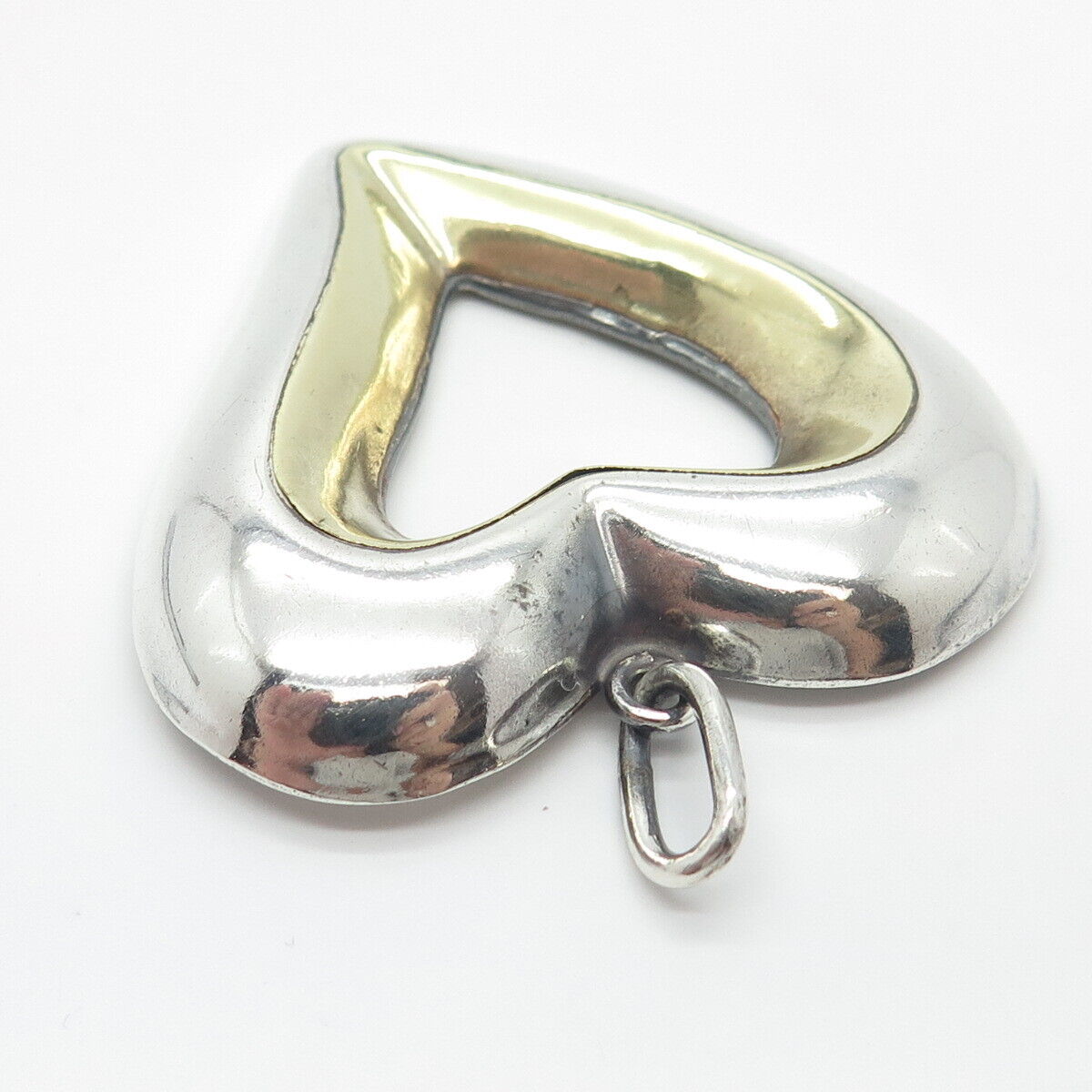 925 Sterling Silver 2-Tone Vintage Mexico Open Heart Pin Brooch