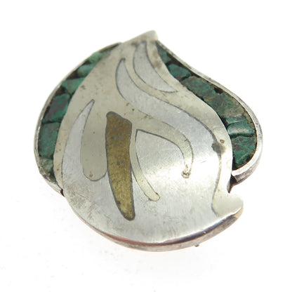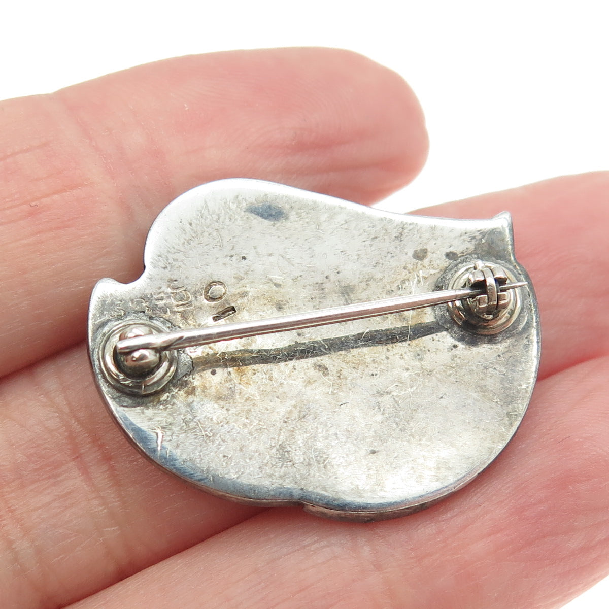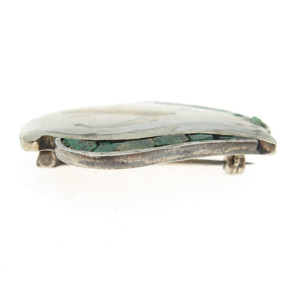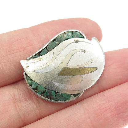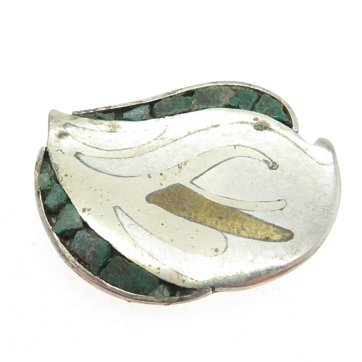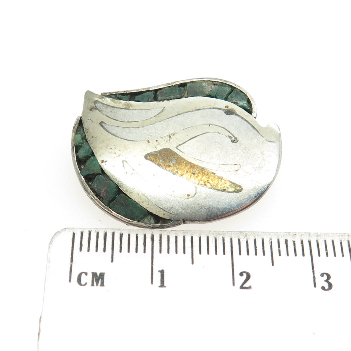 925 Sterling Silver 2-Tone Vintage Mexico Real Azurite Inlay Bird Brooch #110