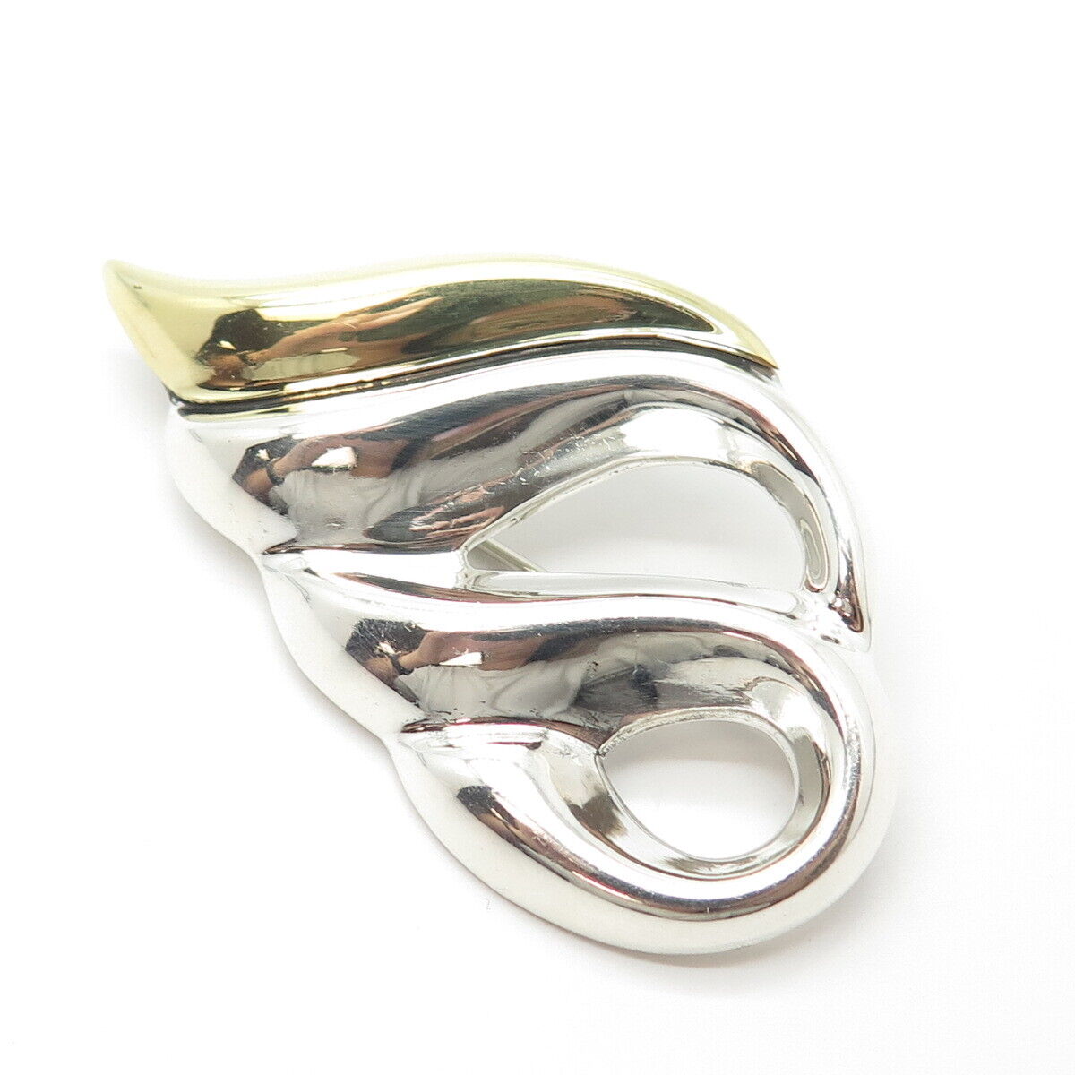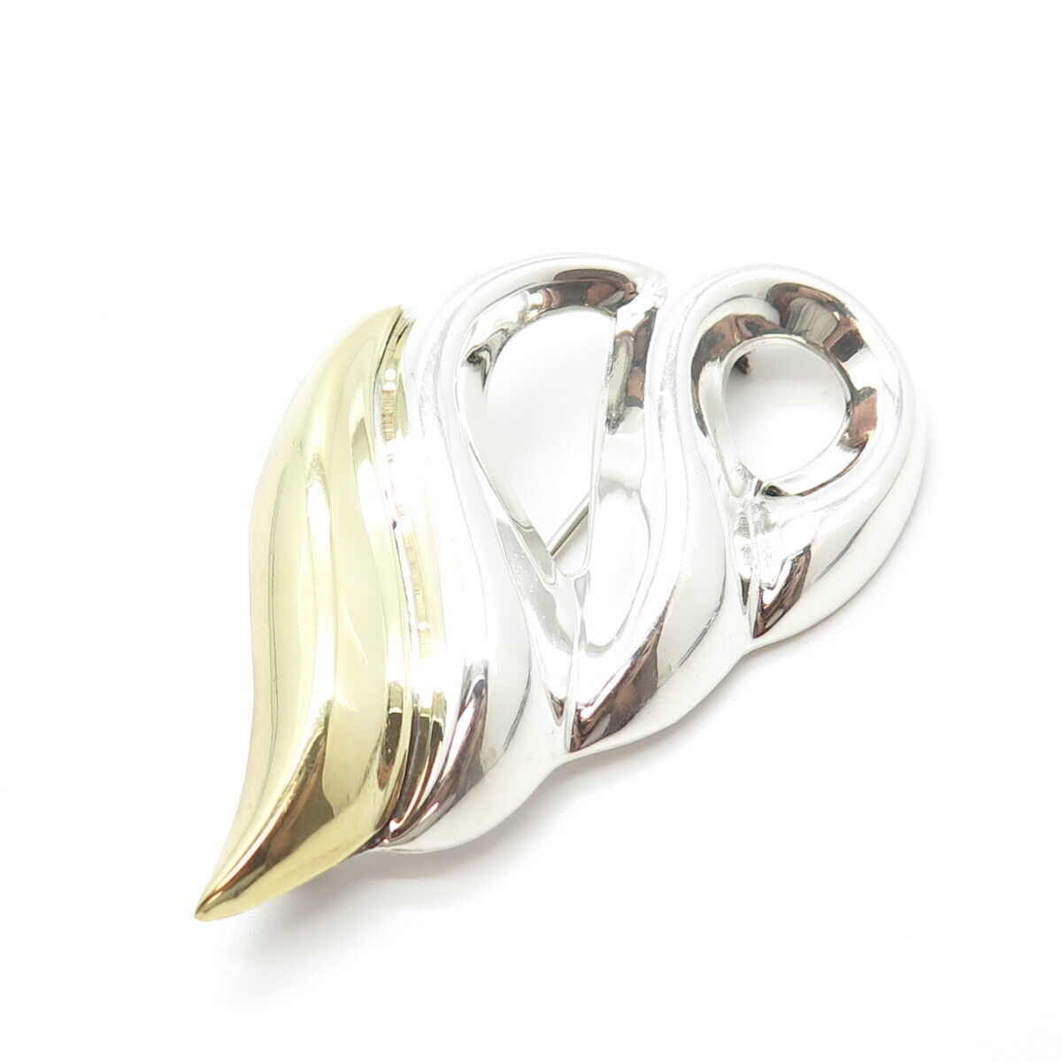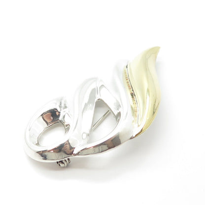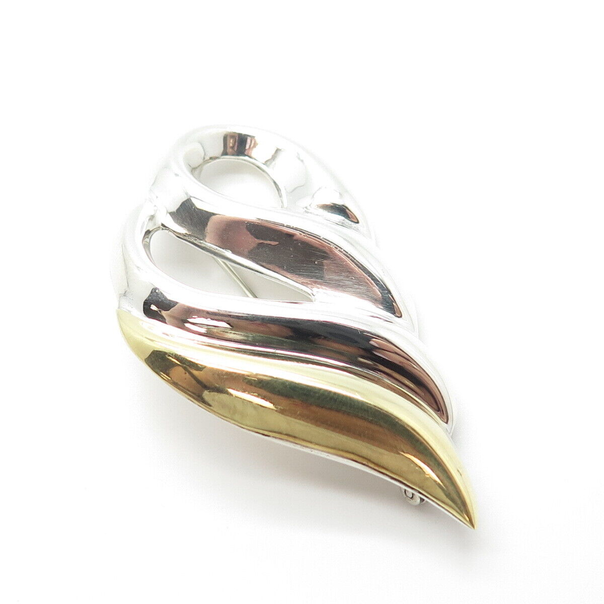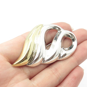 925 Sterling Silver 2-Tone Vintage Mexico Ribbed Pin Brooch