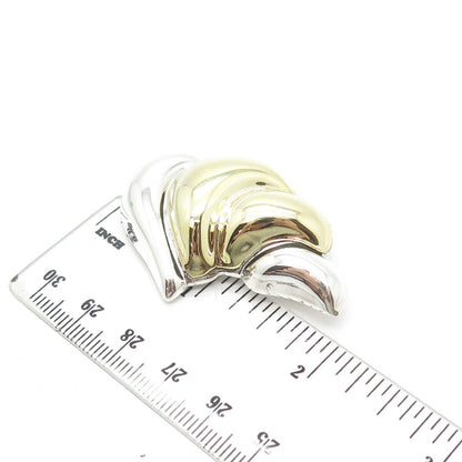 925 Sterling Silver 2-Tone Vintage Mexico Ribbed Pin Brooch