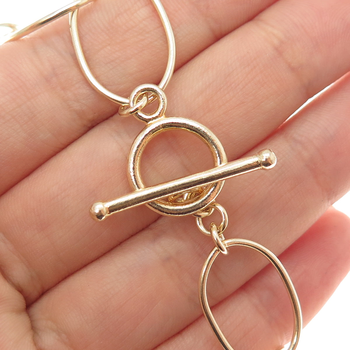 925 Sterling Silver 2-Tone Vintage Modernist Oval Chain Necklace 16"