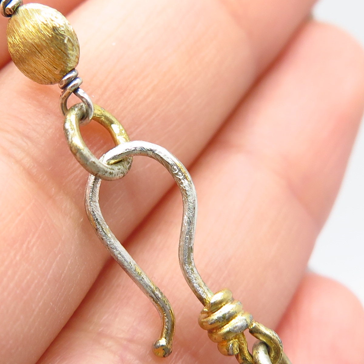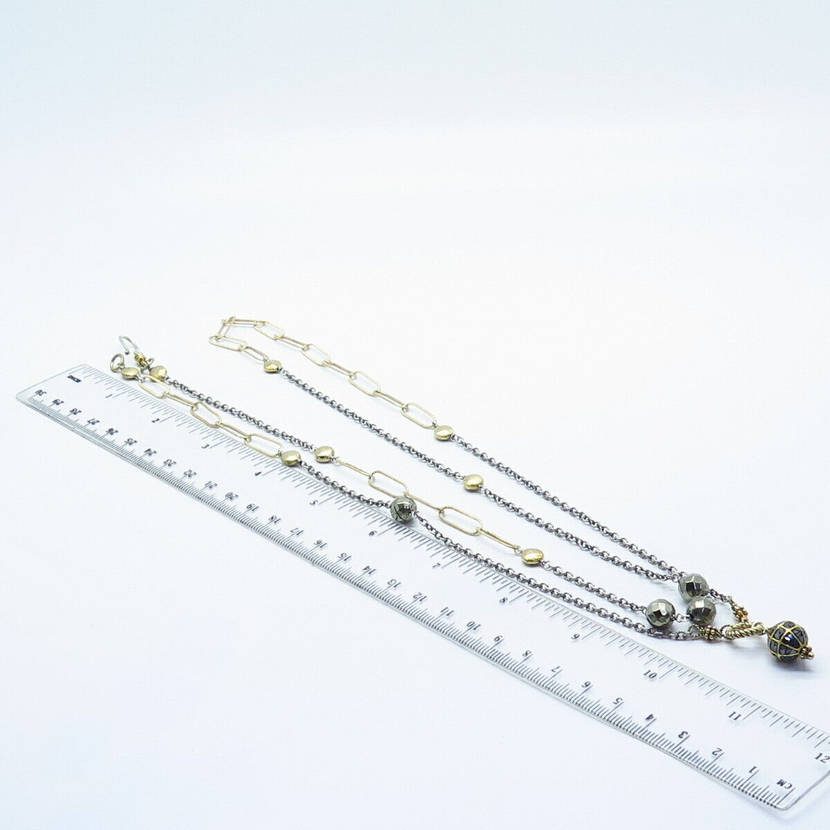 925 Sterling Silver 2-Tone Vintage Oval / Rolo Beaded Chain Necklace 38"