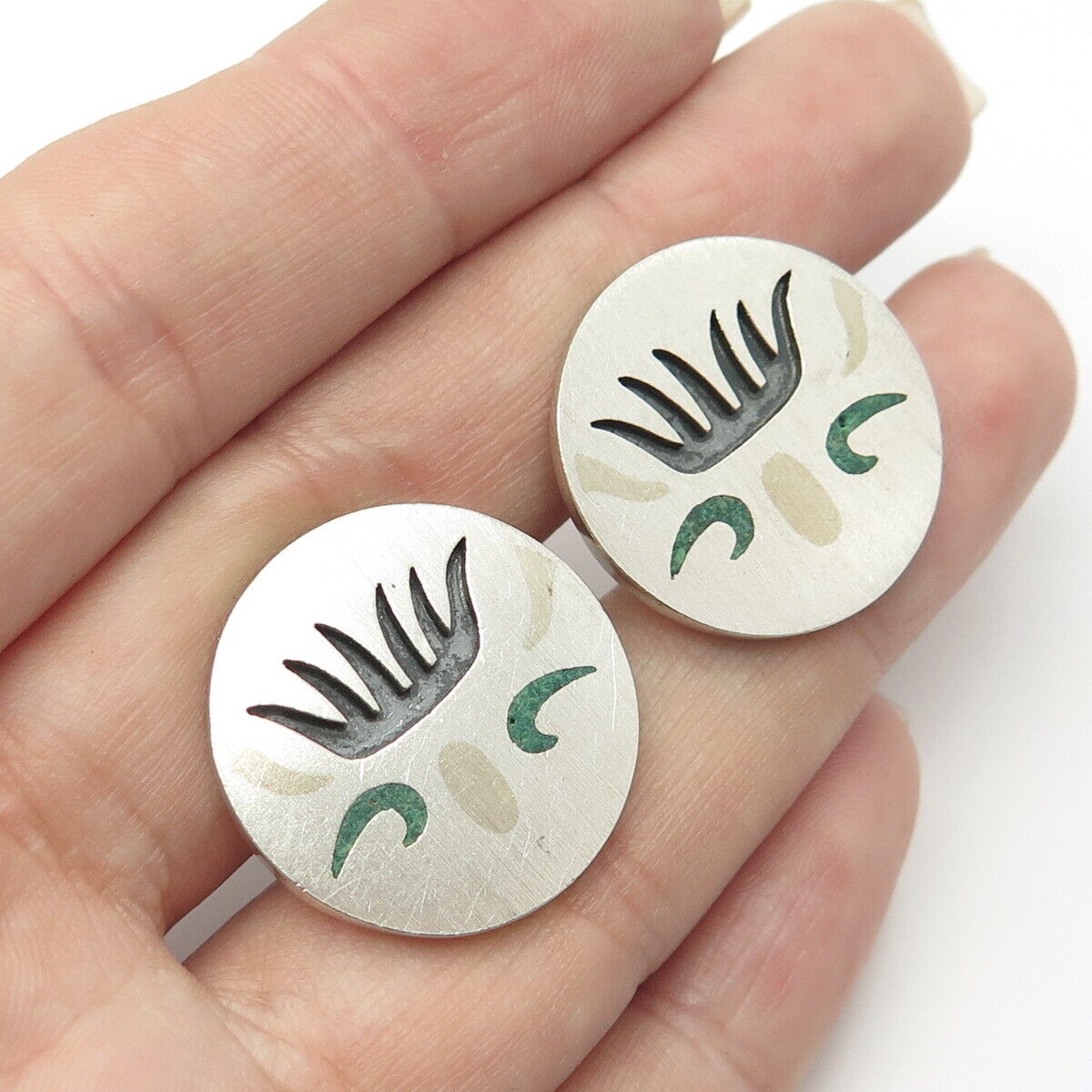 925 Sterling Silver 2-Tone Vintage Real Azurite Inlay Metales Casados Cufflinks