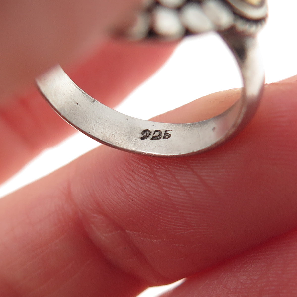 925 Sterling Silver 2-Tone Vintage Real Black Onyx Dotted Oxidized Ring Size 7