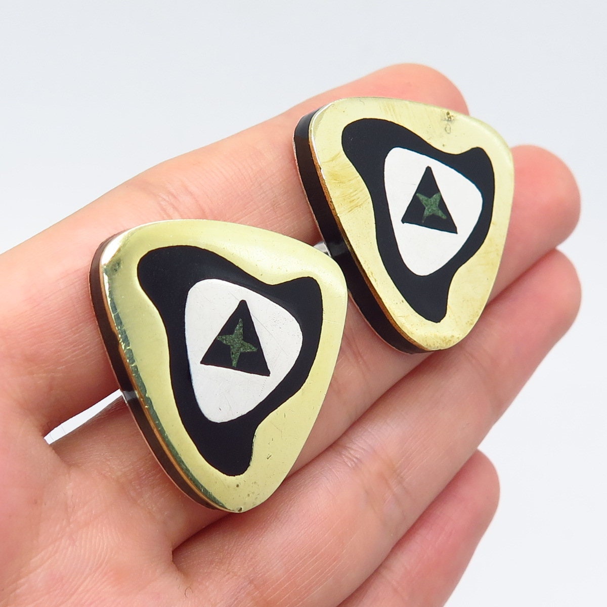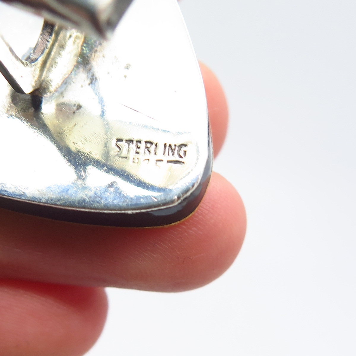 925 Sterling Silver 2-Tone Vintage Real Black Onyx & Turquoise Inlay Cufflinks