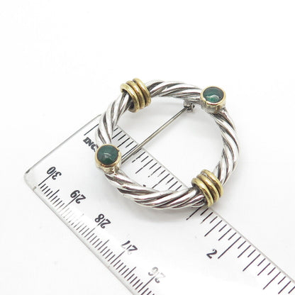 925 Sterling Silver 2-Tone Vintage Real Malachite Gemstone Twisted Pin Brooch