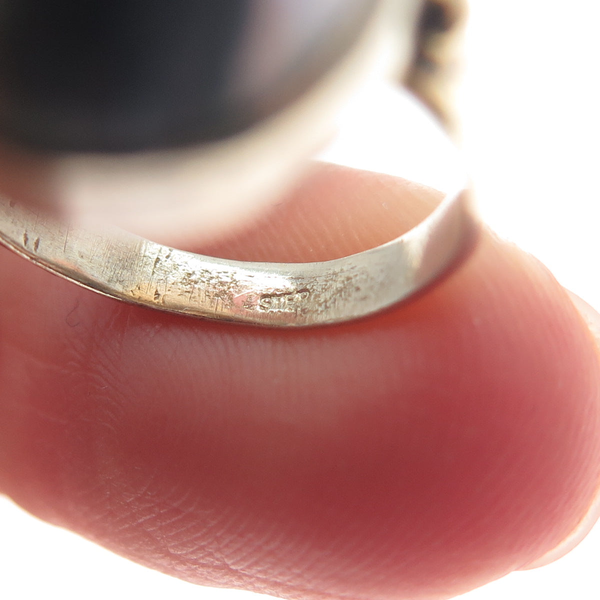 925 Sterling Silver 2-Tone Vintage Real Mother-of-Pearl Modernist Ring Size 4