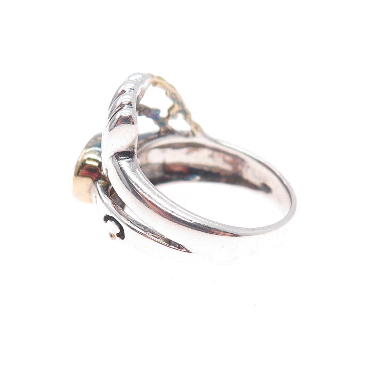 925 Sterling Silver 2-Tone Vintage Real Red Garnet Modernist Ring Size 5.75