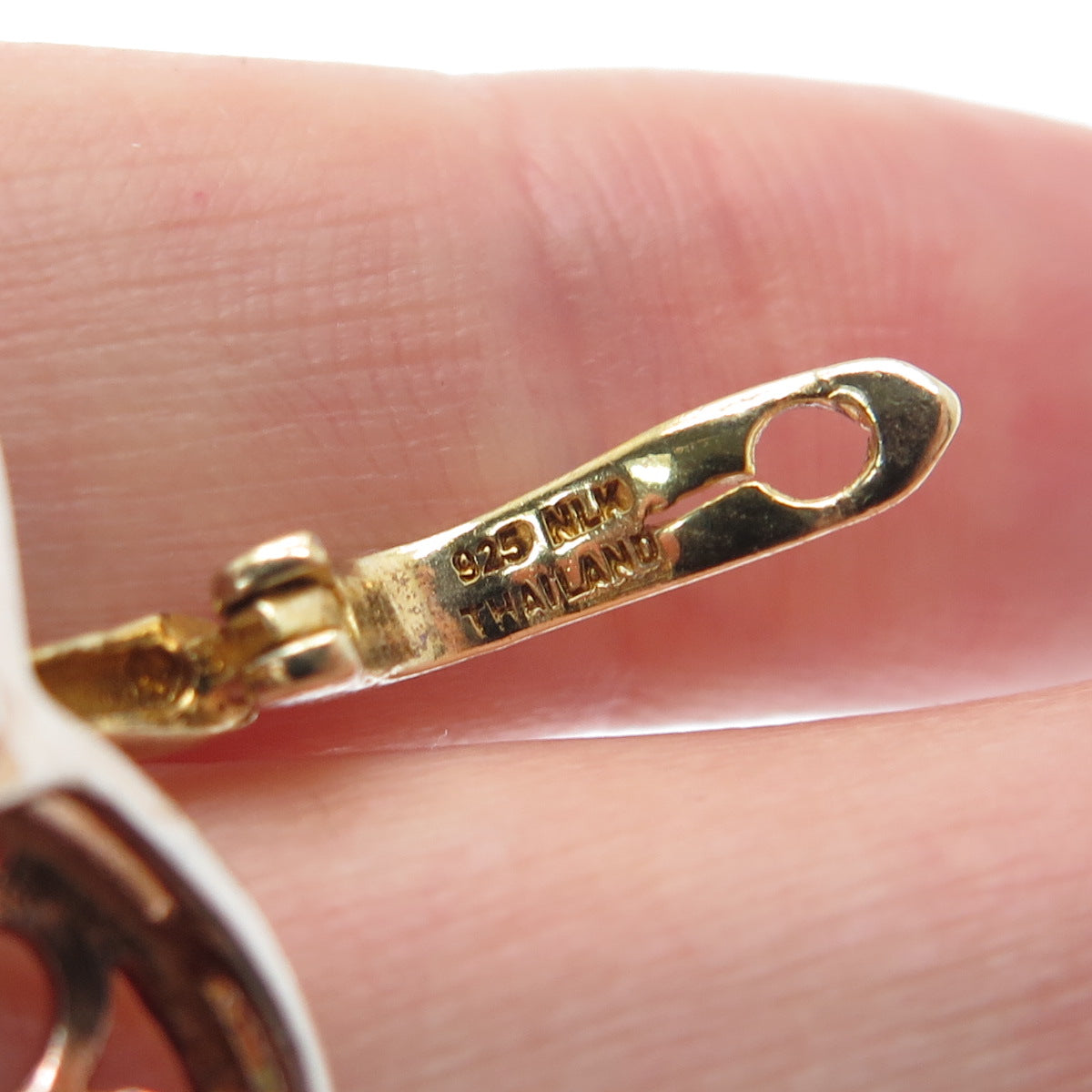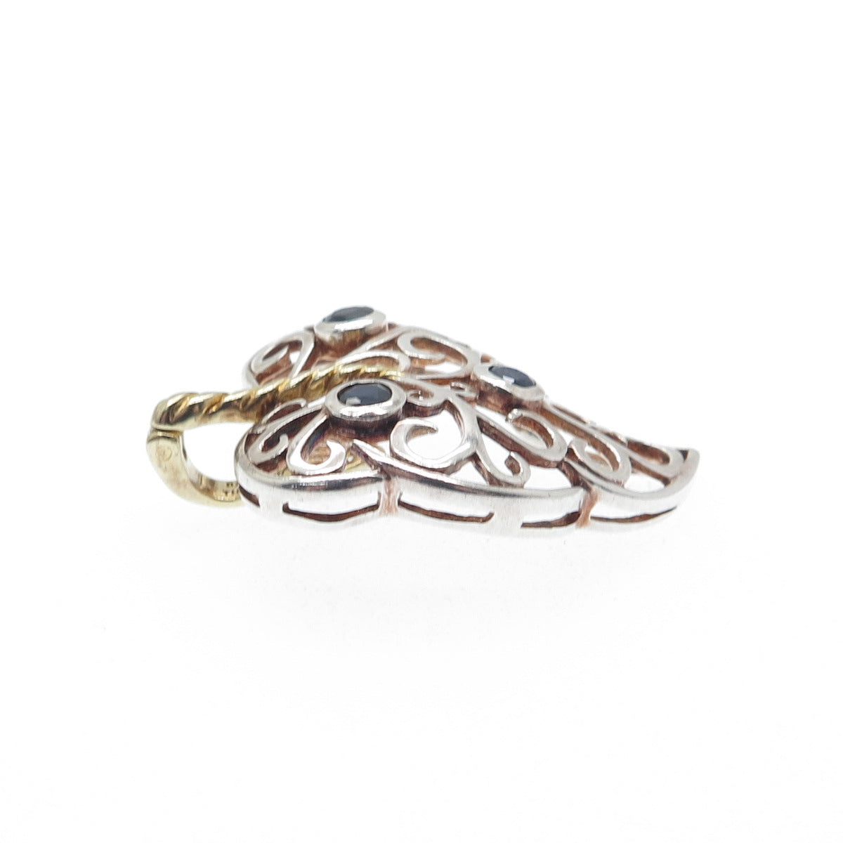 925 Sterling Silver 2-Tone Vintage Real Sapphire Floral Leaf Charm Pendant