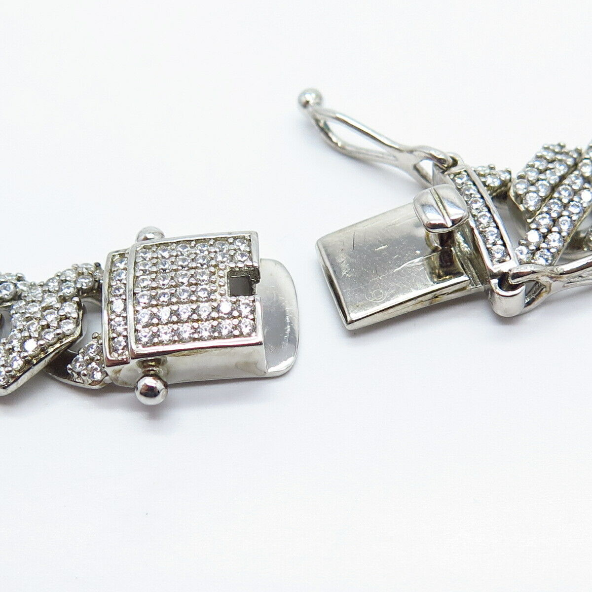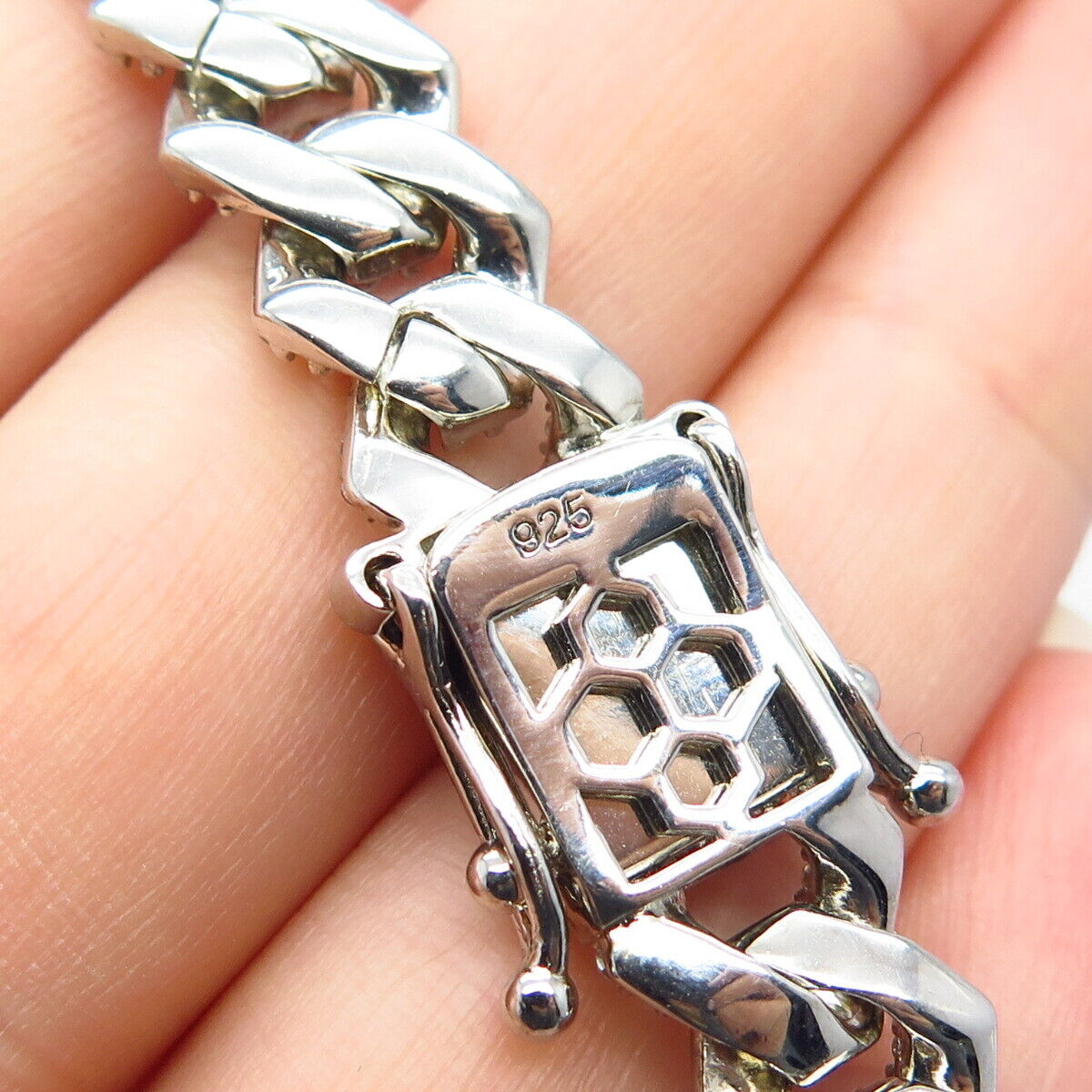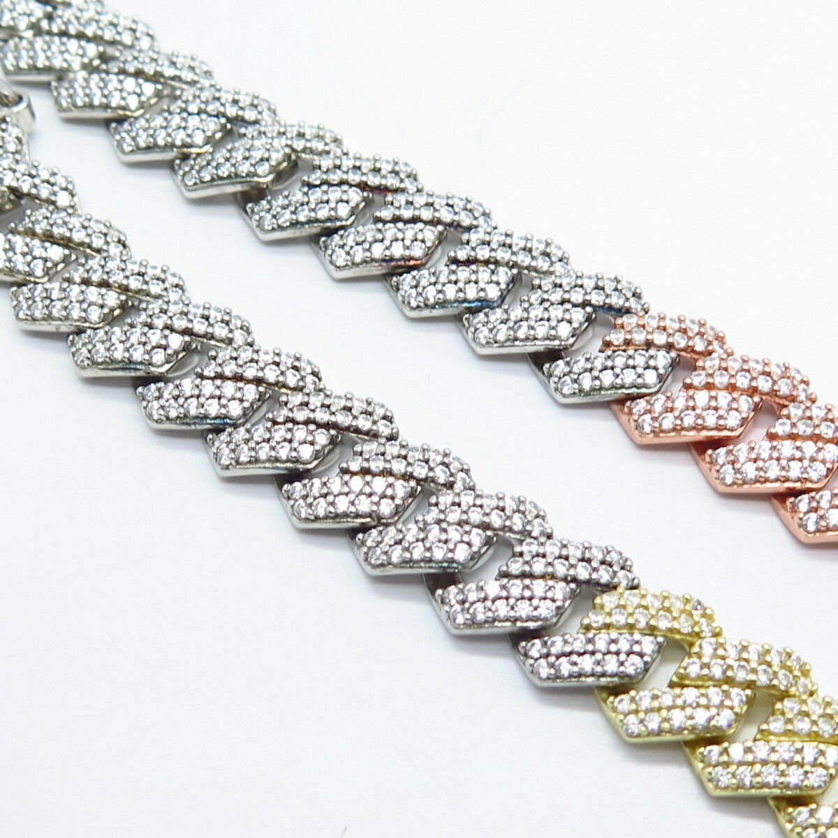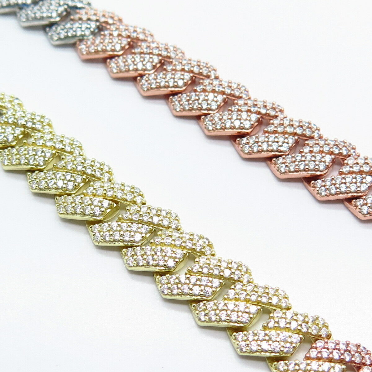 925 Sterling Silver 3-Tone C Z Cuban Chain Necklace 17"