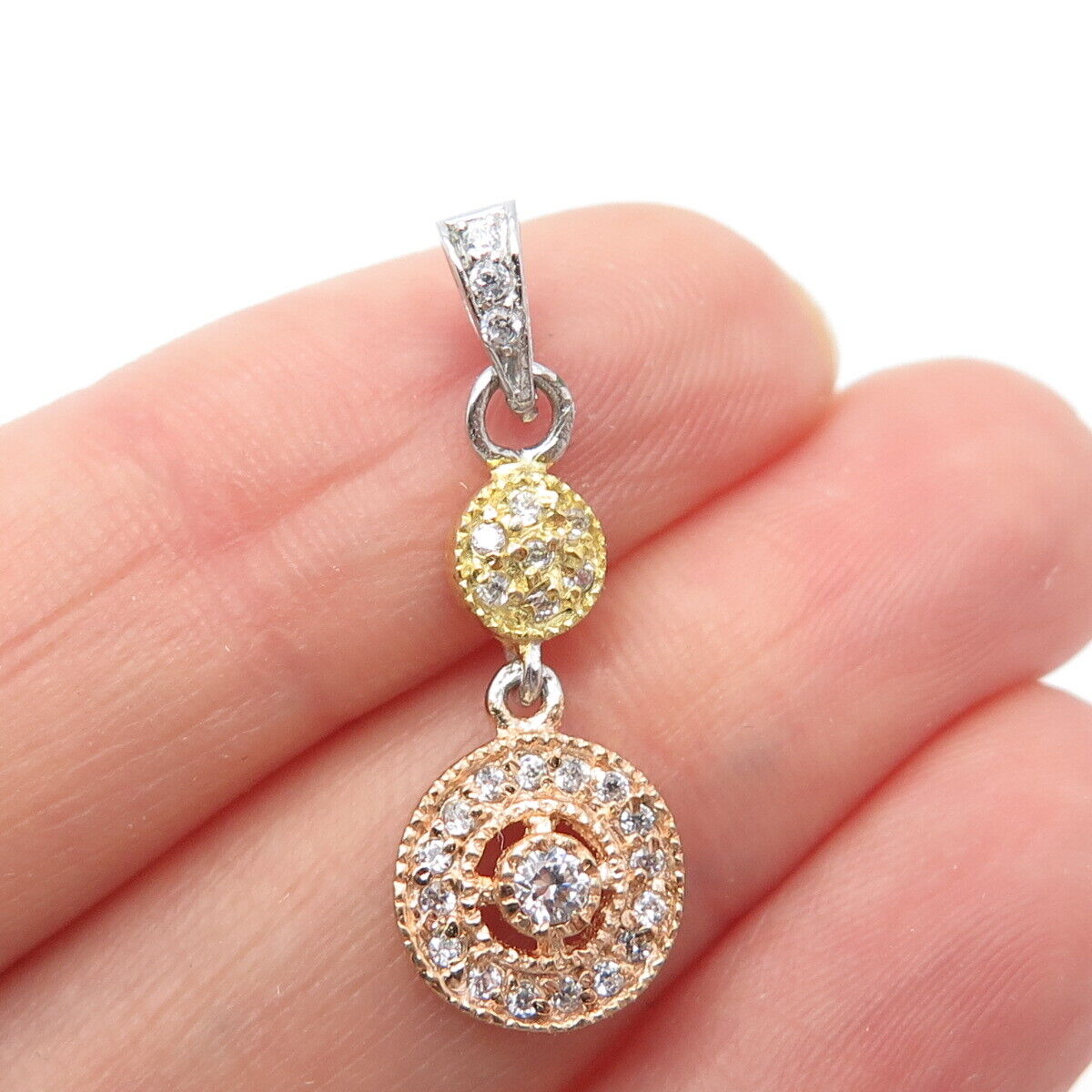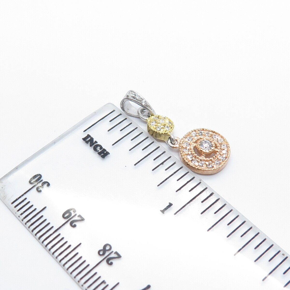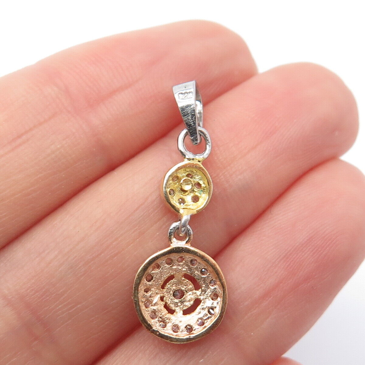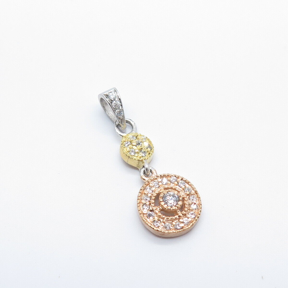 925 Sterling Silver 3-Tone C Z Double Circle Dangling Charm Pendant