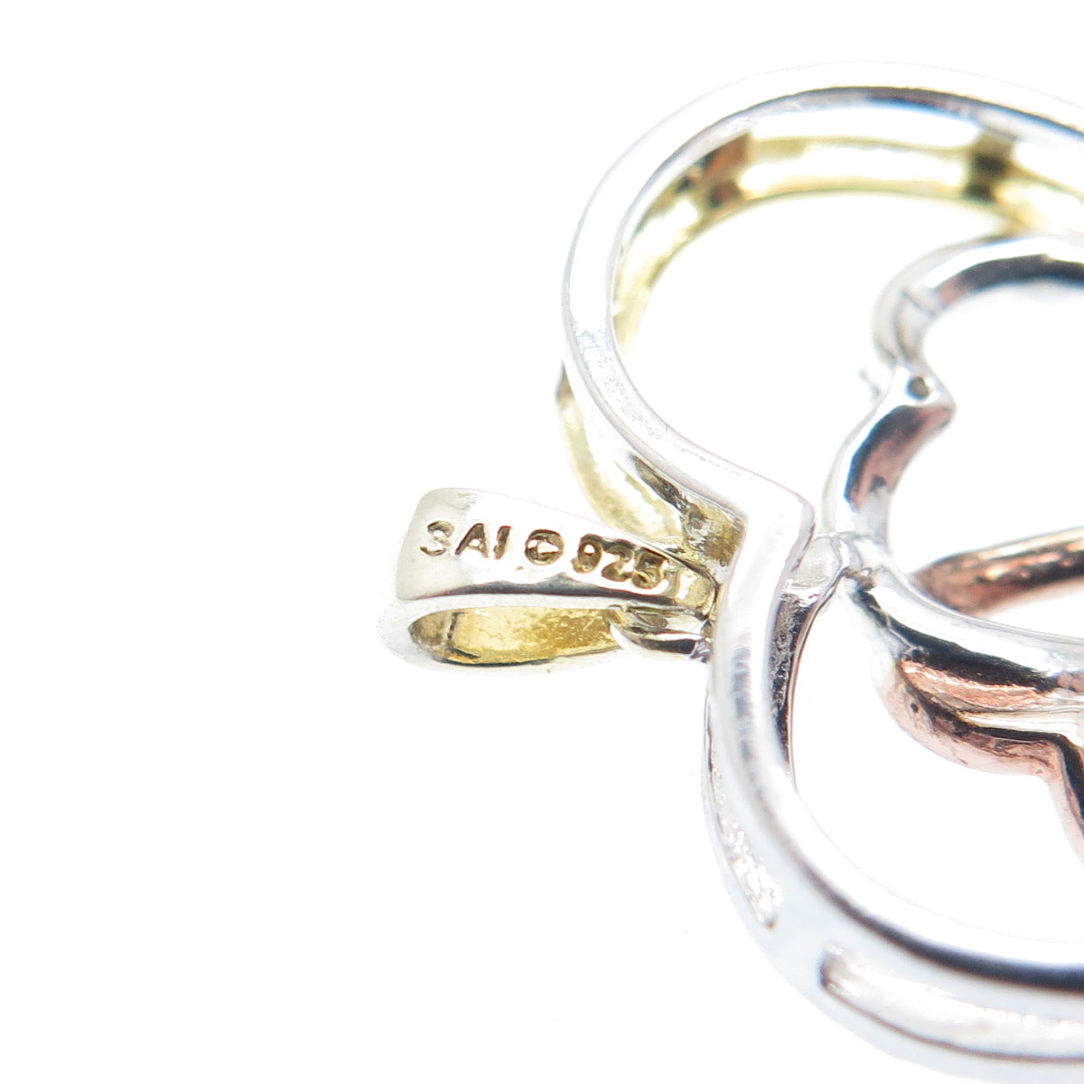 925 Sterling Silver 3-Tone Real Diamond Accent Interlocked Heart Mini Pendant