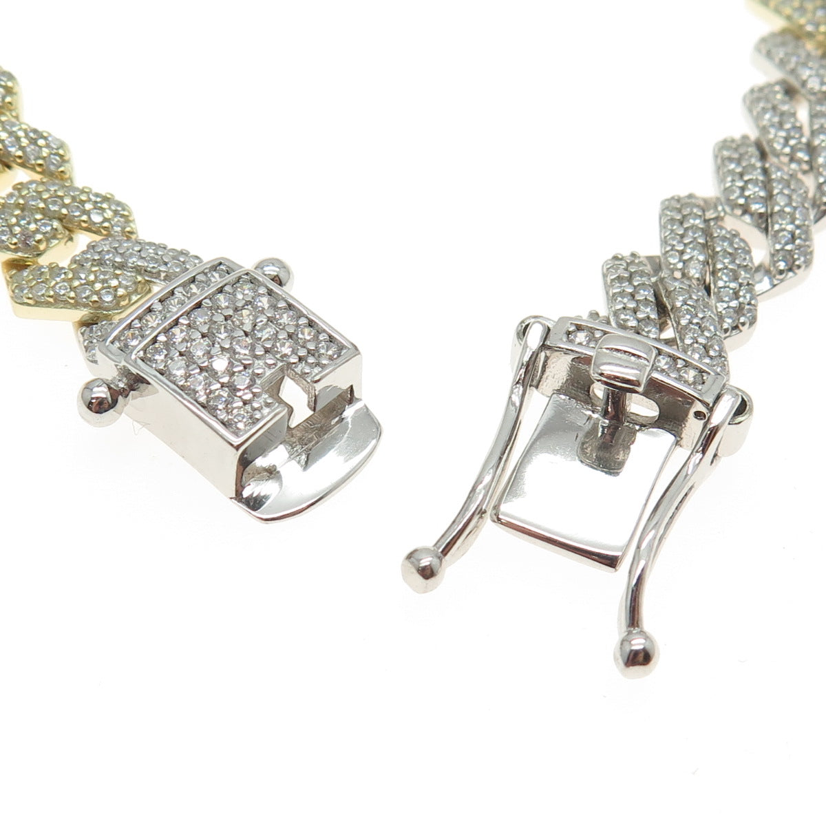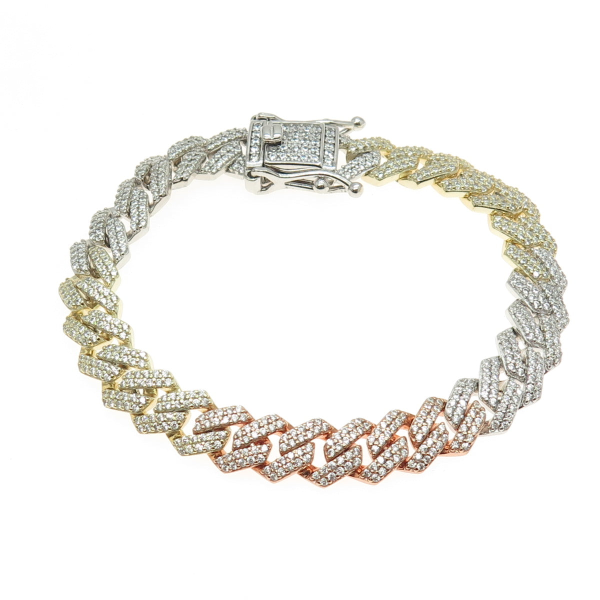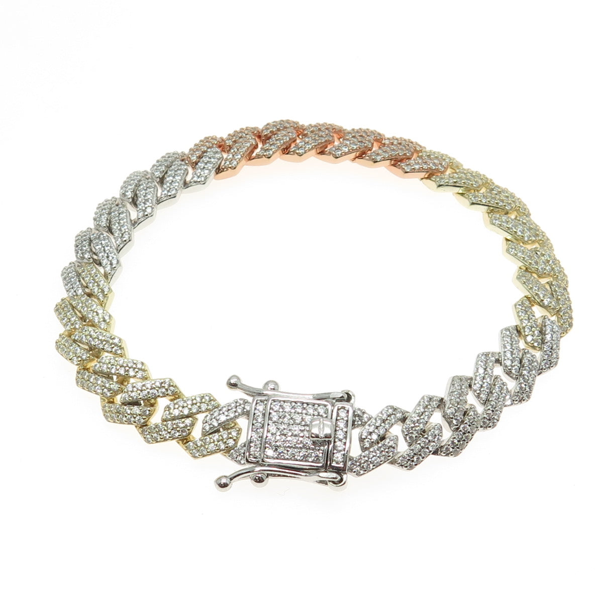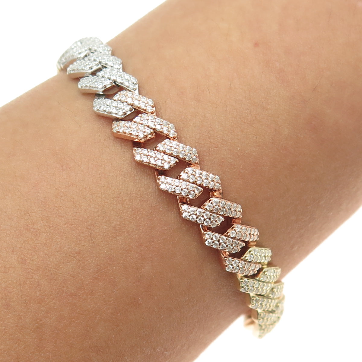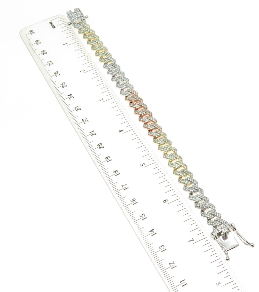 925 Sterling Silver 3-Tone Round-Cut C Z Cuban Link Bracelet 7"