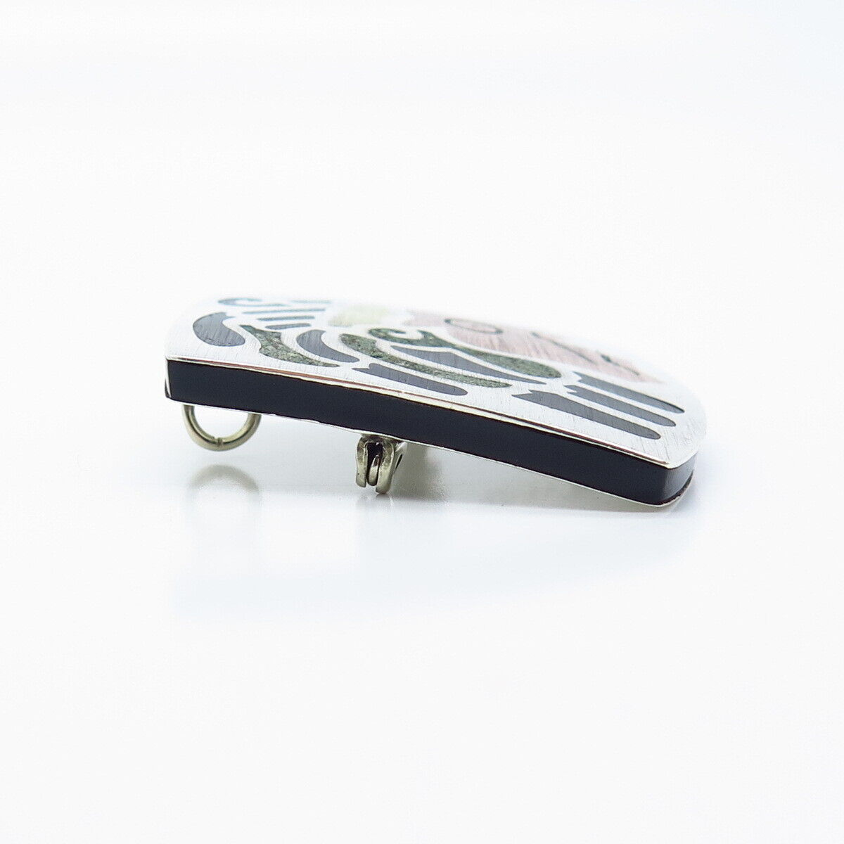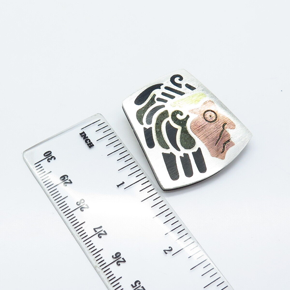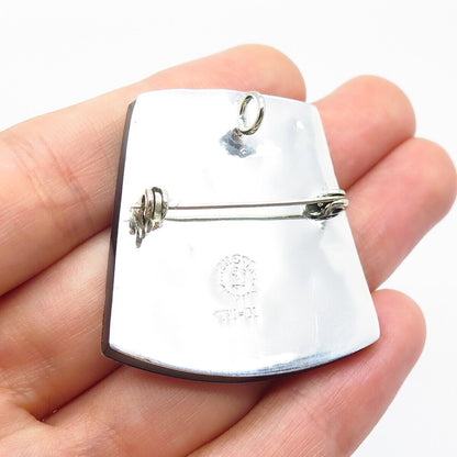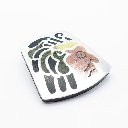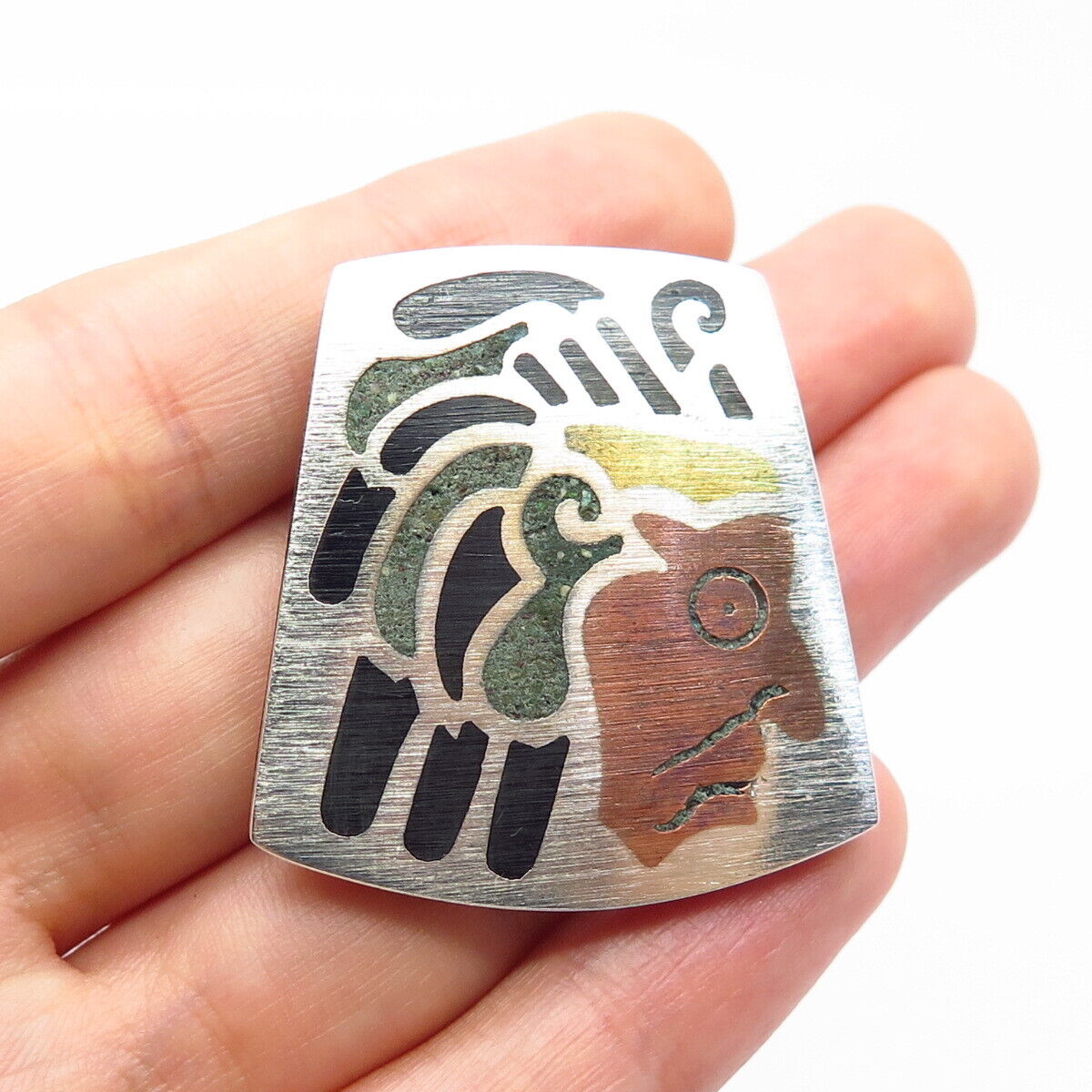 925 Sterling Silver 3-Tone Vintage Mexico Azurite Gem Inlay Tribal Face Brooch