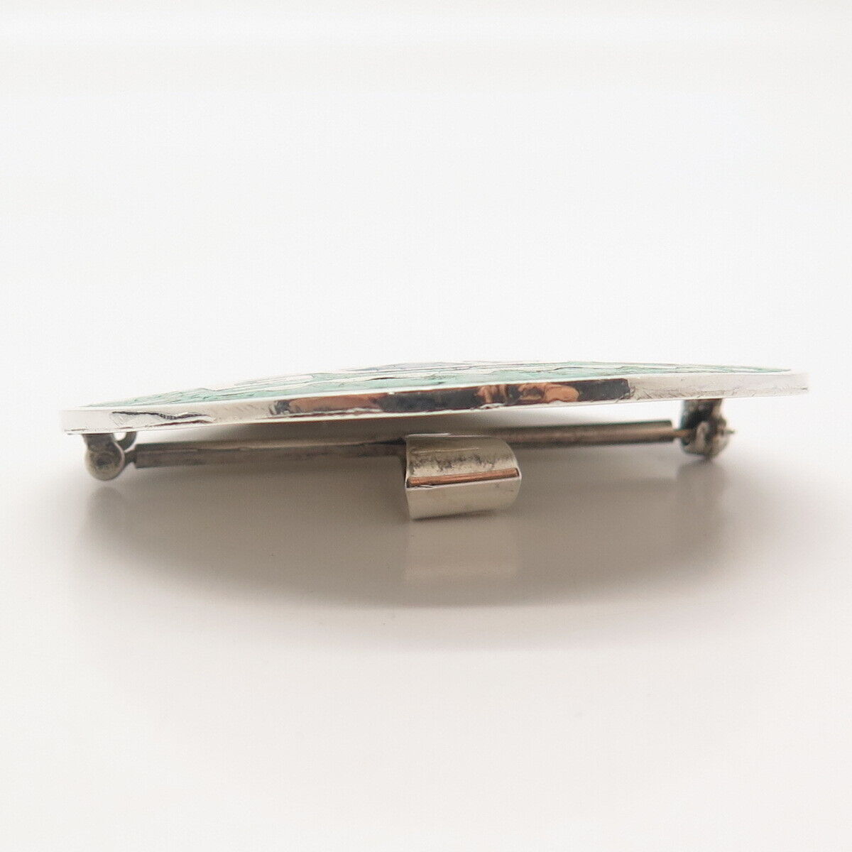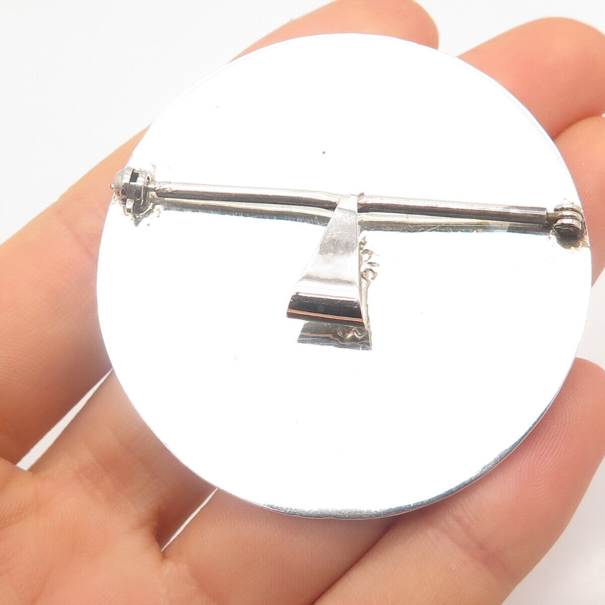 925 Sterling Silver 3-Tone Vintage Mexico Azurite Gem Inlay Tribal Pin Brooch
