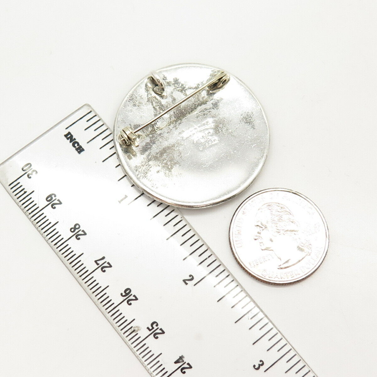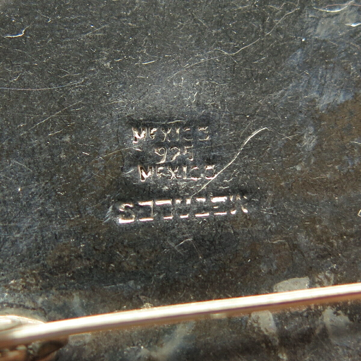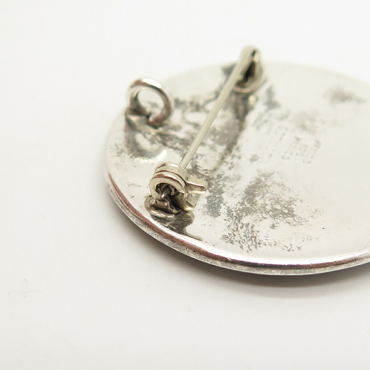 925 Sterling Silver 3-Tone Vintage Mexico Malachite Gem Tribal Pin Brooch