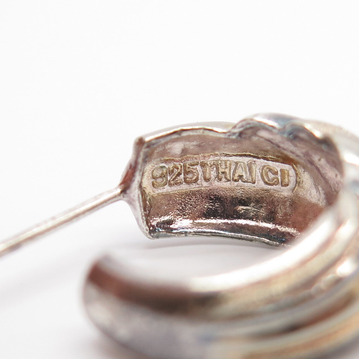 925 Sterling Silver 3-Tone Vintage Swirl Half Hoop Earrings