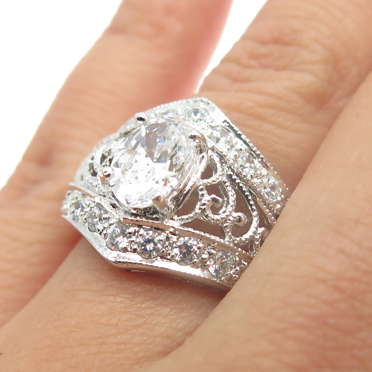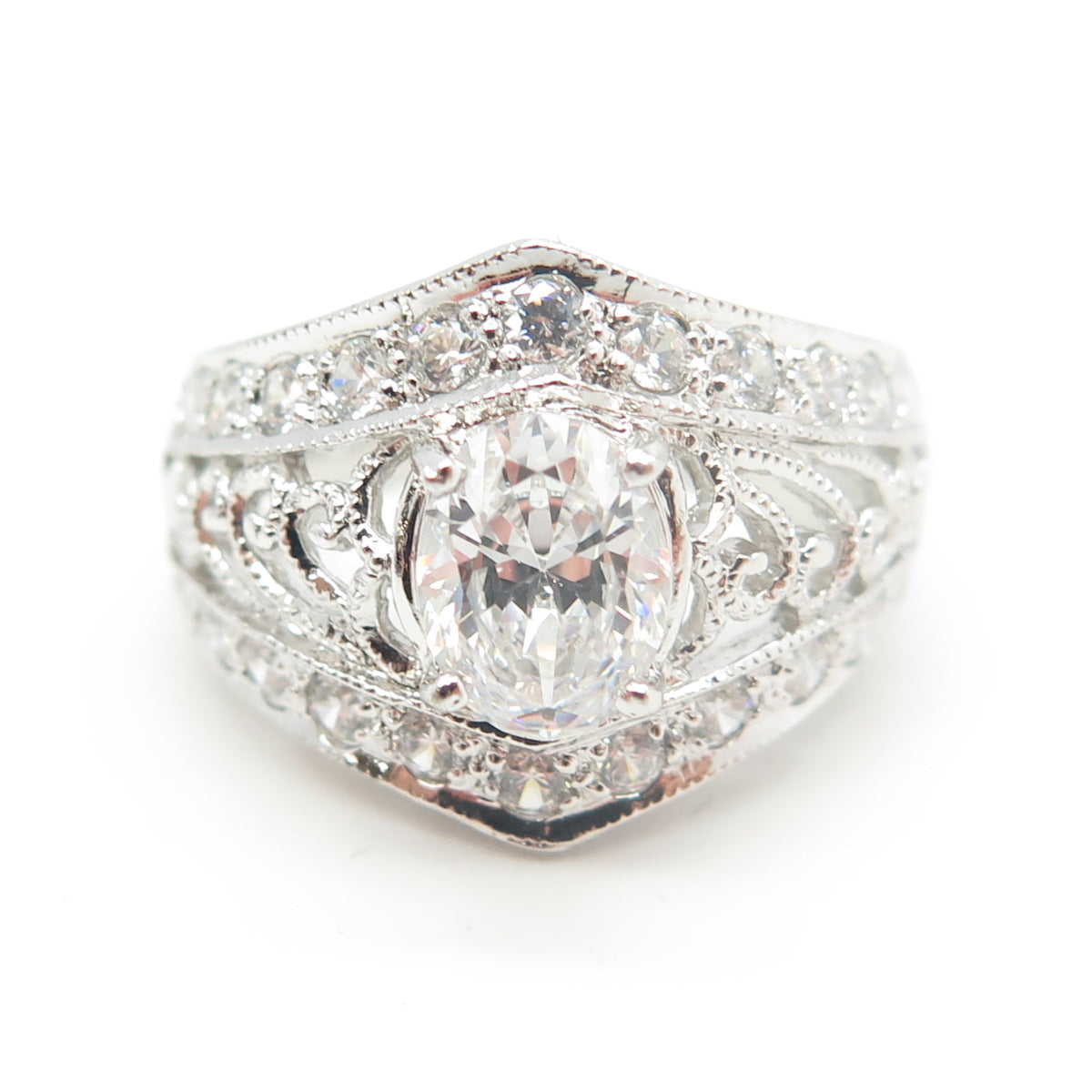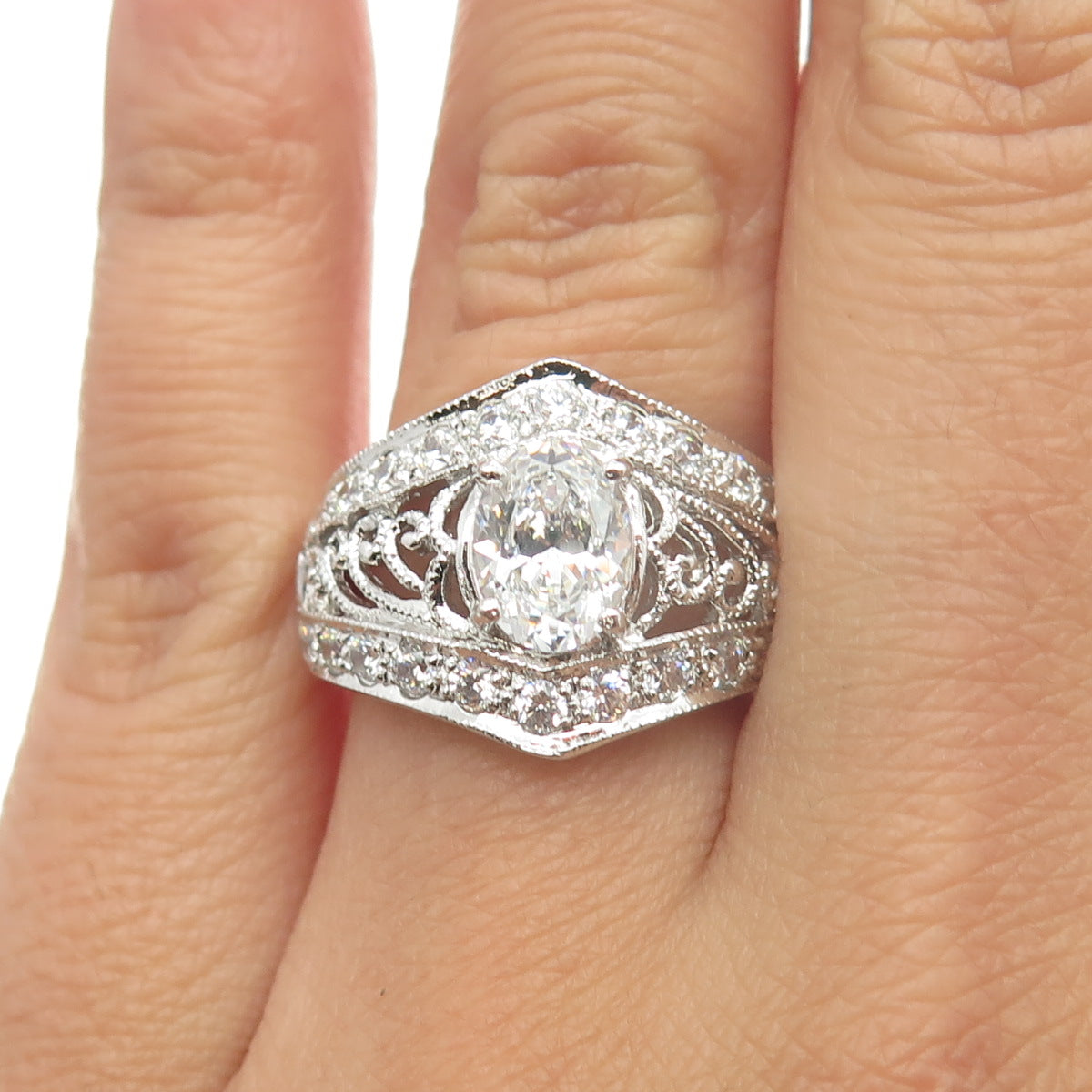 925 Sterling Silver ADI Round & Oval-Cut C Z Engagement Ring Size 6.25