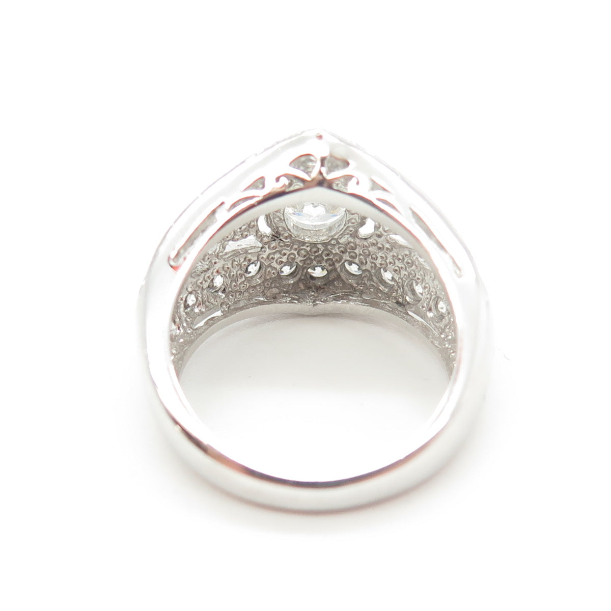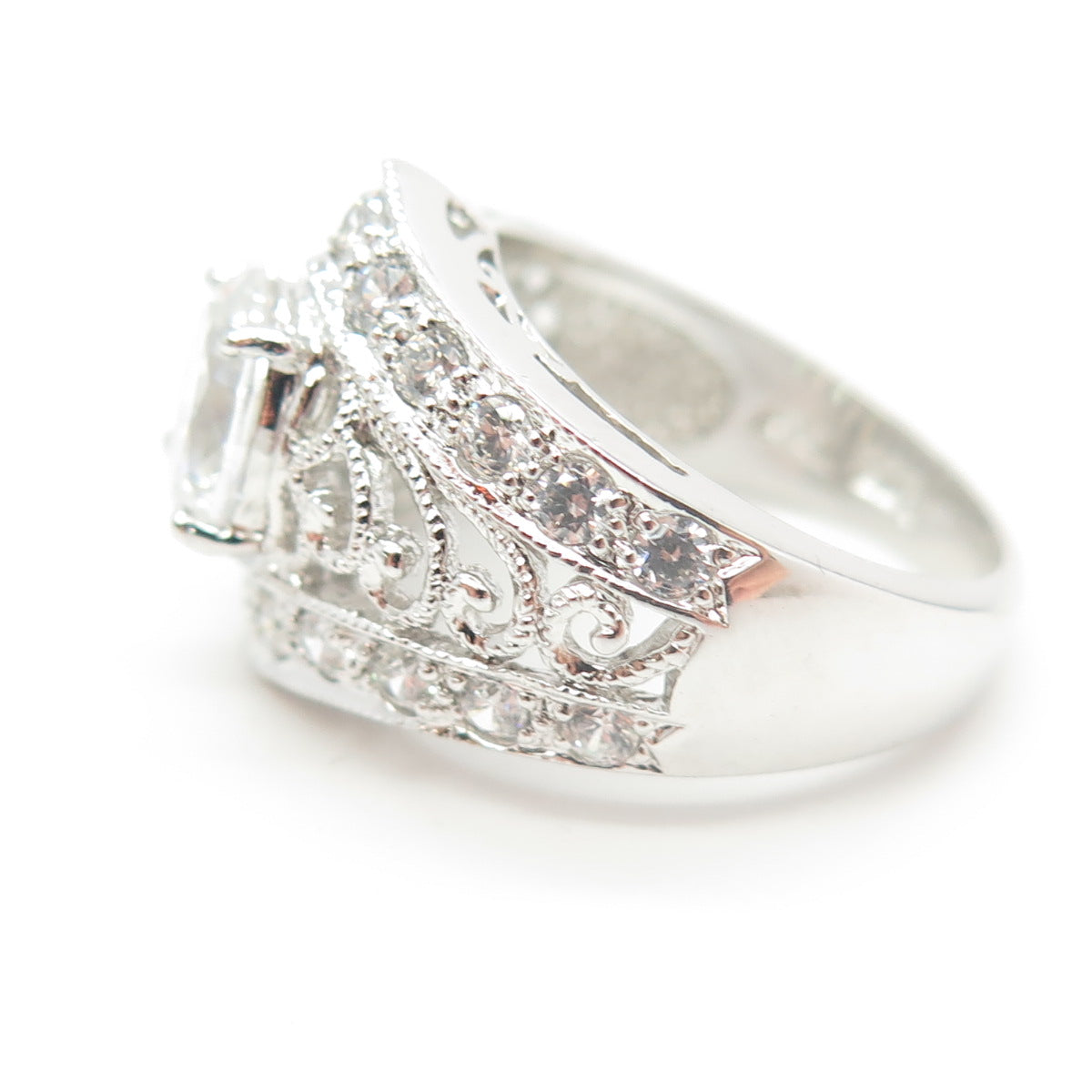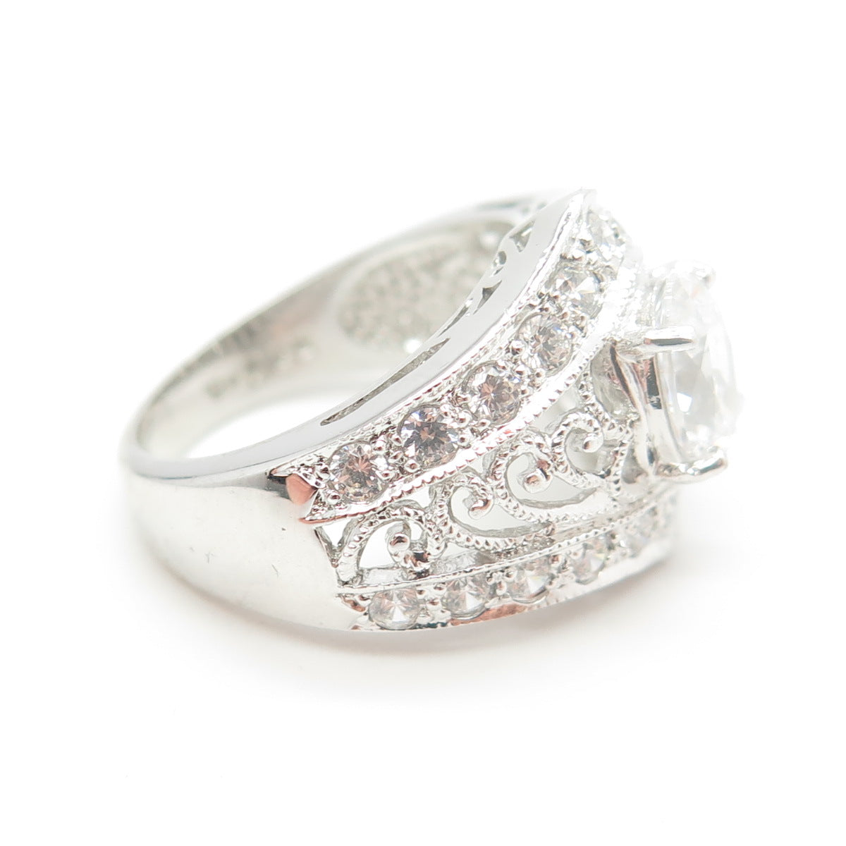 925 Sterling Silver ADI Round & Oval-Cut C Z Engagement Ring Size 6.25