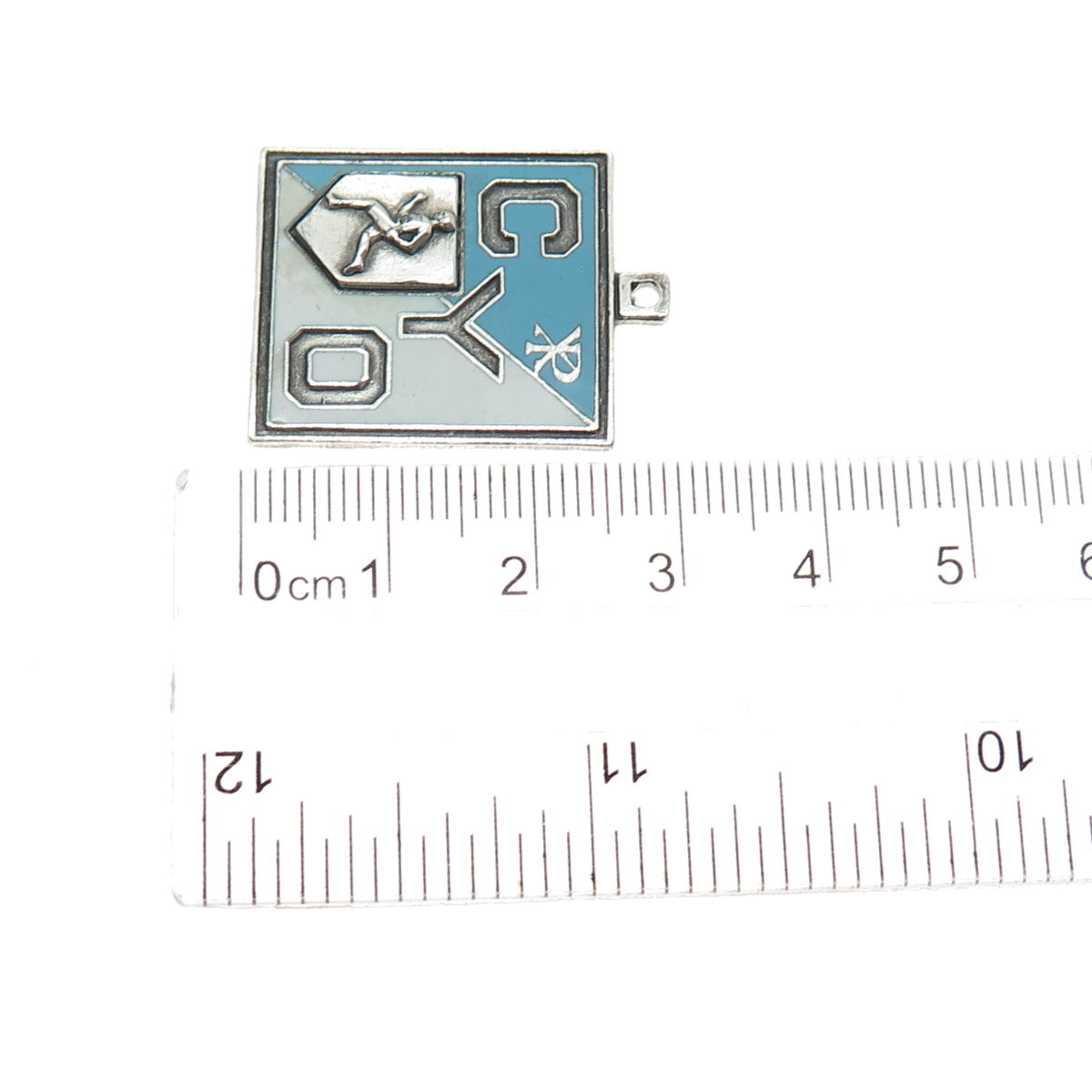 925 Sterling Silver Antique 1945 Enamel CYO Track & Field Medal Pendant