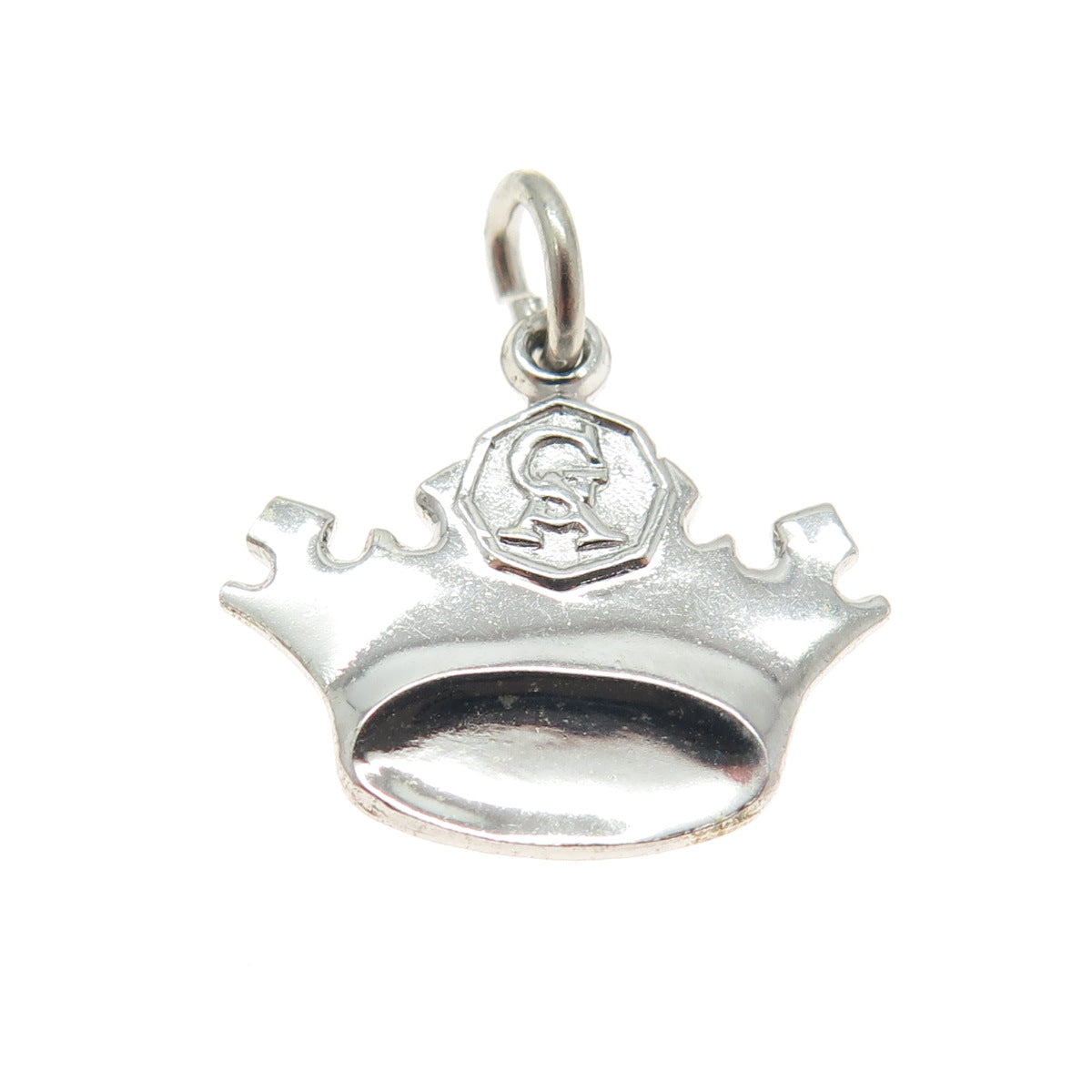 925 Sterling Silver Antique Art Deco "AG" Signet Crown Charm Pendant