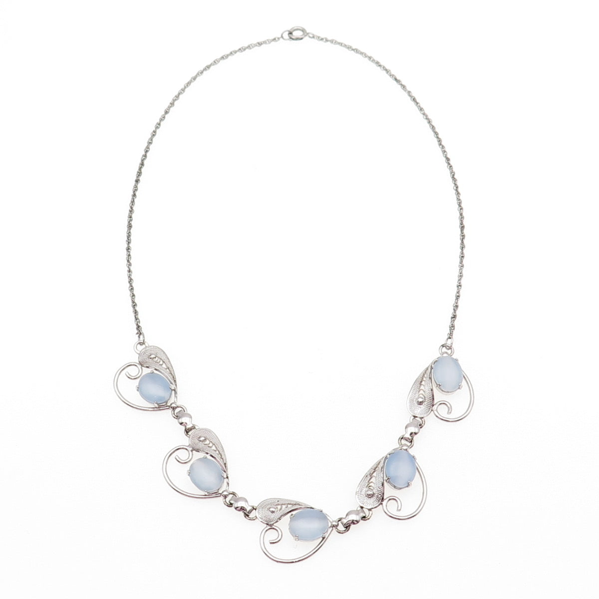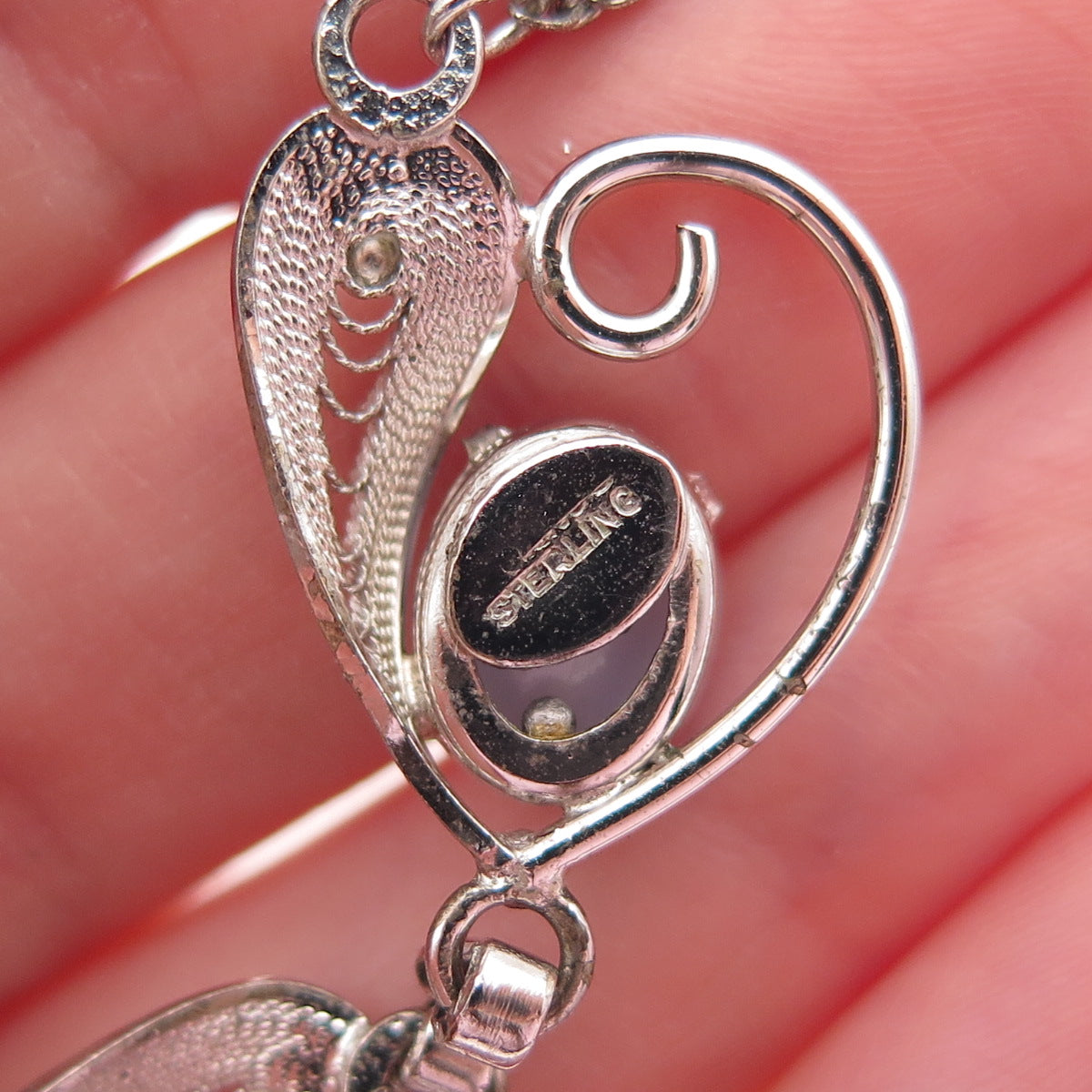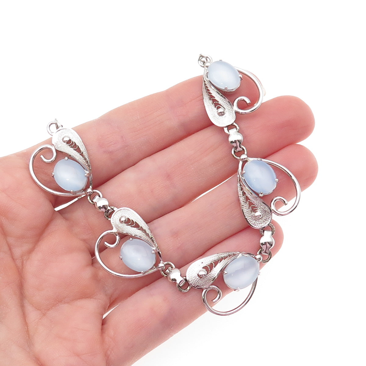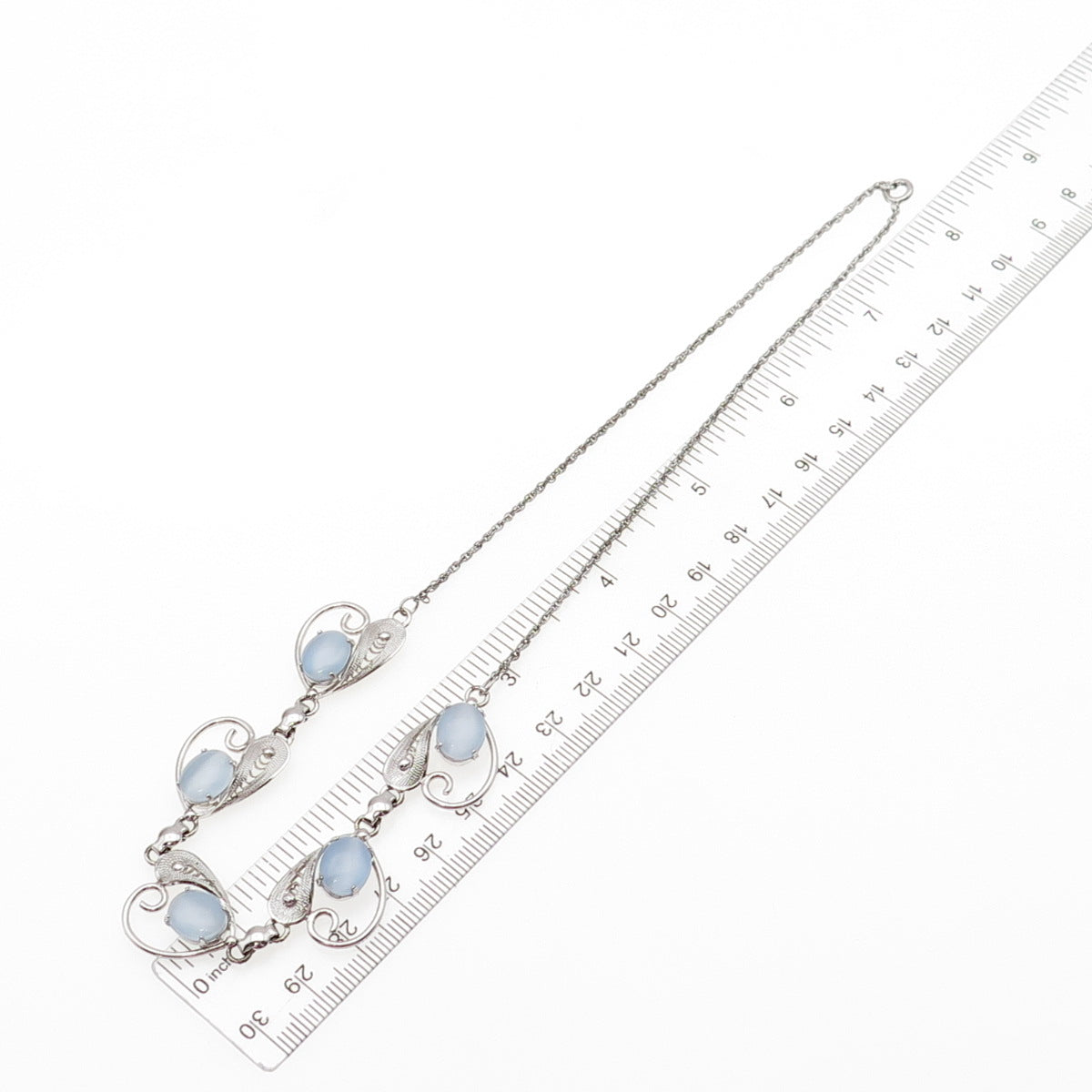 925 Sterling Silver Antique Art Deco Apalite Filigree Chain Necklace 16"