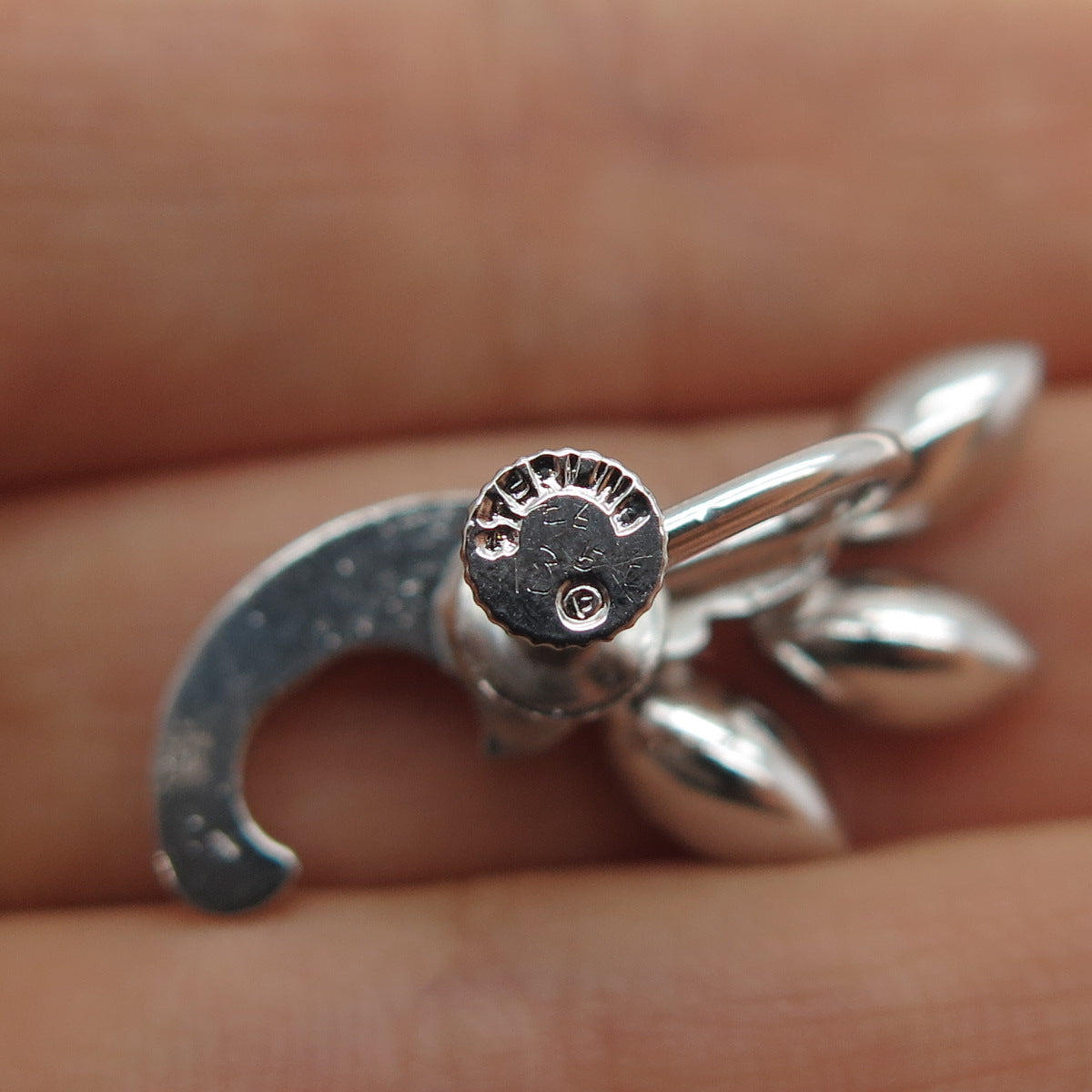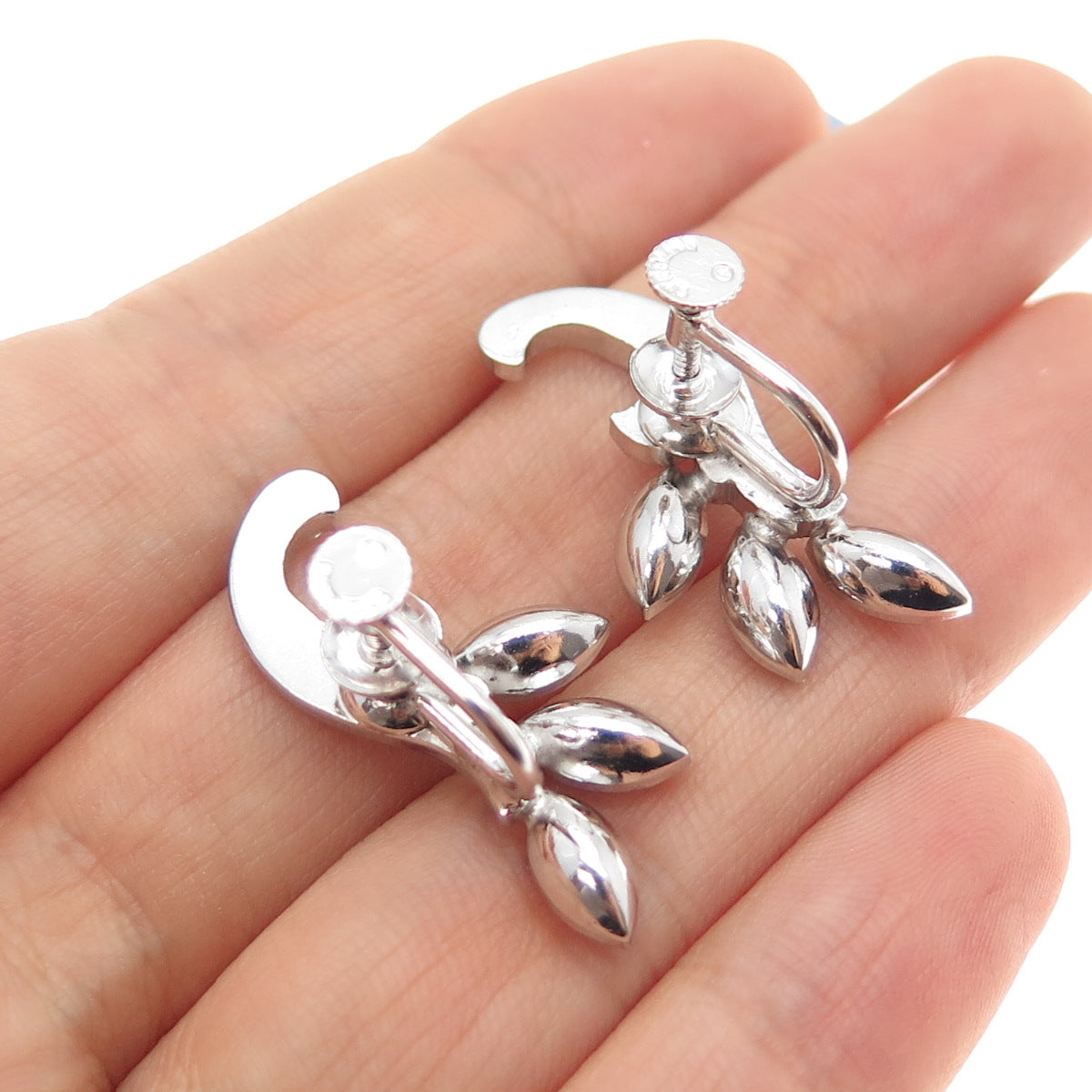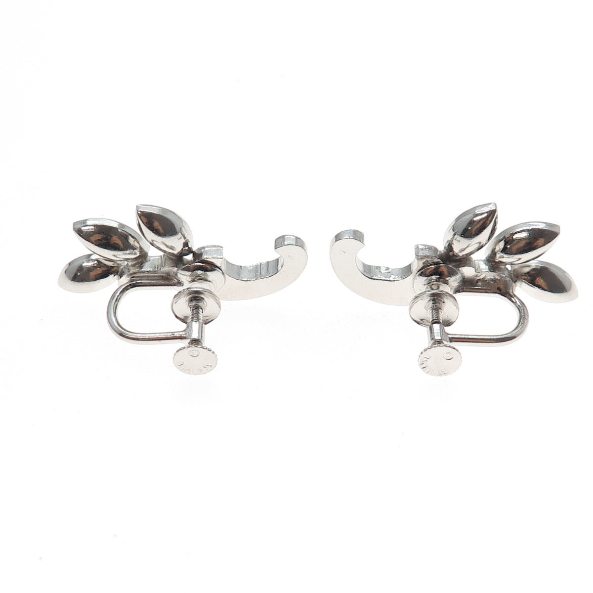 925 Sterling Silver Antique Art Deco Blue & White Rhinestone Screw Back Earrings