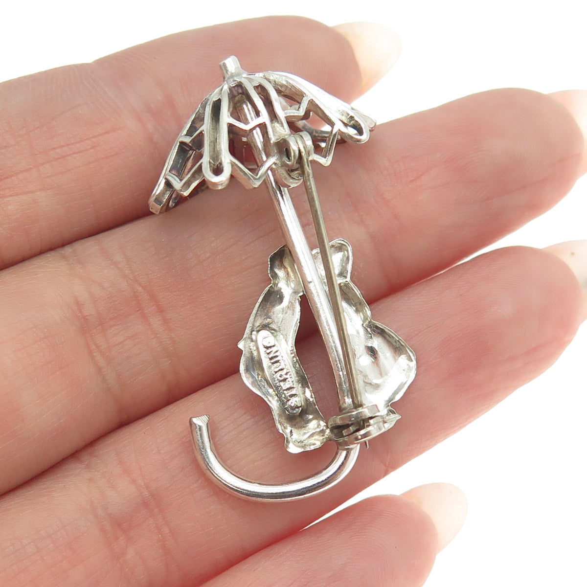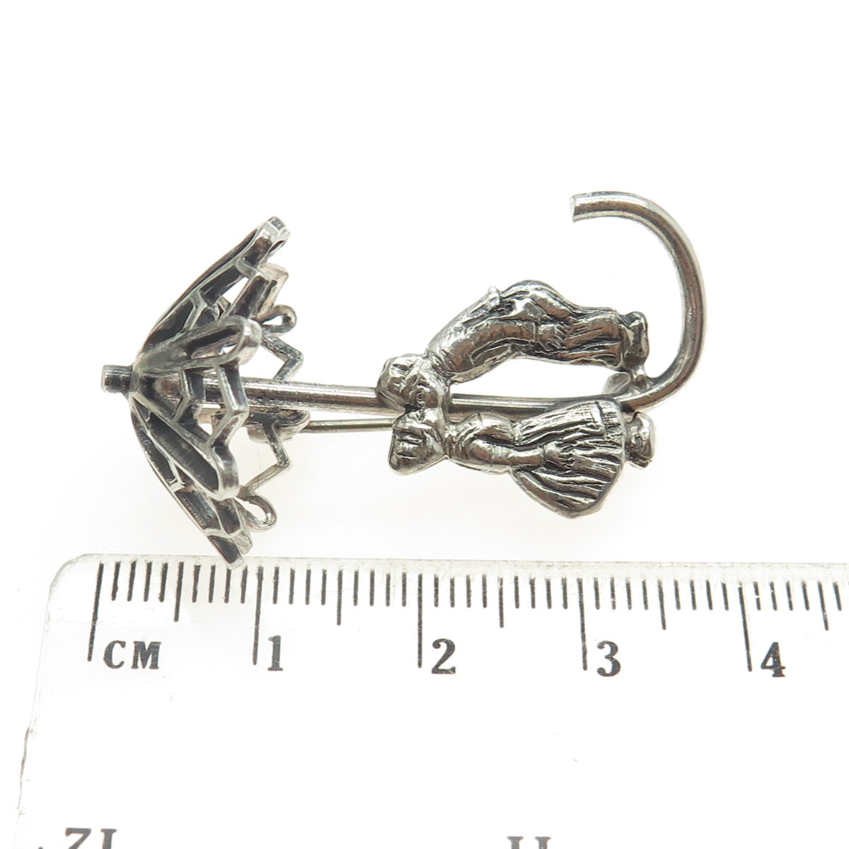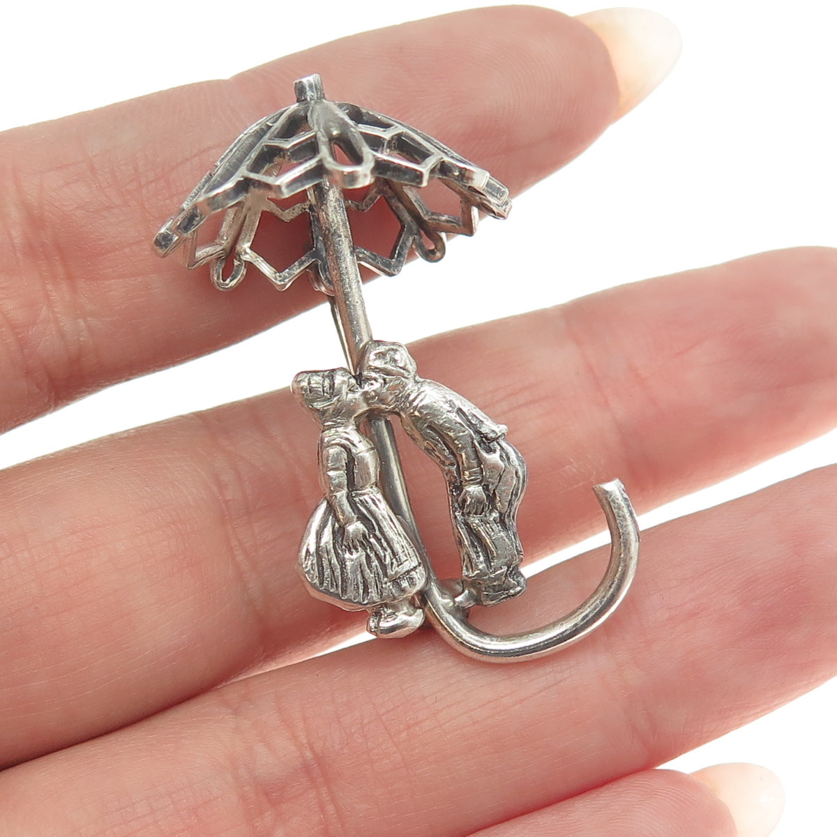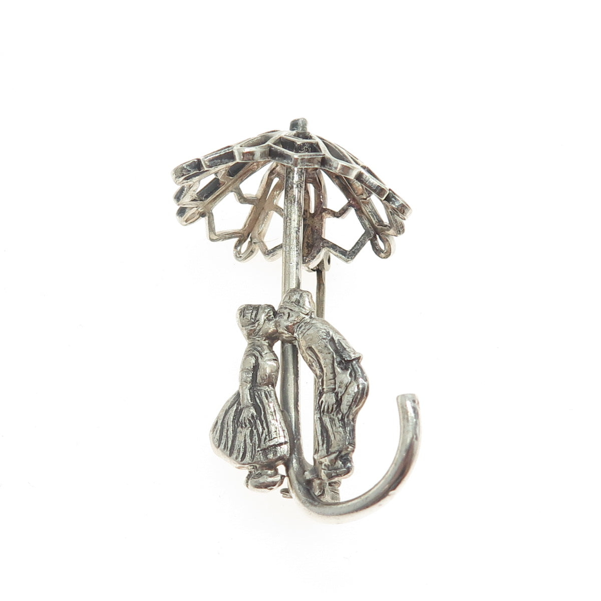 925 Sterling Silver Antique Art Deco Couple Under Umbrella Pin Brooch