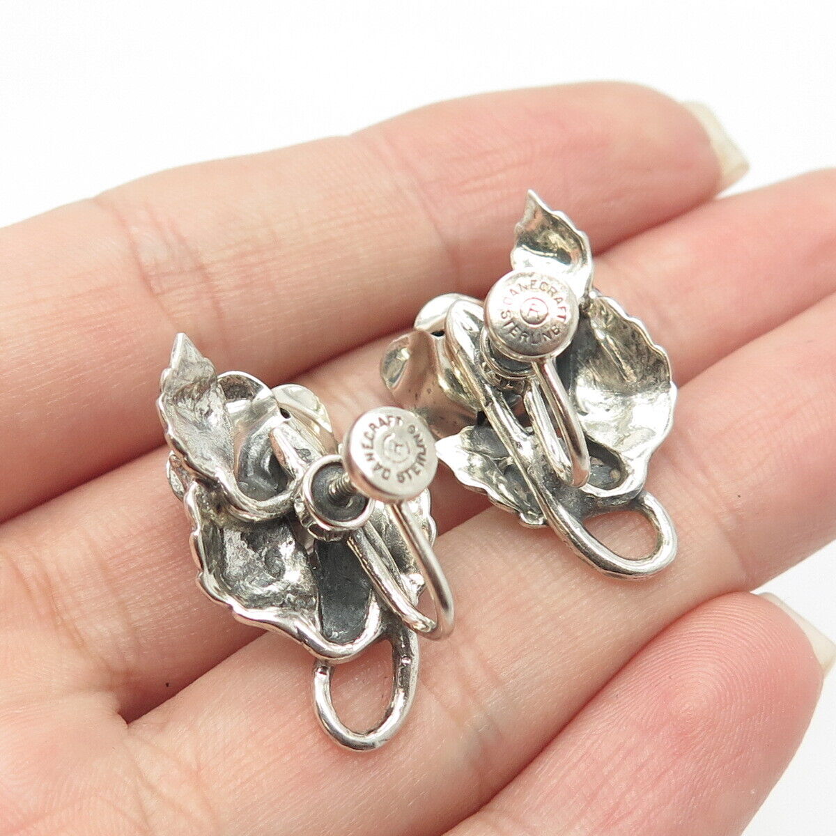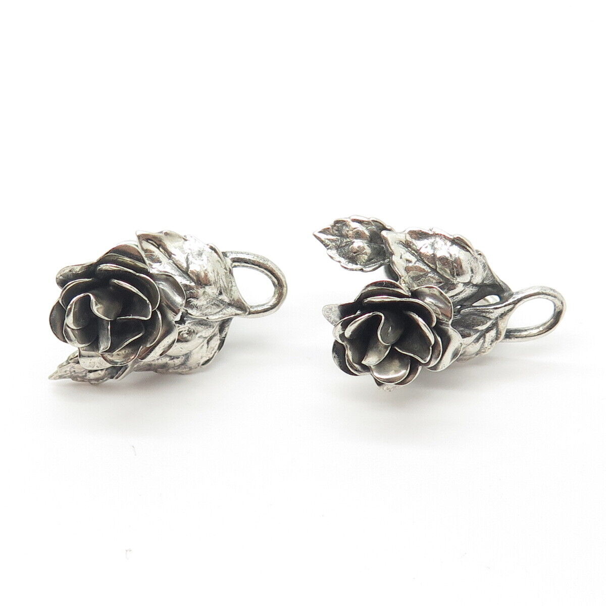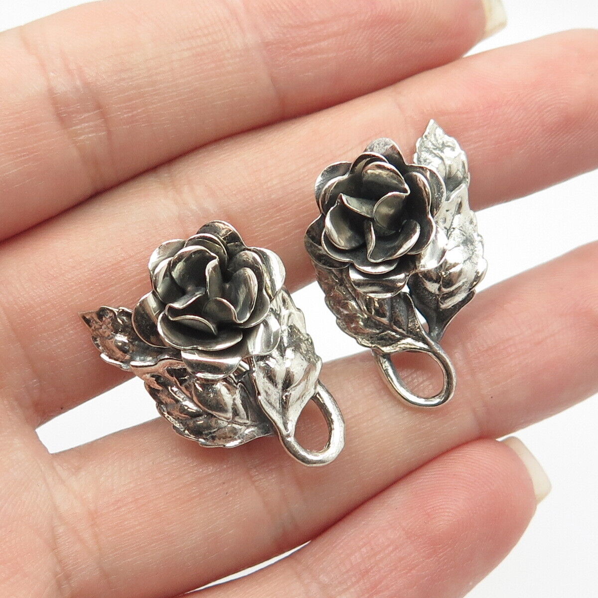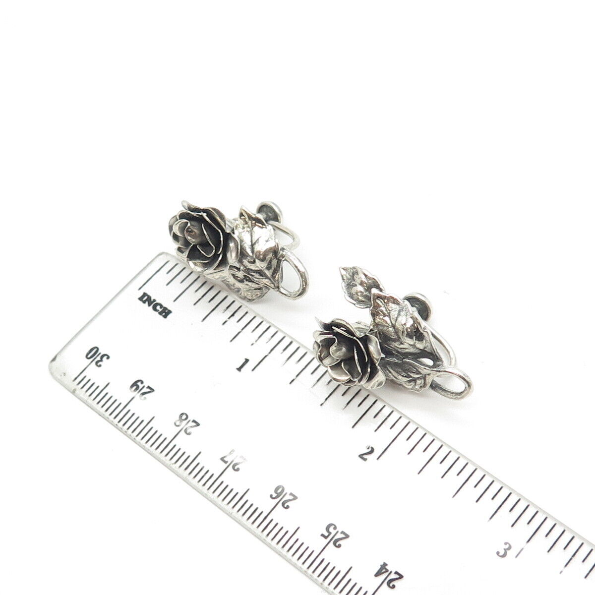 925 Sterling Silver Antique Art Deco Danecraft Rose Flower Screw Back Earrings