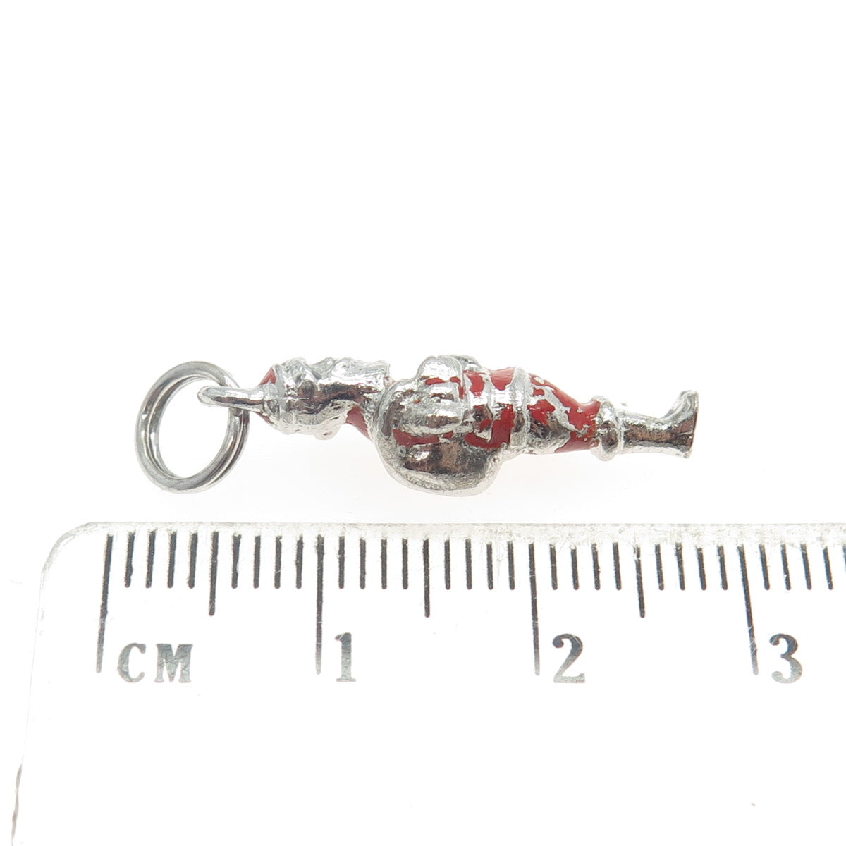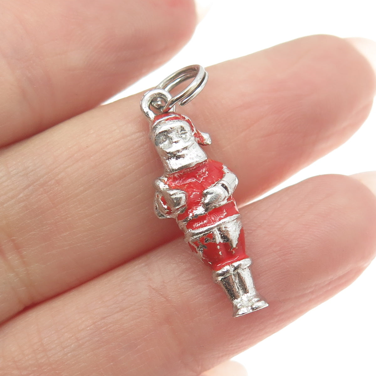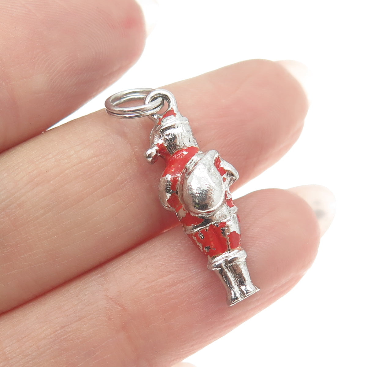 925 Sterling Silver Antique Art Deco Enamel Santa Claus Minimalist Charm Pendant