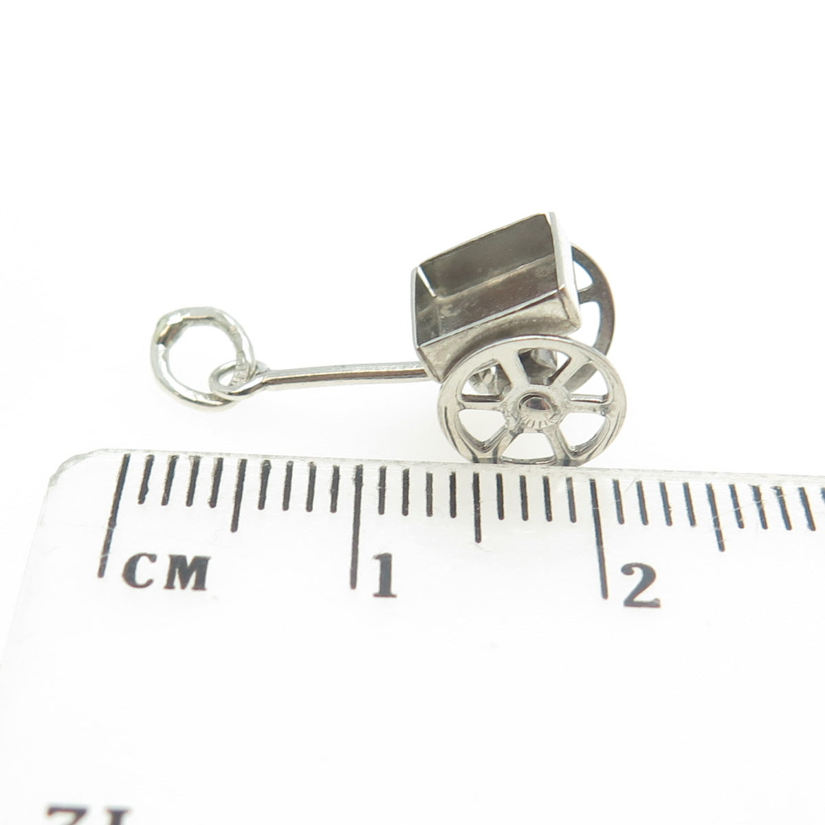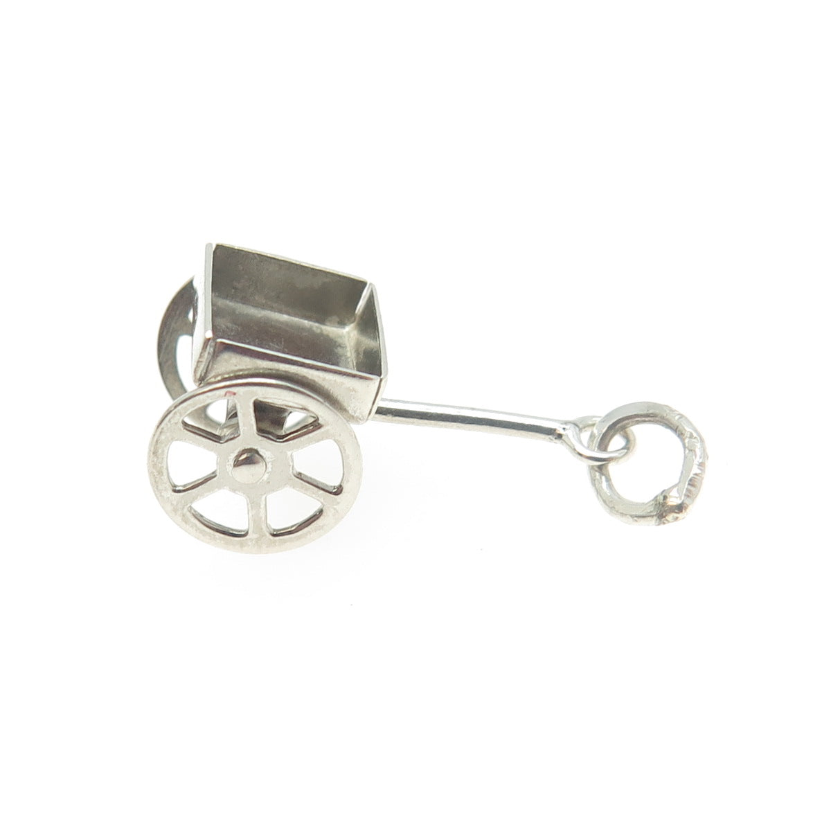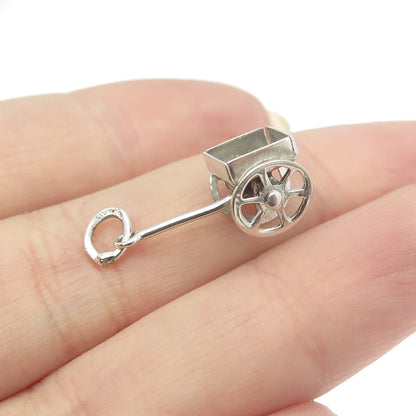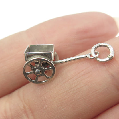 925 Sterling Silver Antique Art Deco Handcart 3D Charm Pendant