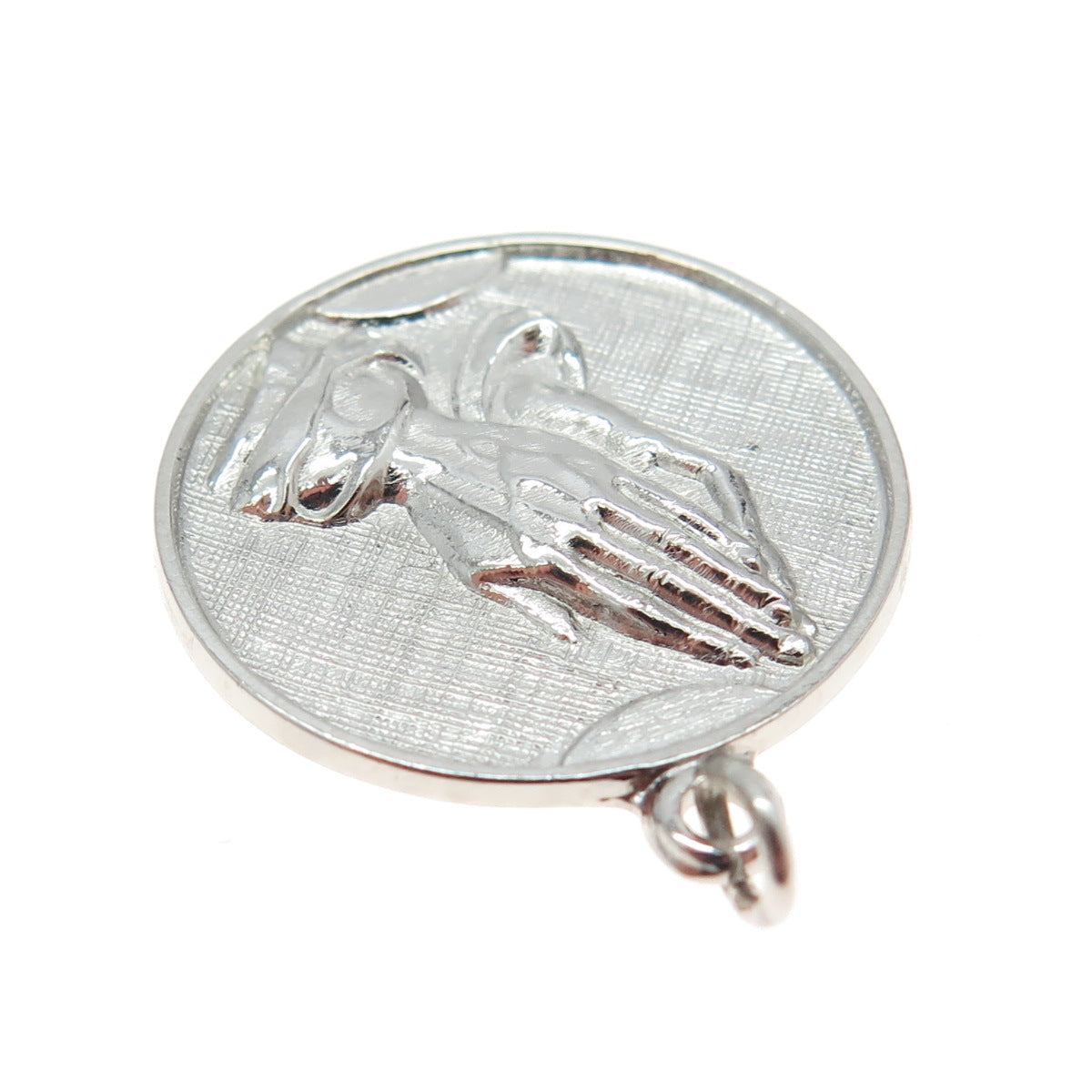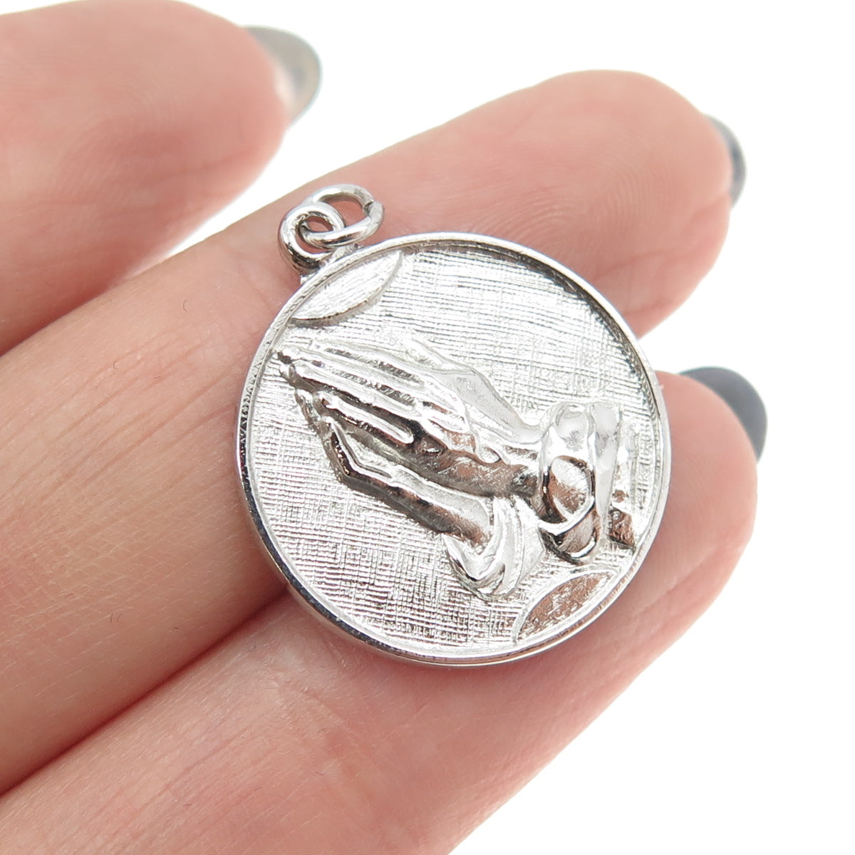 925 Sterling Silver Antique Art Deco Hands In Prayer Charm Pendant