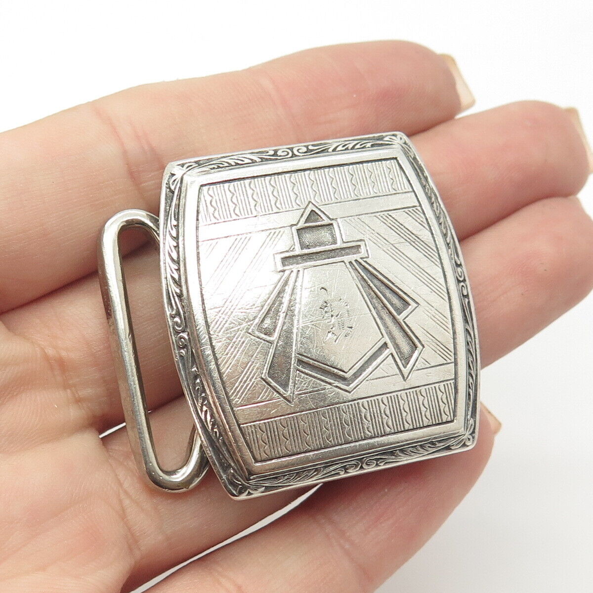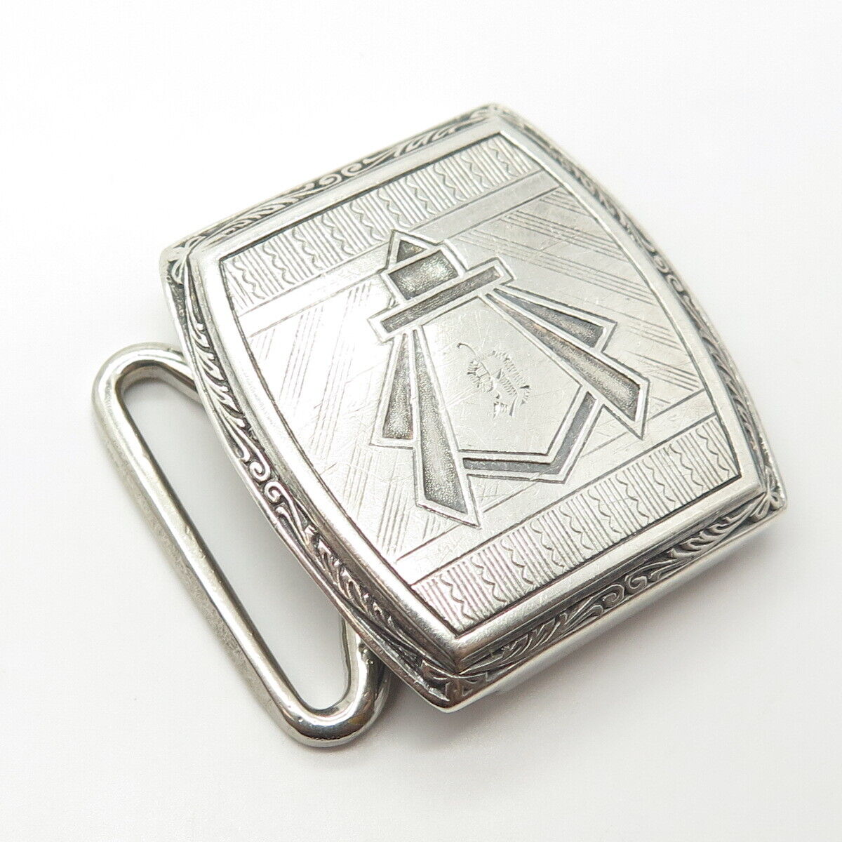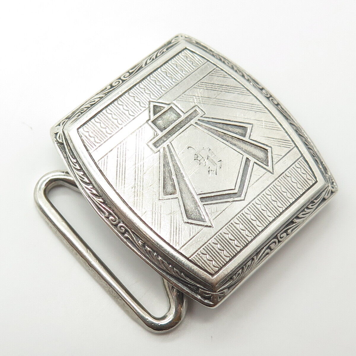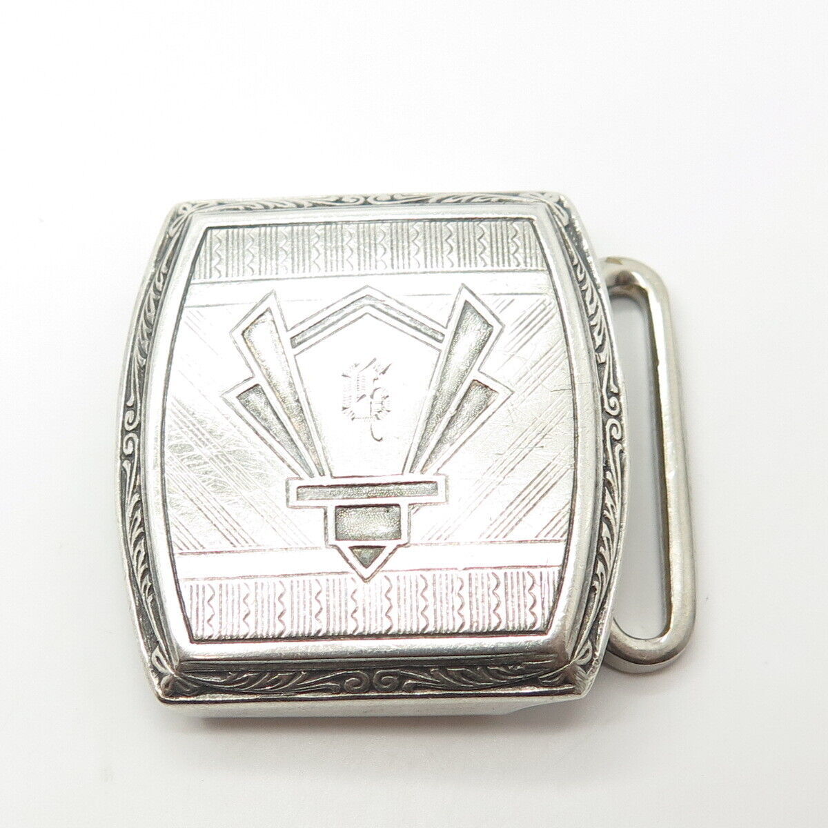925 Sterling Silver Antique Art Deco Japanese Theme Belt Buckle
