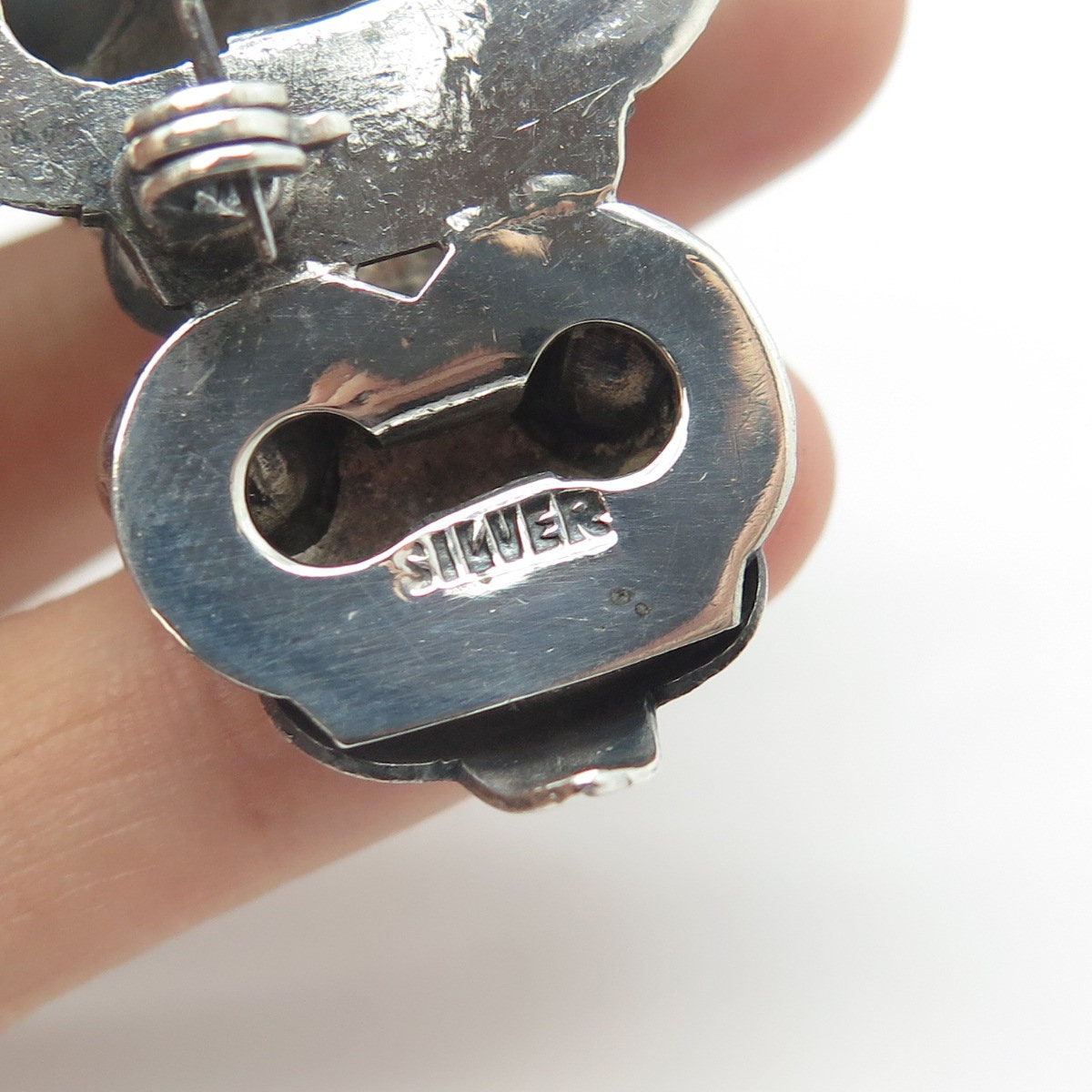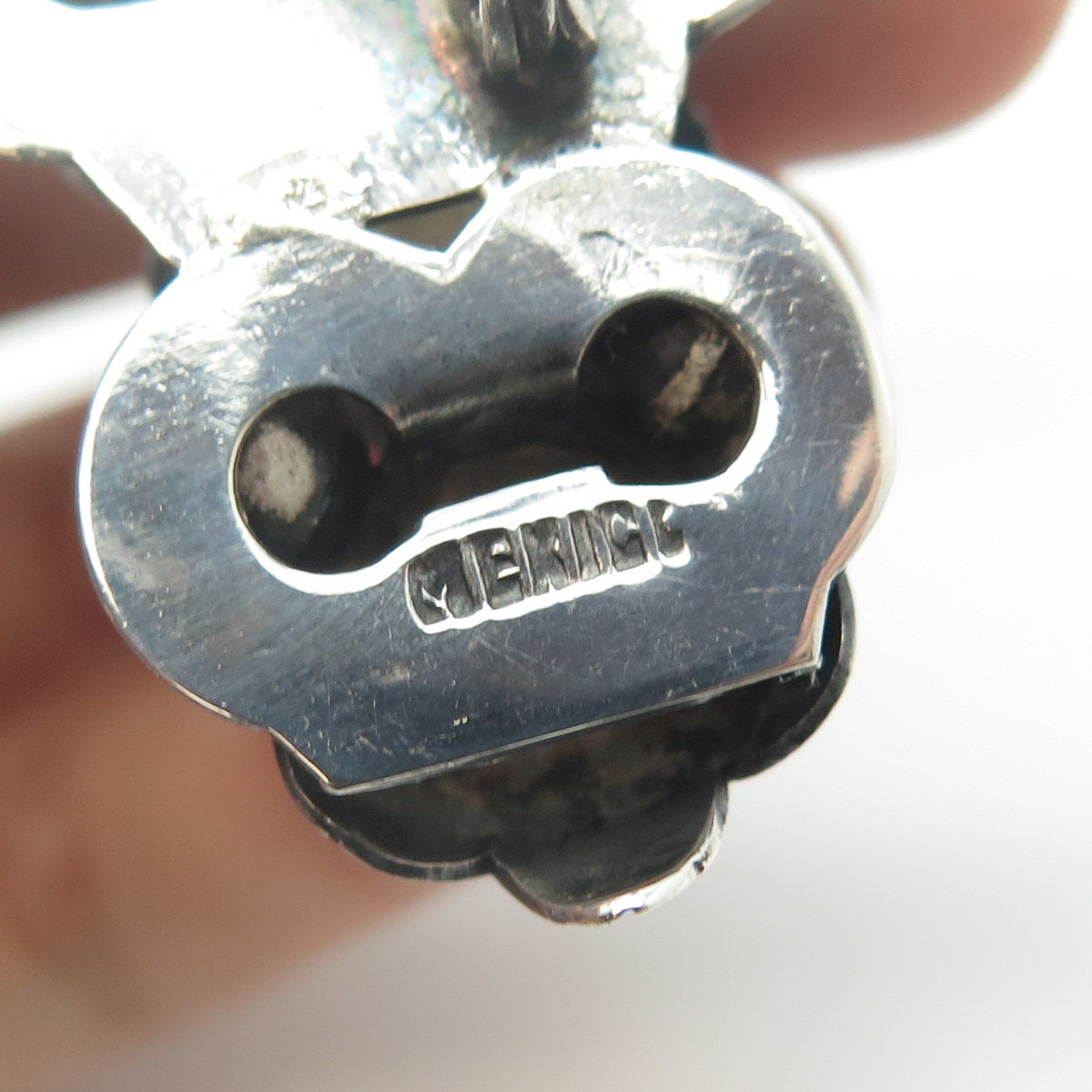 925 Sterling Silver Antique Art Deco Mexico Real Amethyst Gem Ornate Pin Brooch
