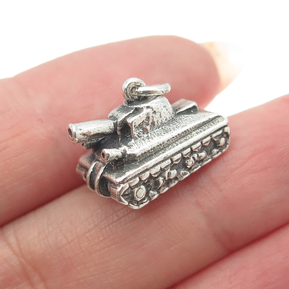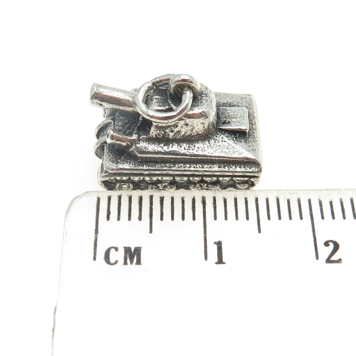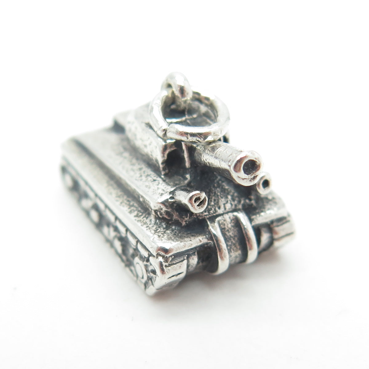 925 Sterling Silver Antique Art Deco Military Tank Minimalist 3D Charm Pendant