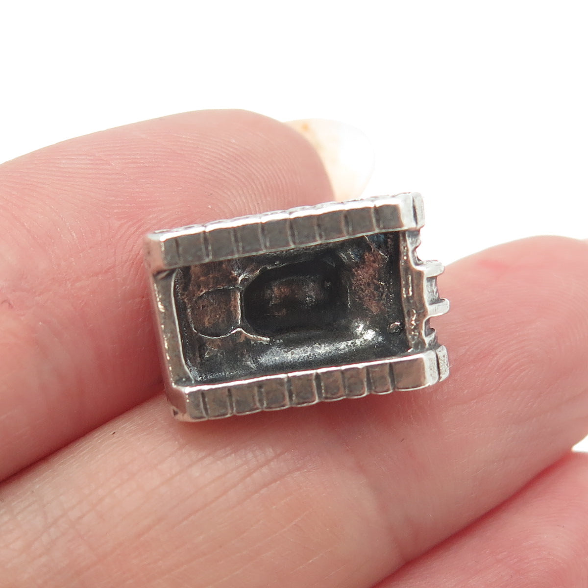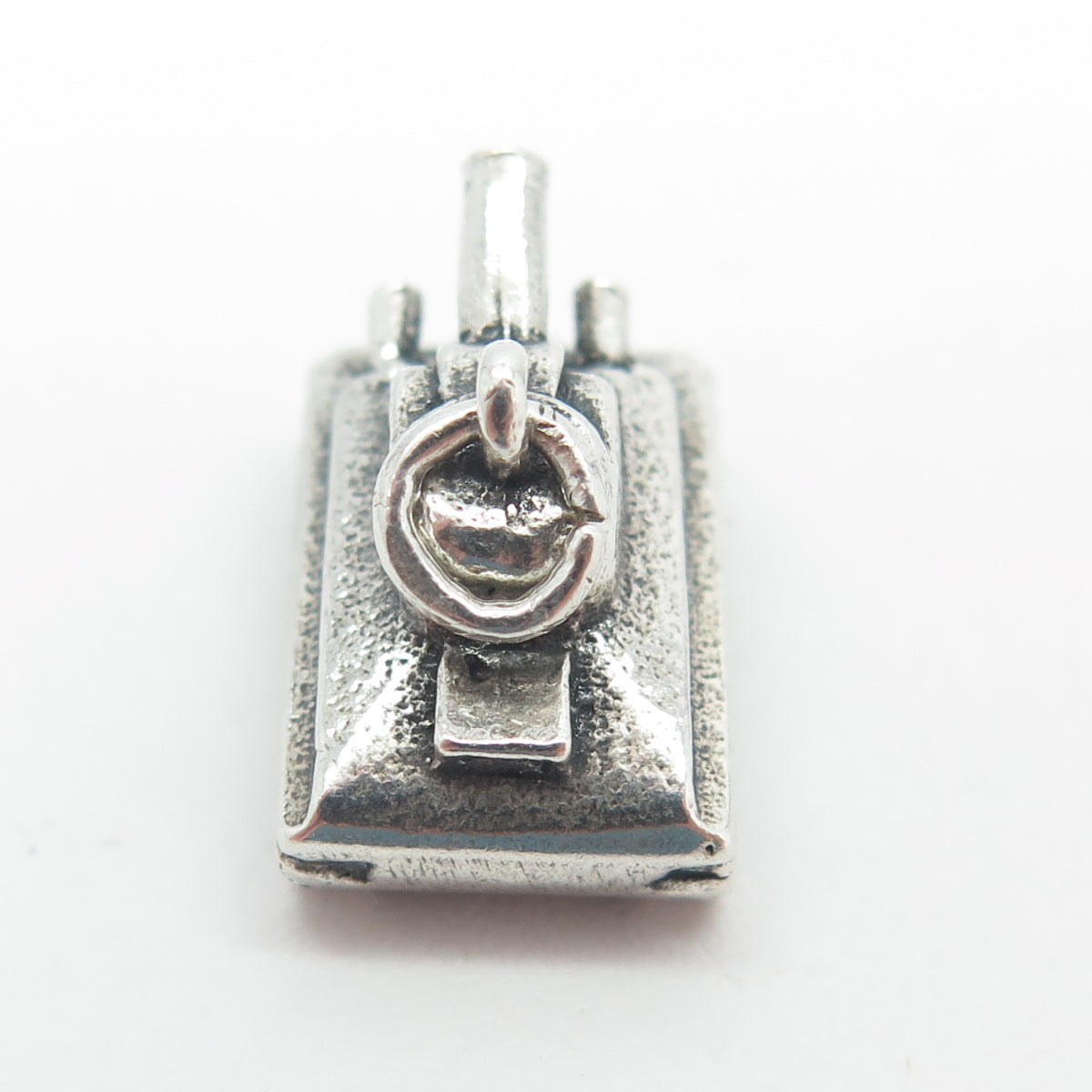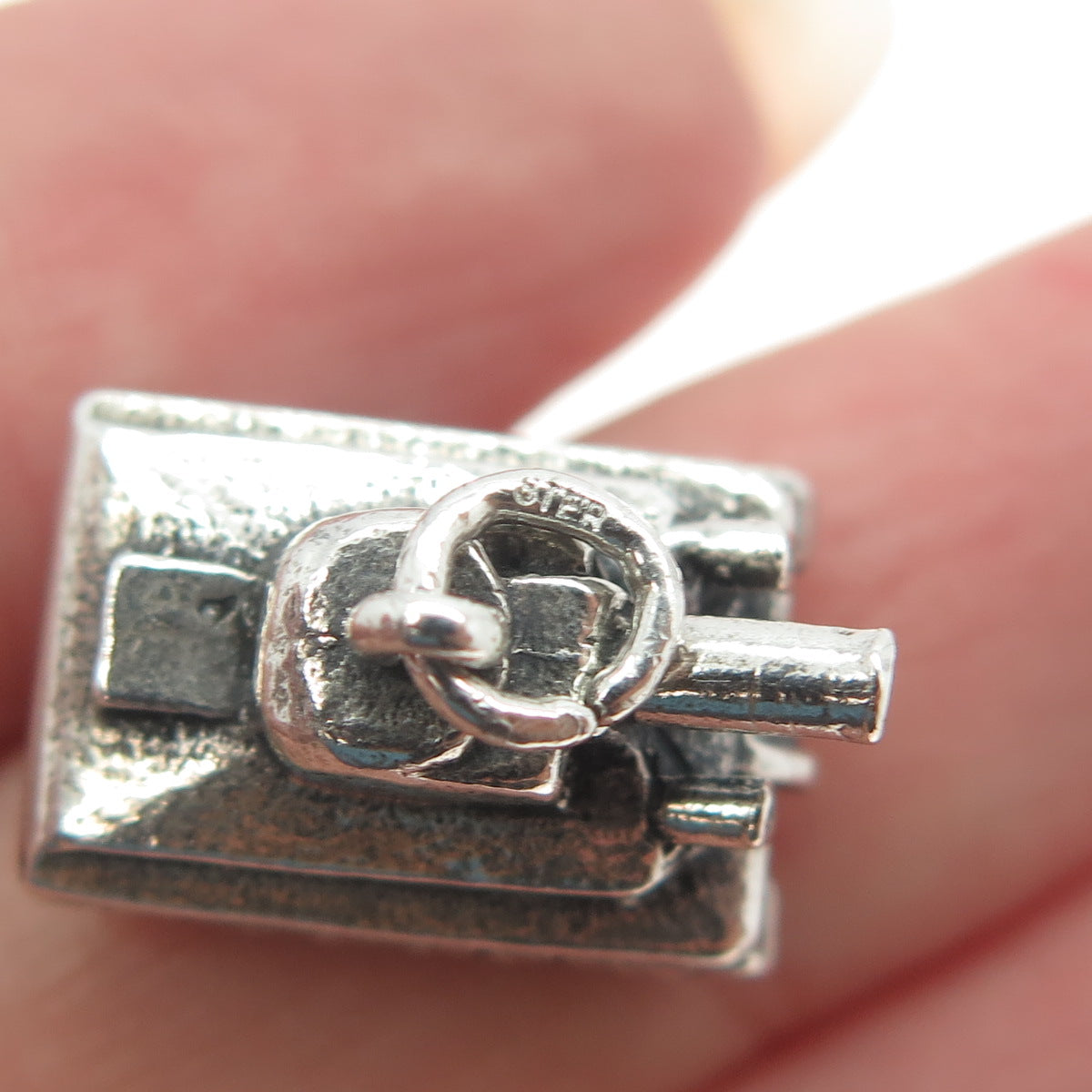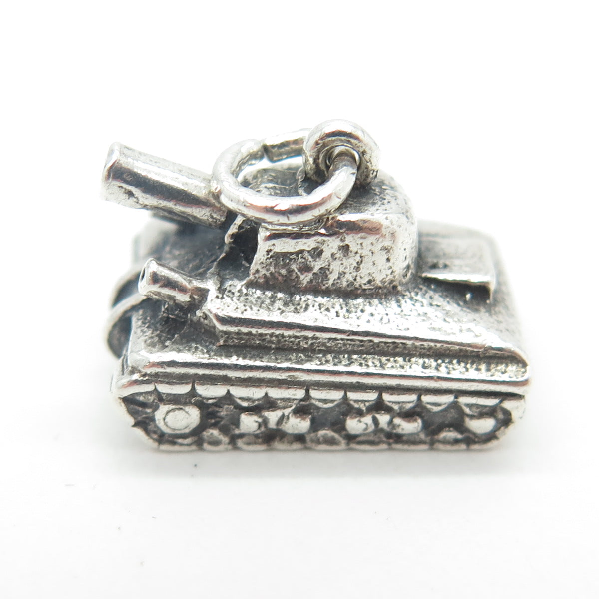 925 Sterling Silver Antique Art Deco Military Tank Minimalist 3D Charm Pendant