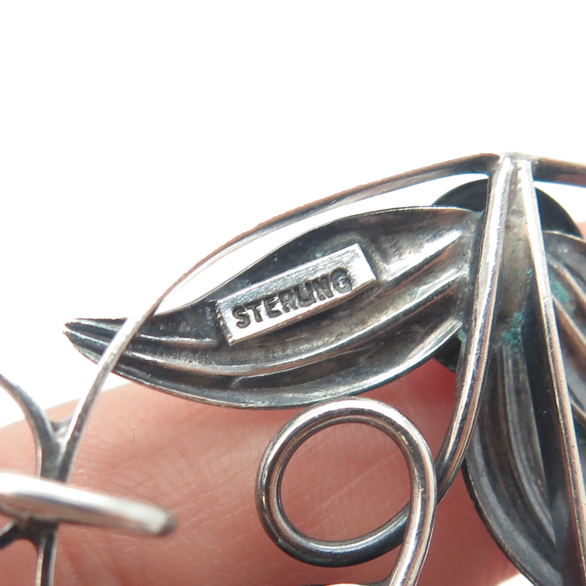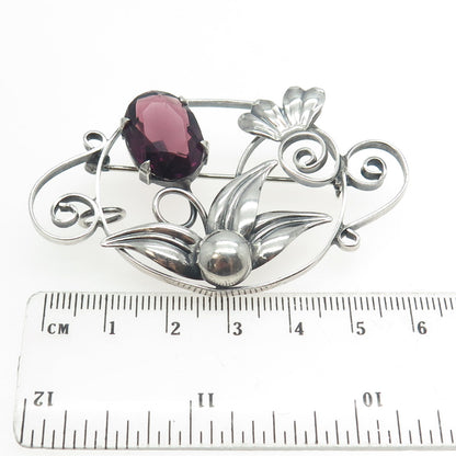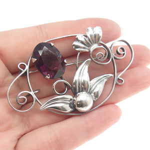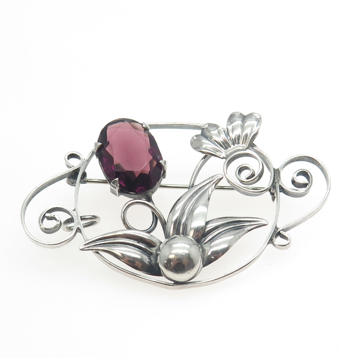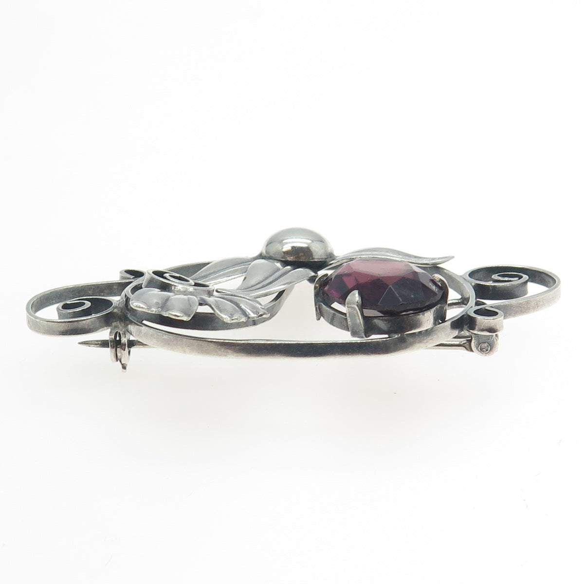 925 Sterling Silver Antique Art Deco Pink Glass Floral Pin Brooch