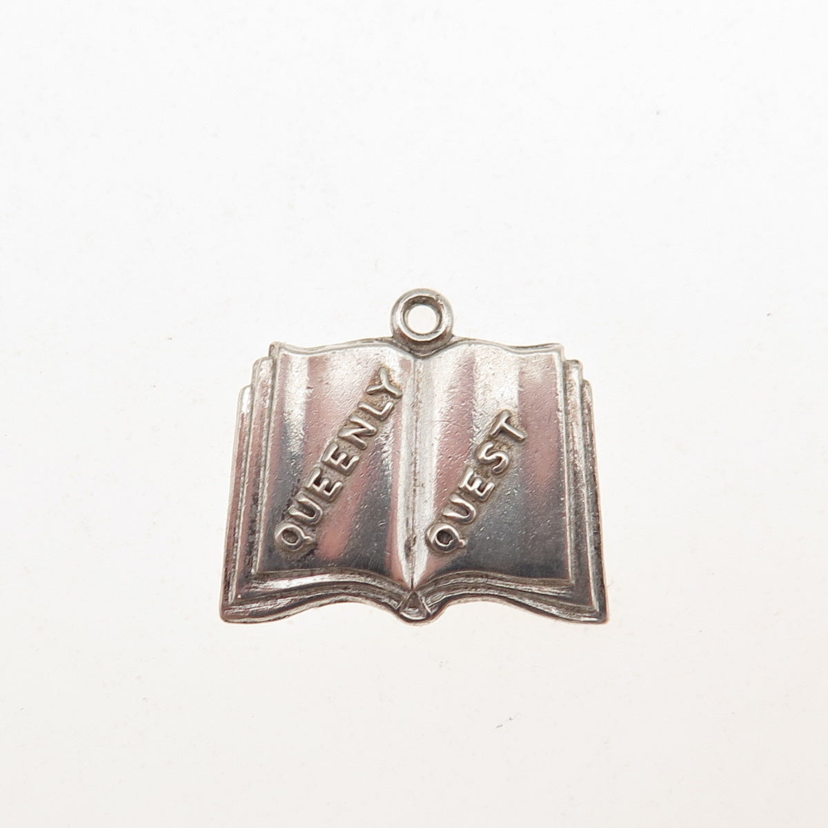 925 Sterling Silver Antique Art Deco Queenly Quest Book Mini Charm Pendant