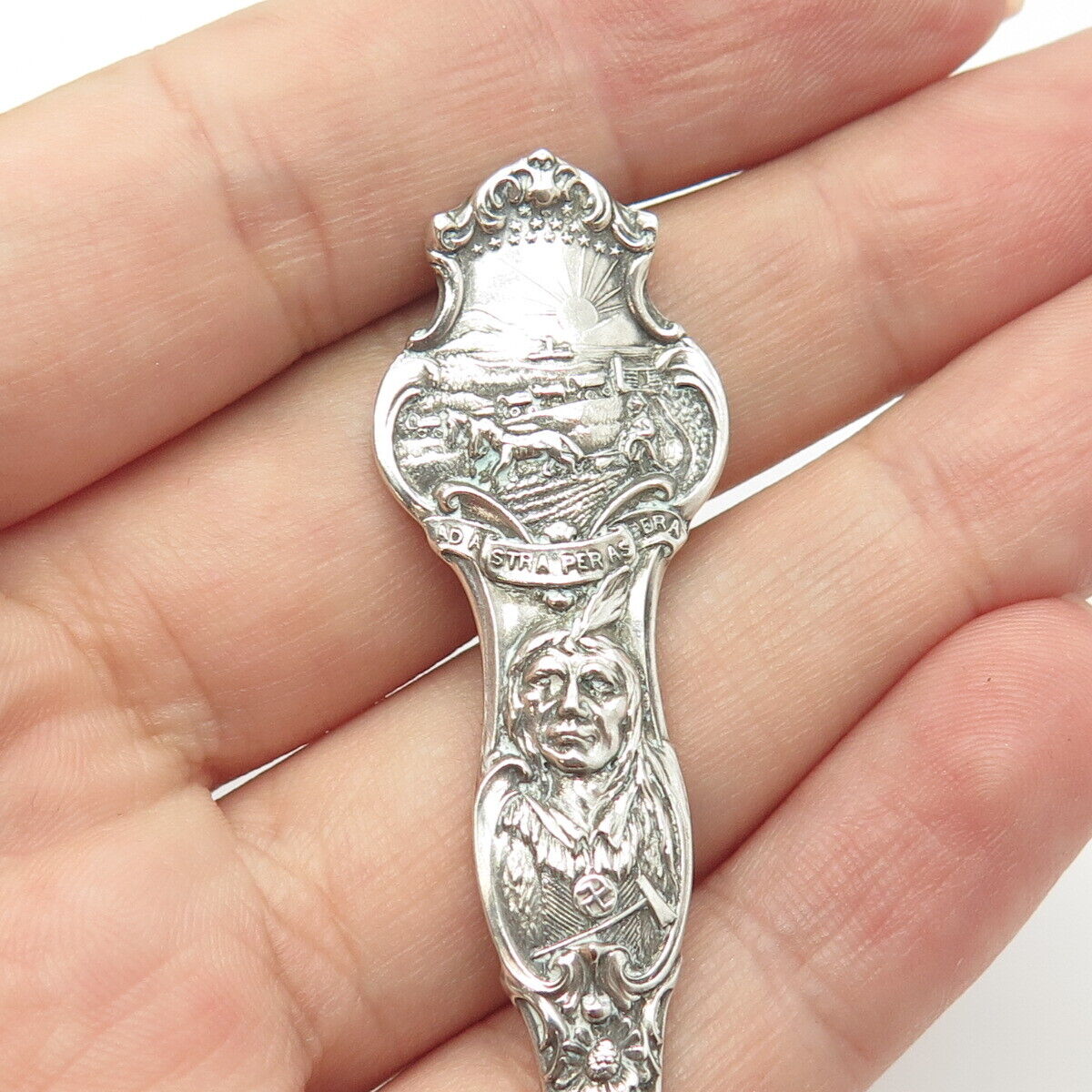 925 Sterling Silver Antique Art Deco R. Wallace Indian Chief Kansas Spoon