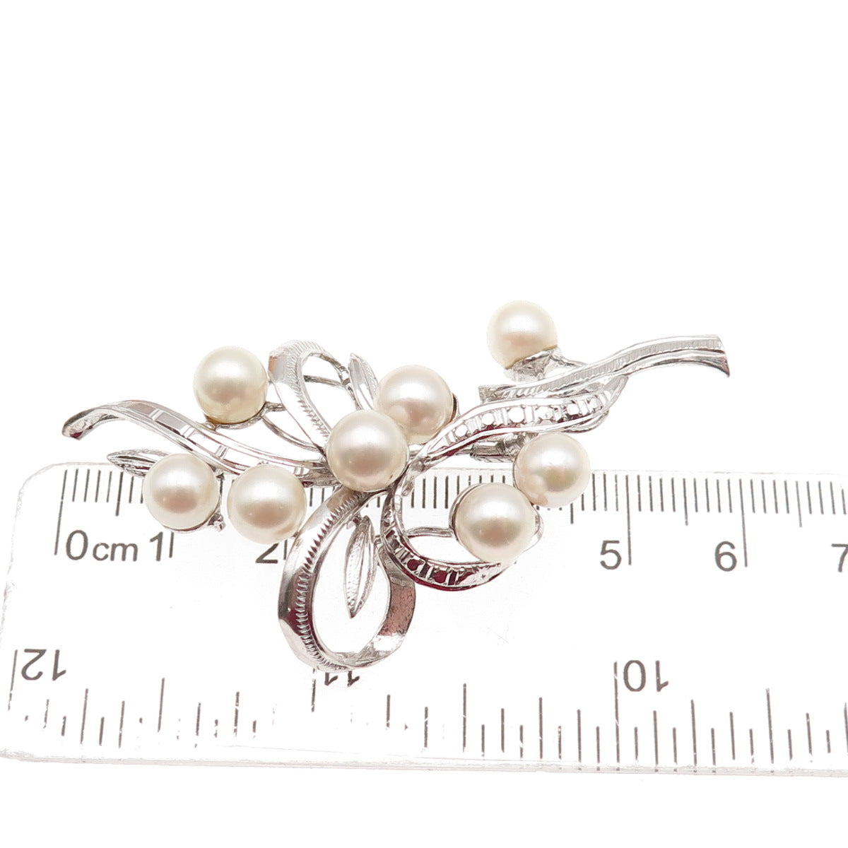 925 Sterling Silver Antique Art Deco Real Akoya Pearl Floral Pin Brooch
