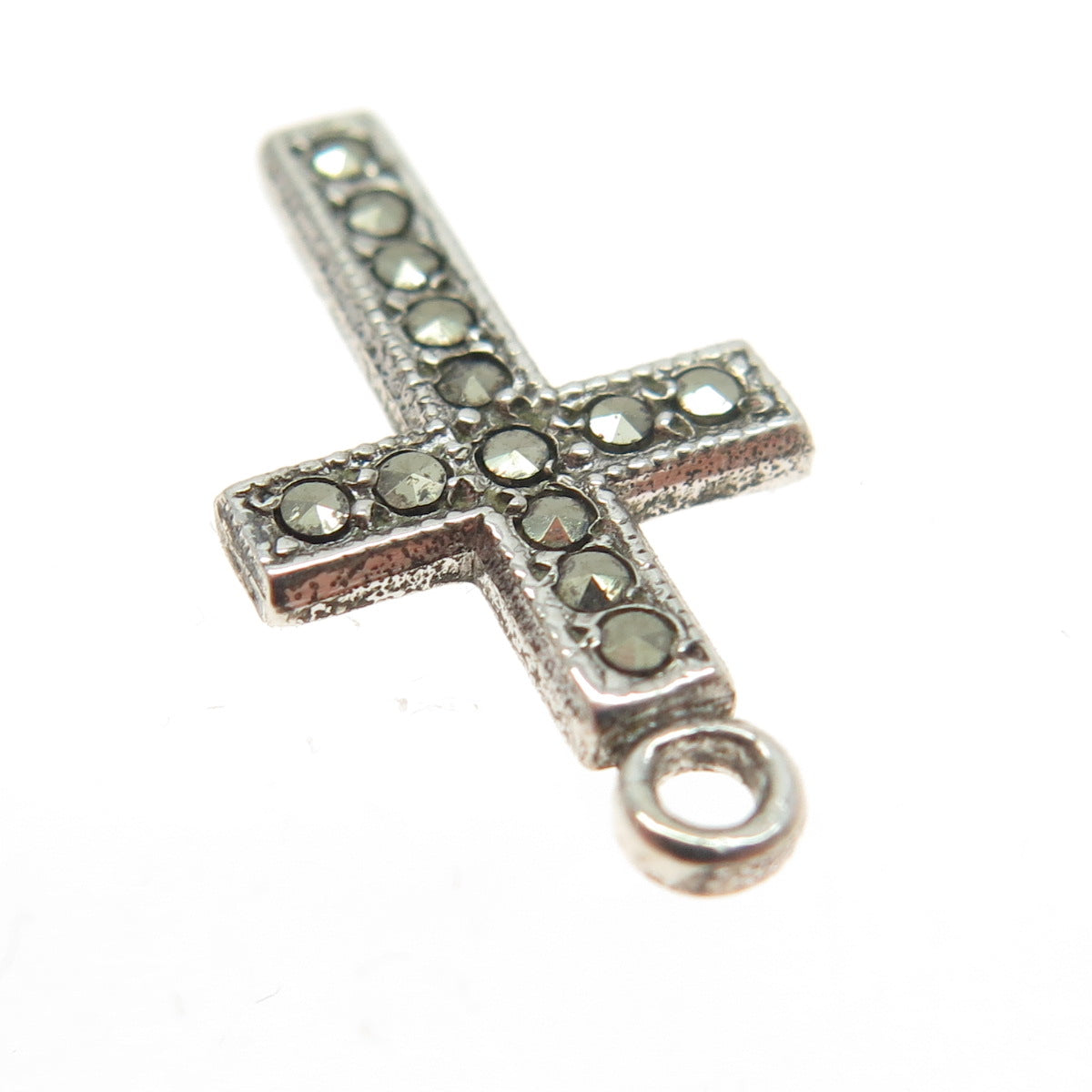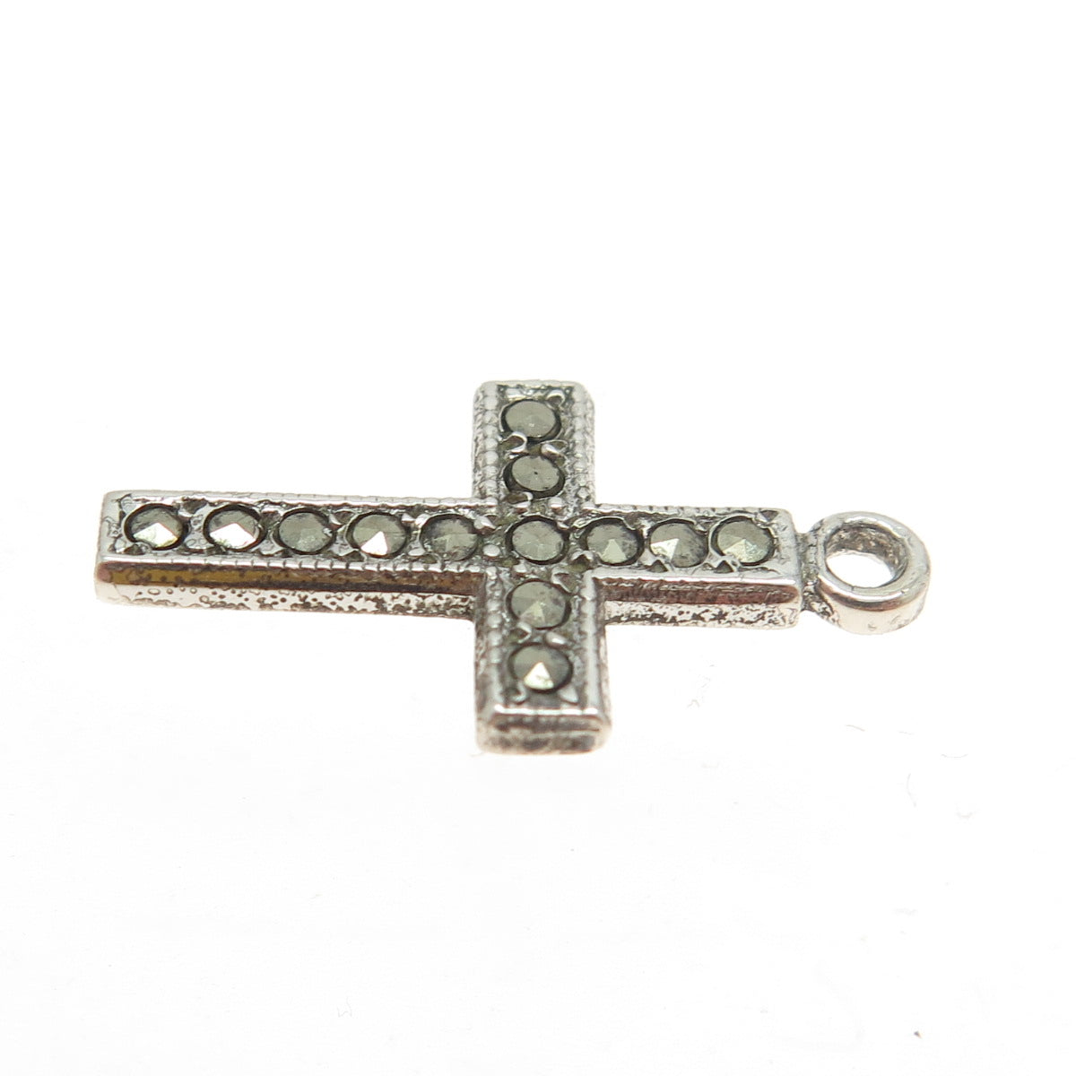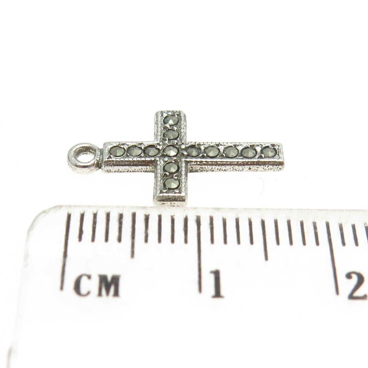 925 Sterling Silver Antique Art Deco Real Marcasite Cross Minimalist Pendant