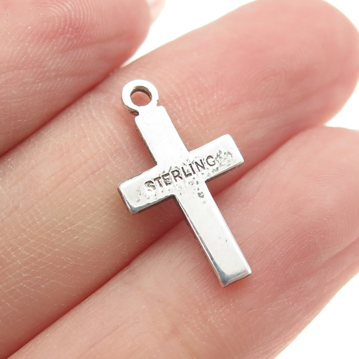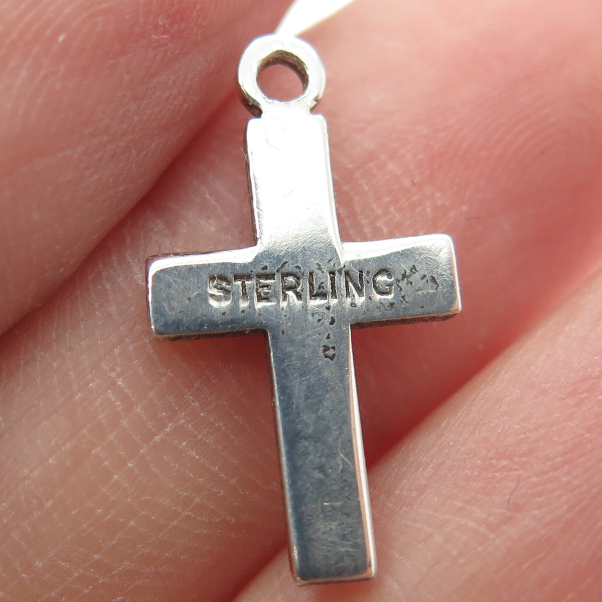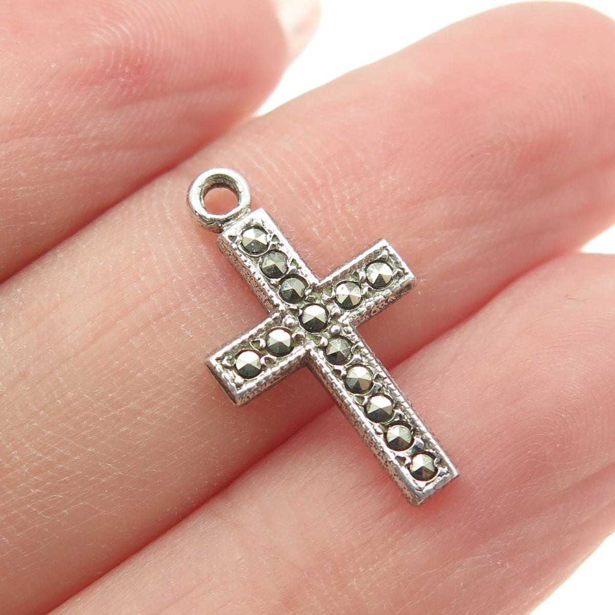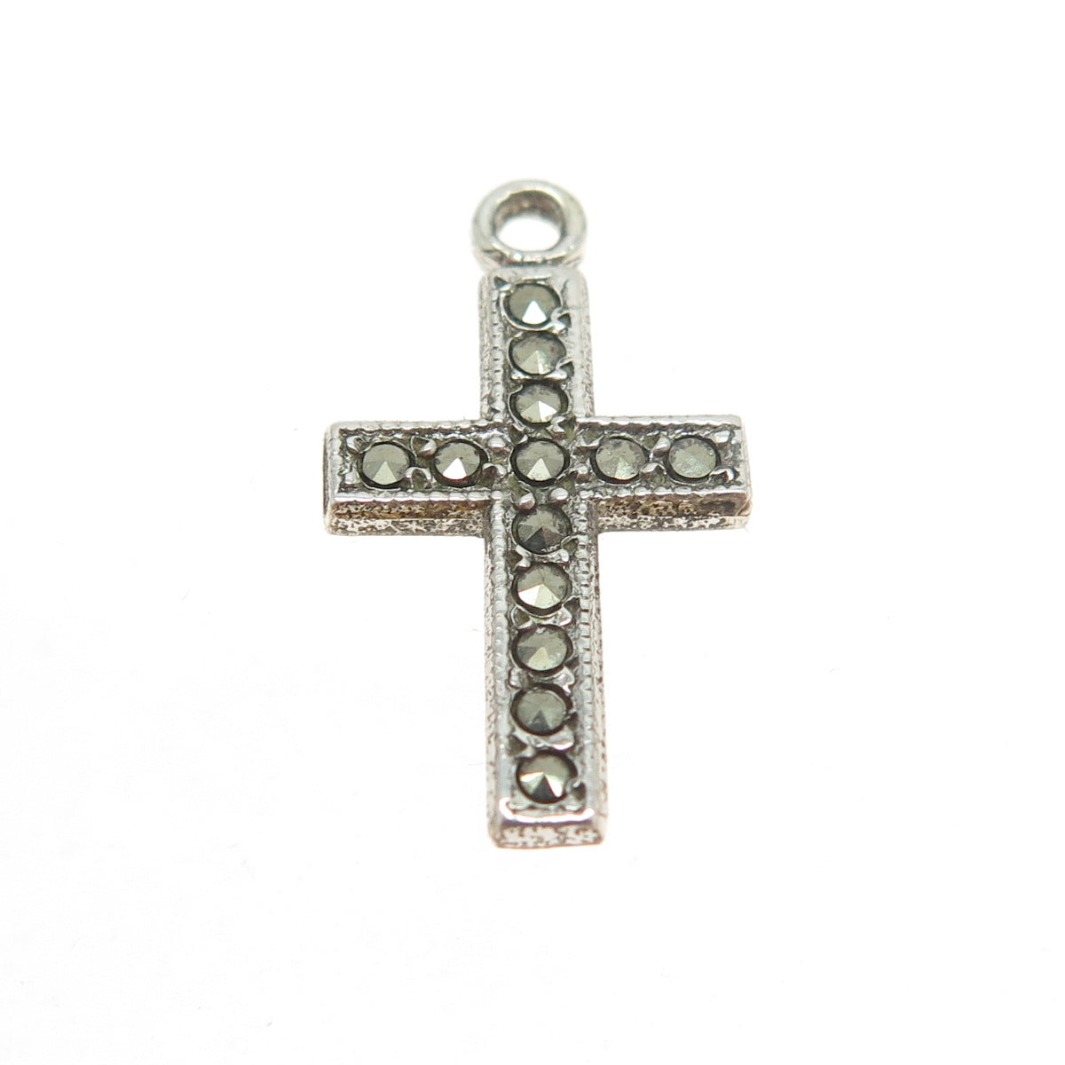 925 Sterling Silver Antique Art Deco Real Marcasite Cross Minimalist Pendant