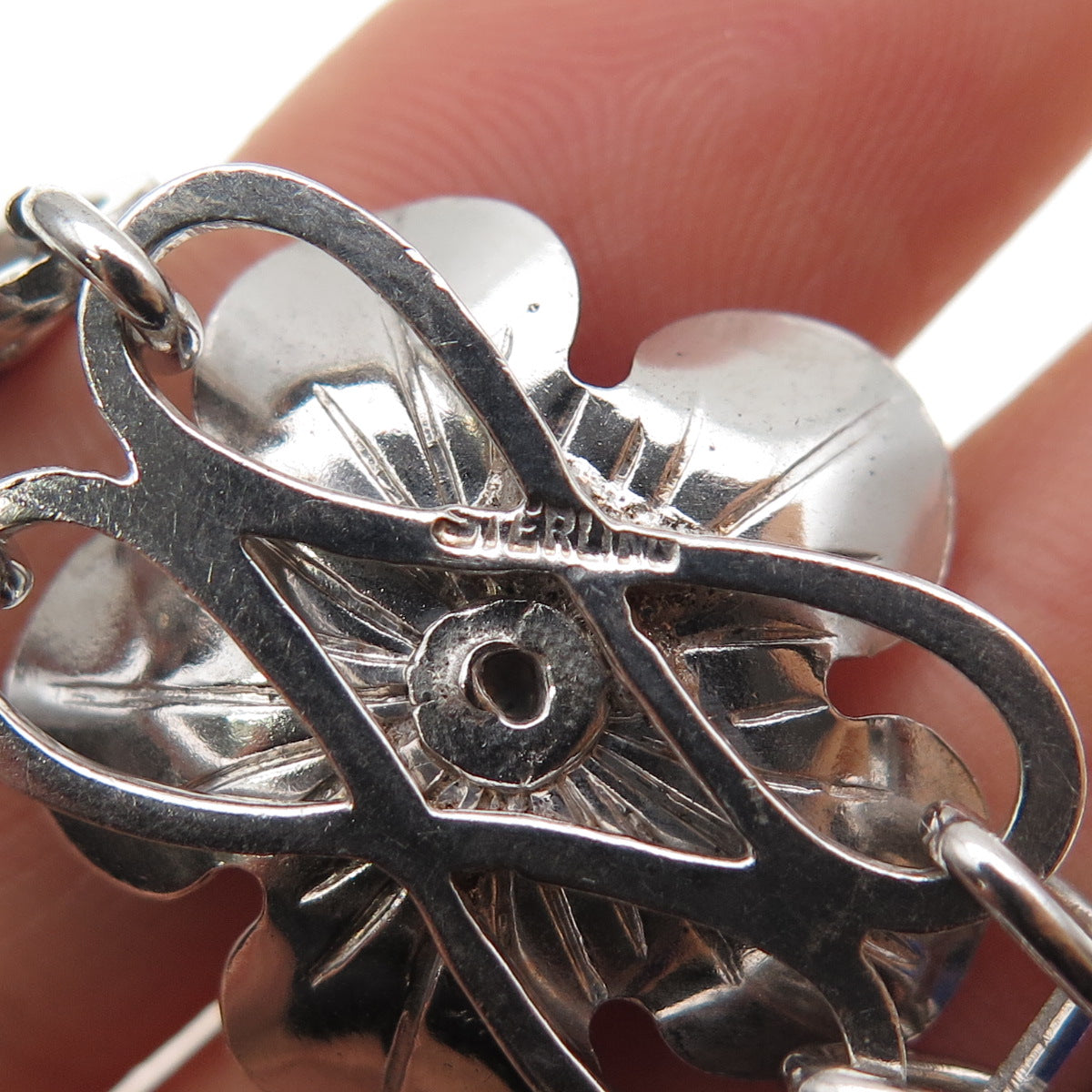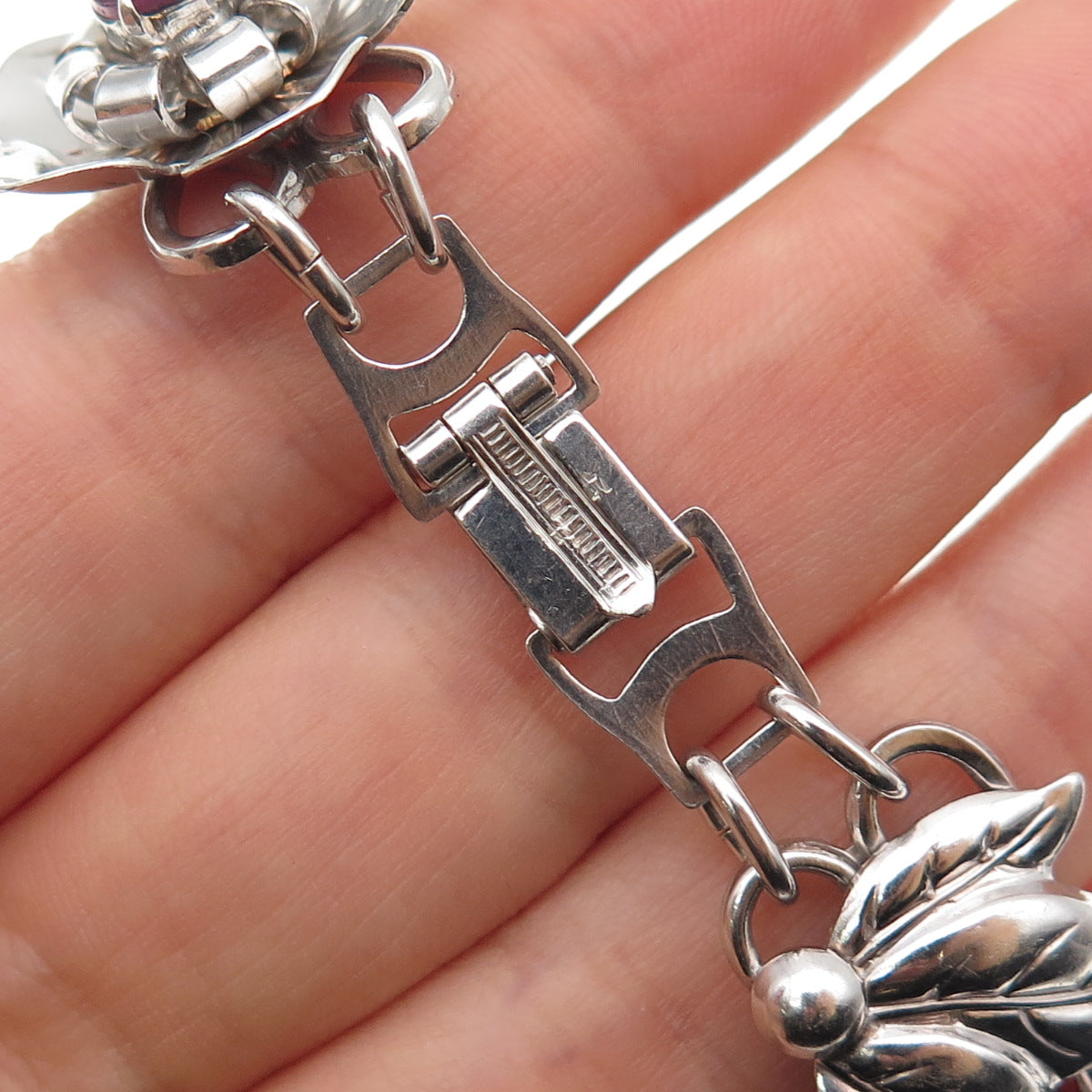 925 Sterling Silver Antique Art Deco Real Oval-Cut Tourmaline Flower Bracelet 7"