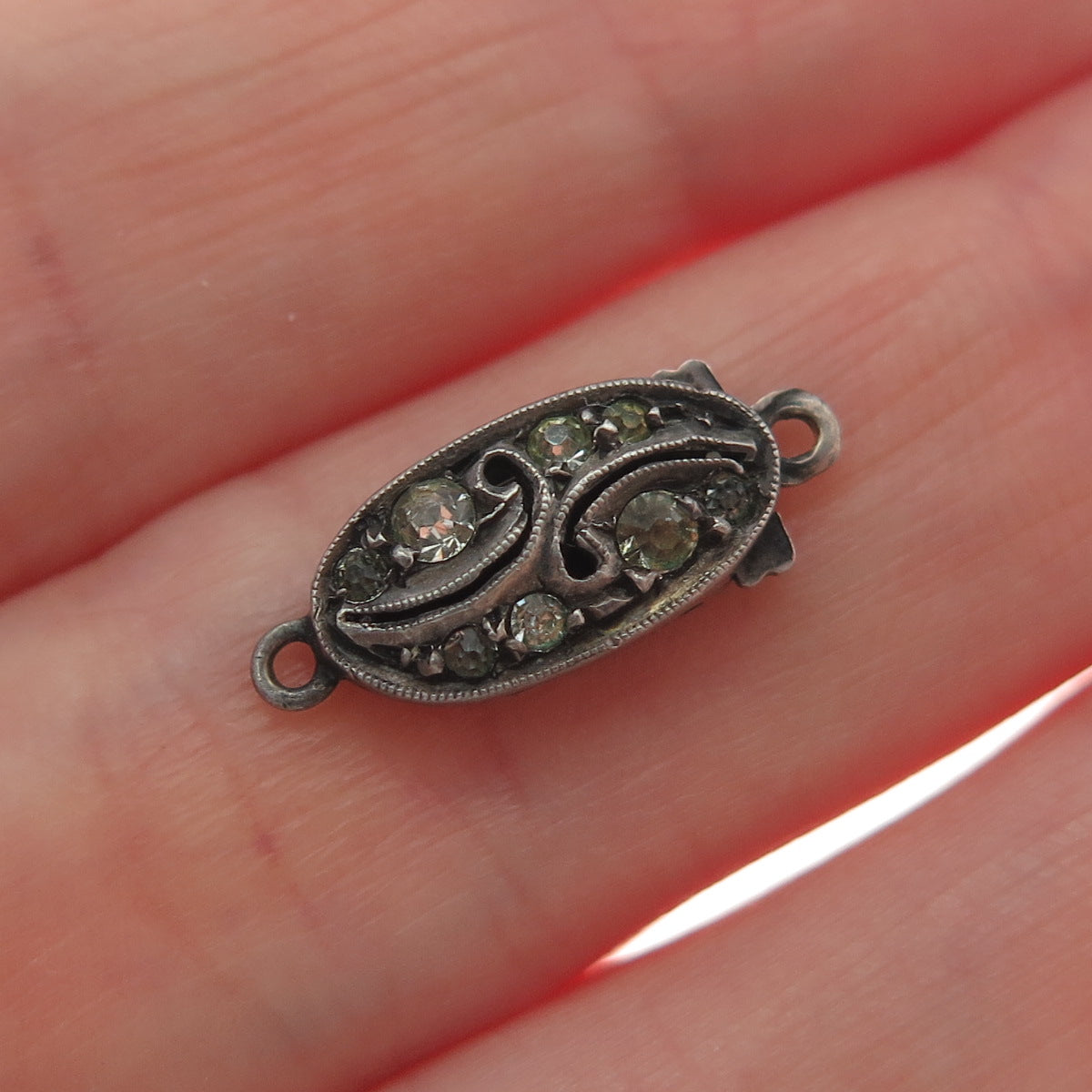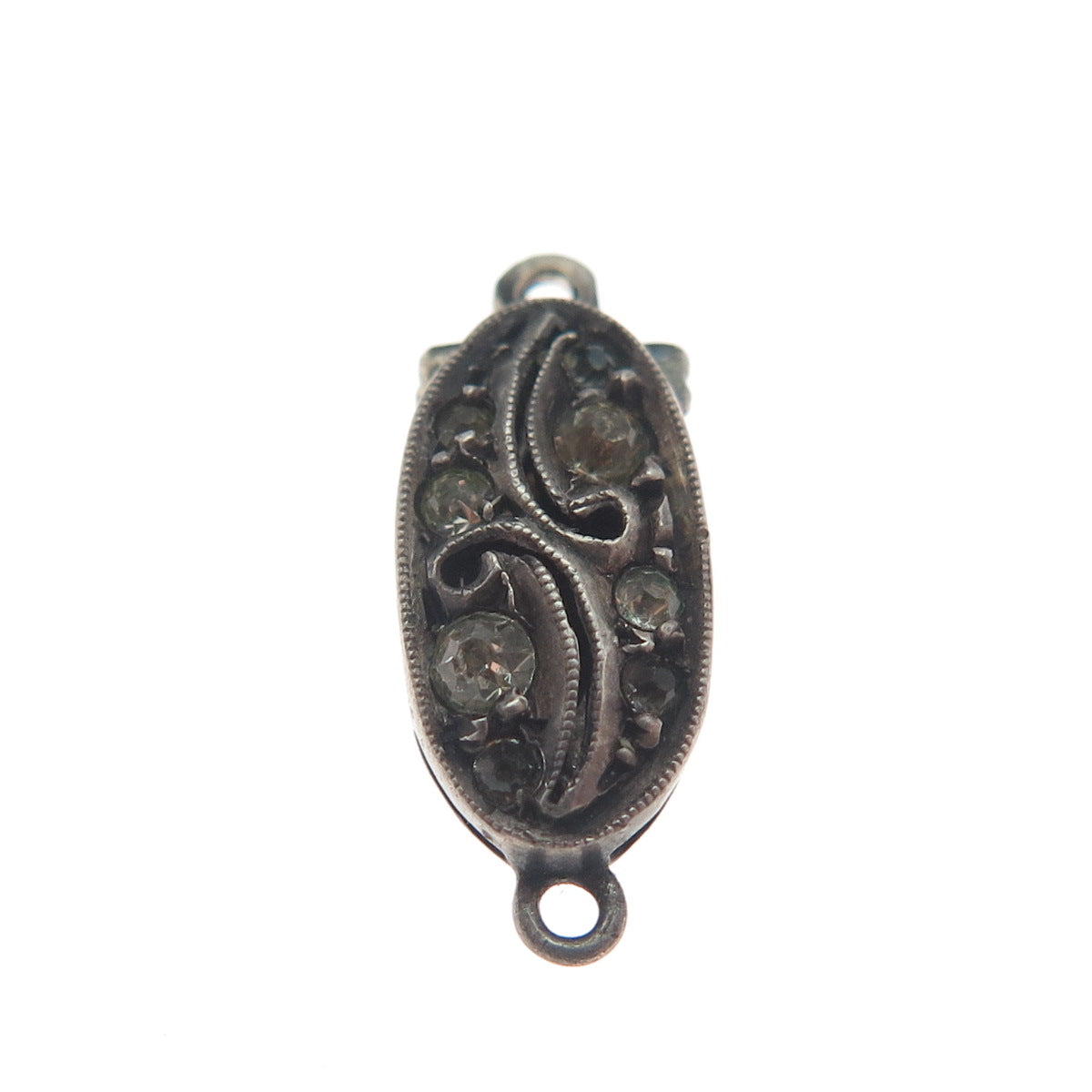 925 Sterling Silver Antique Art Deco Rhinestone Bracelet / Necklace Lock Clasp
